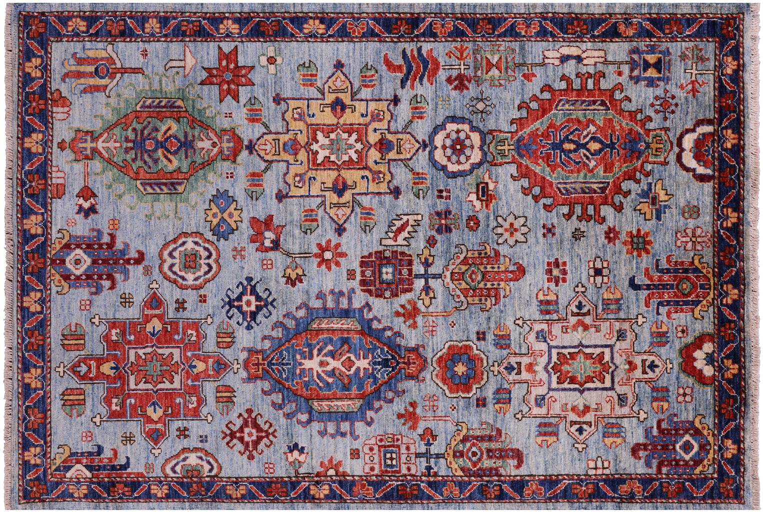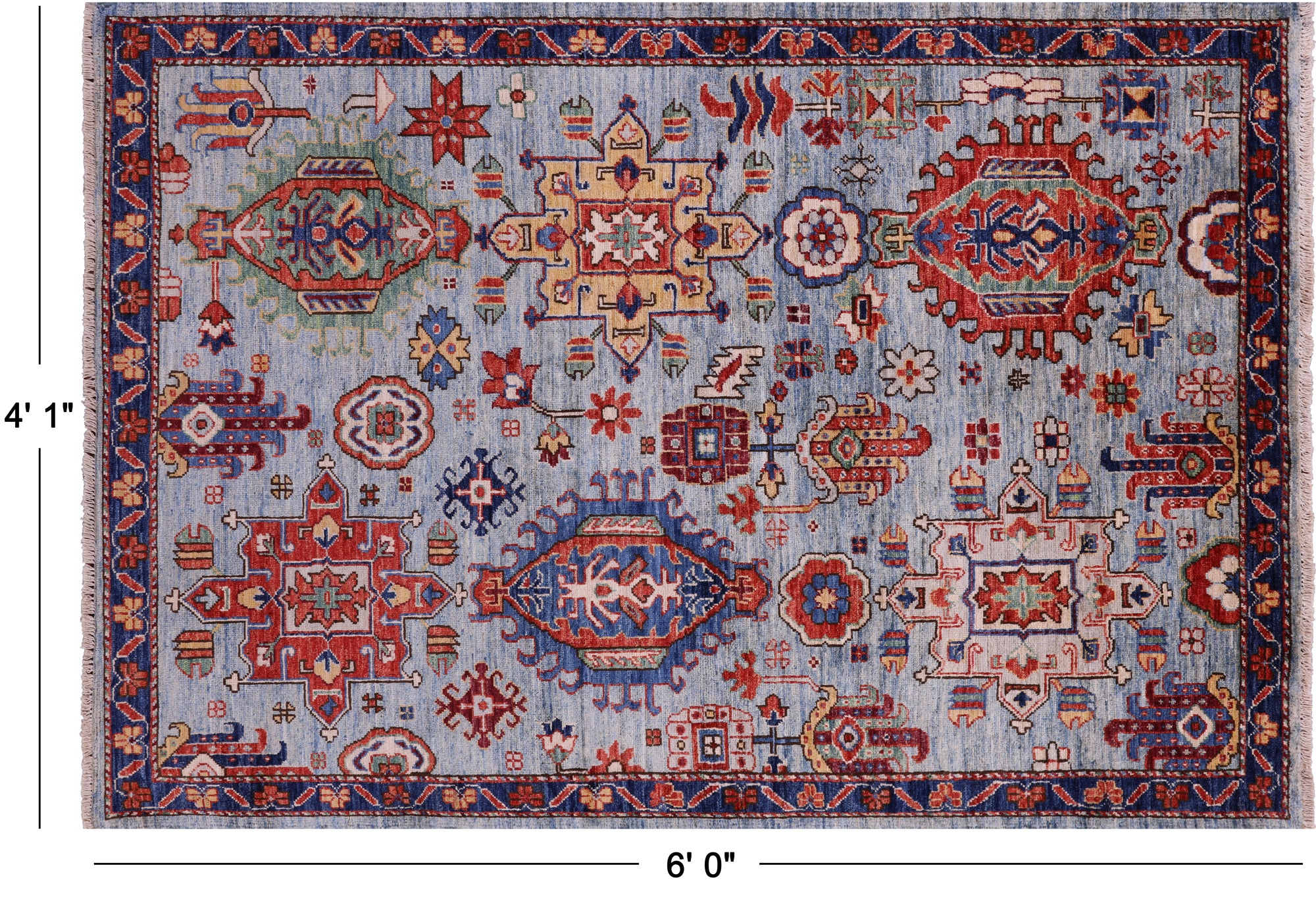 Blue Hand Knotted Persian Heriz Serapi Wool Rug 4' 1" X 6' 0" - Q23365