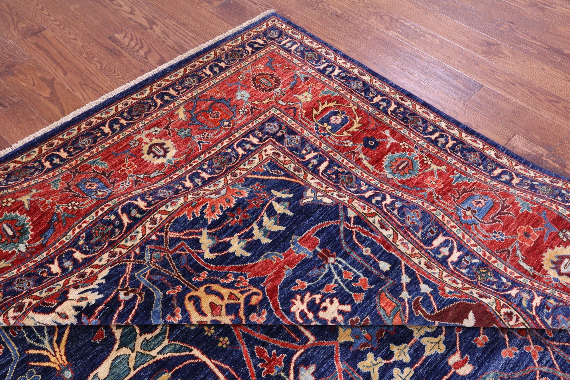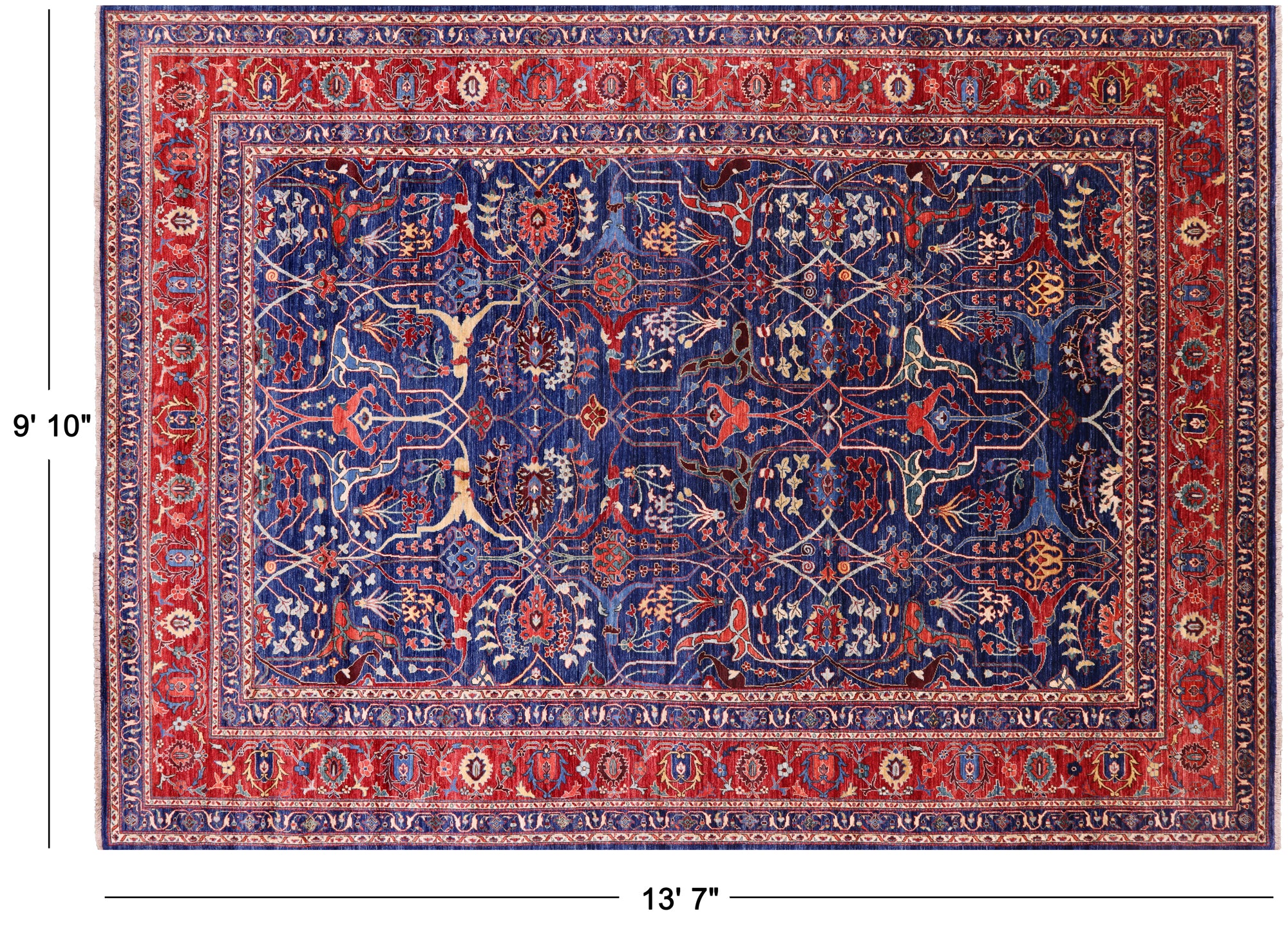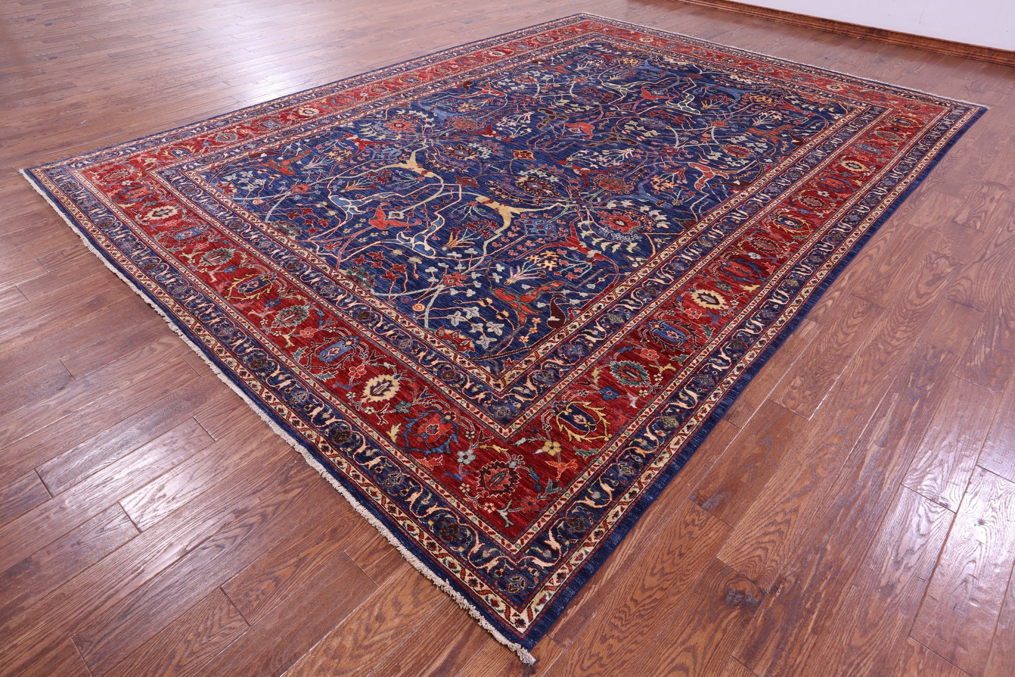 Blue Handmade Persian Heriz Serapi Wool Rug 9' 10" X 13' 7" - Q22743