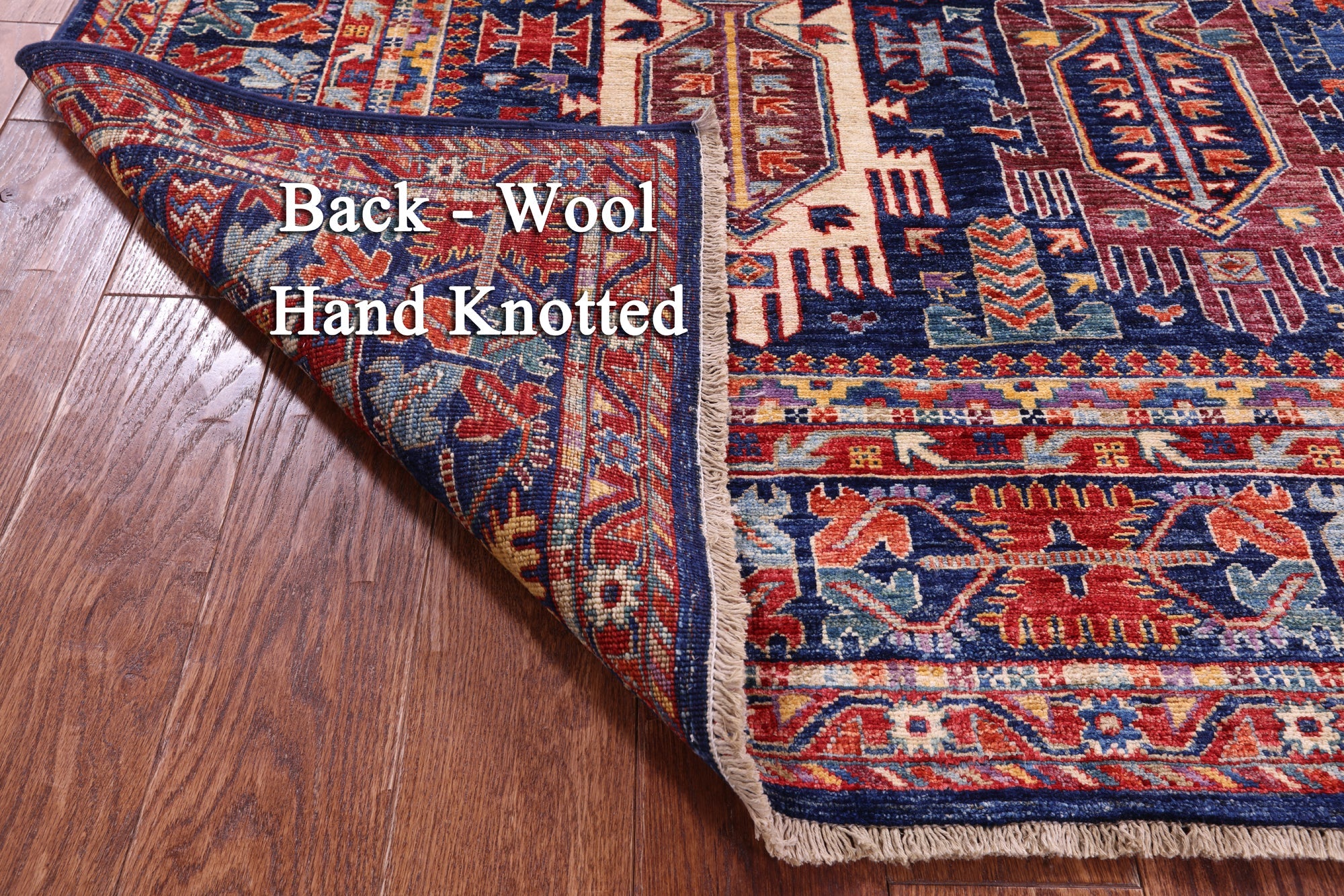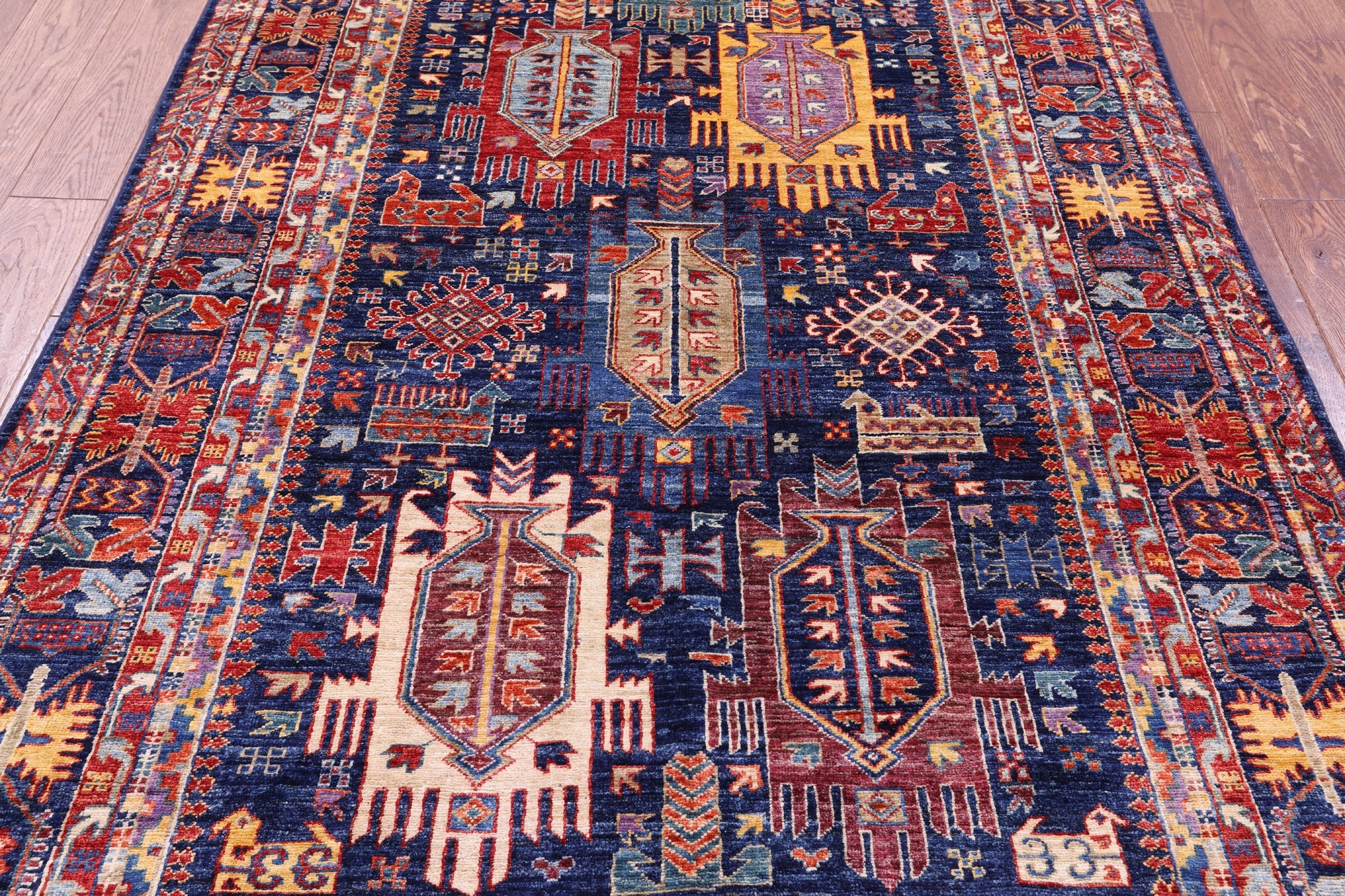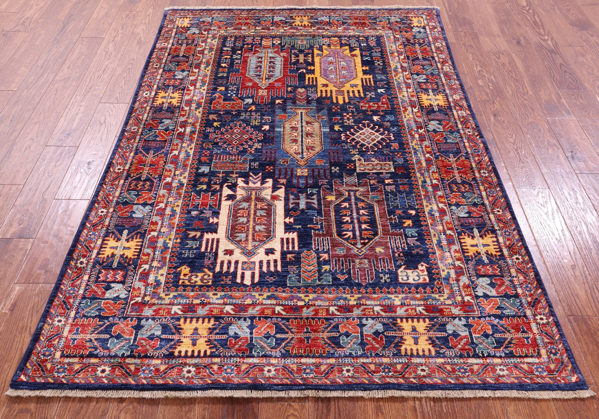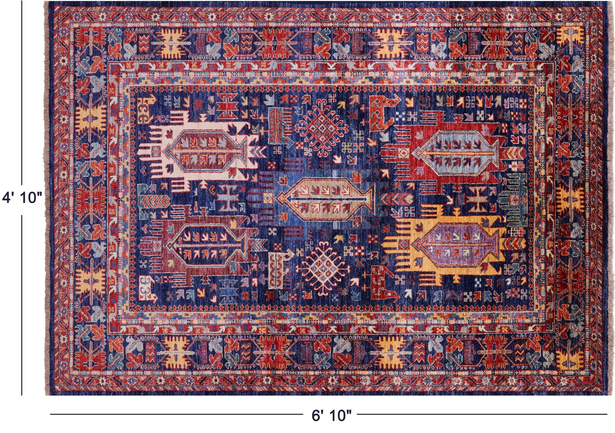 Blue 4' 10" X 6' 10" Handmade Tribal Fine Serapi Wool Rug - Q23355