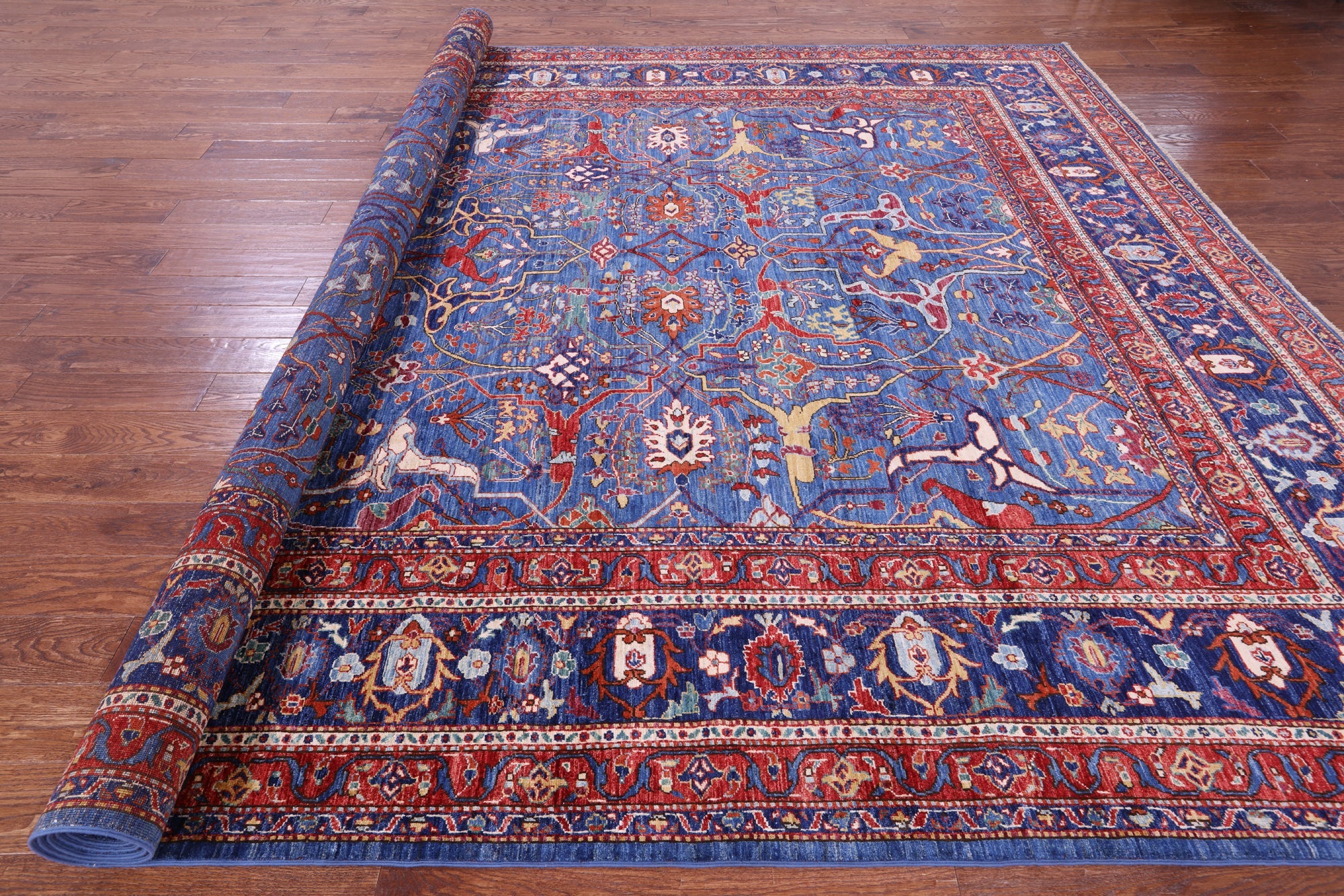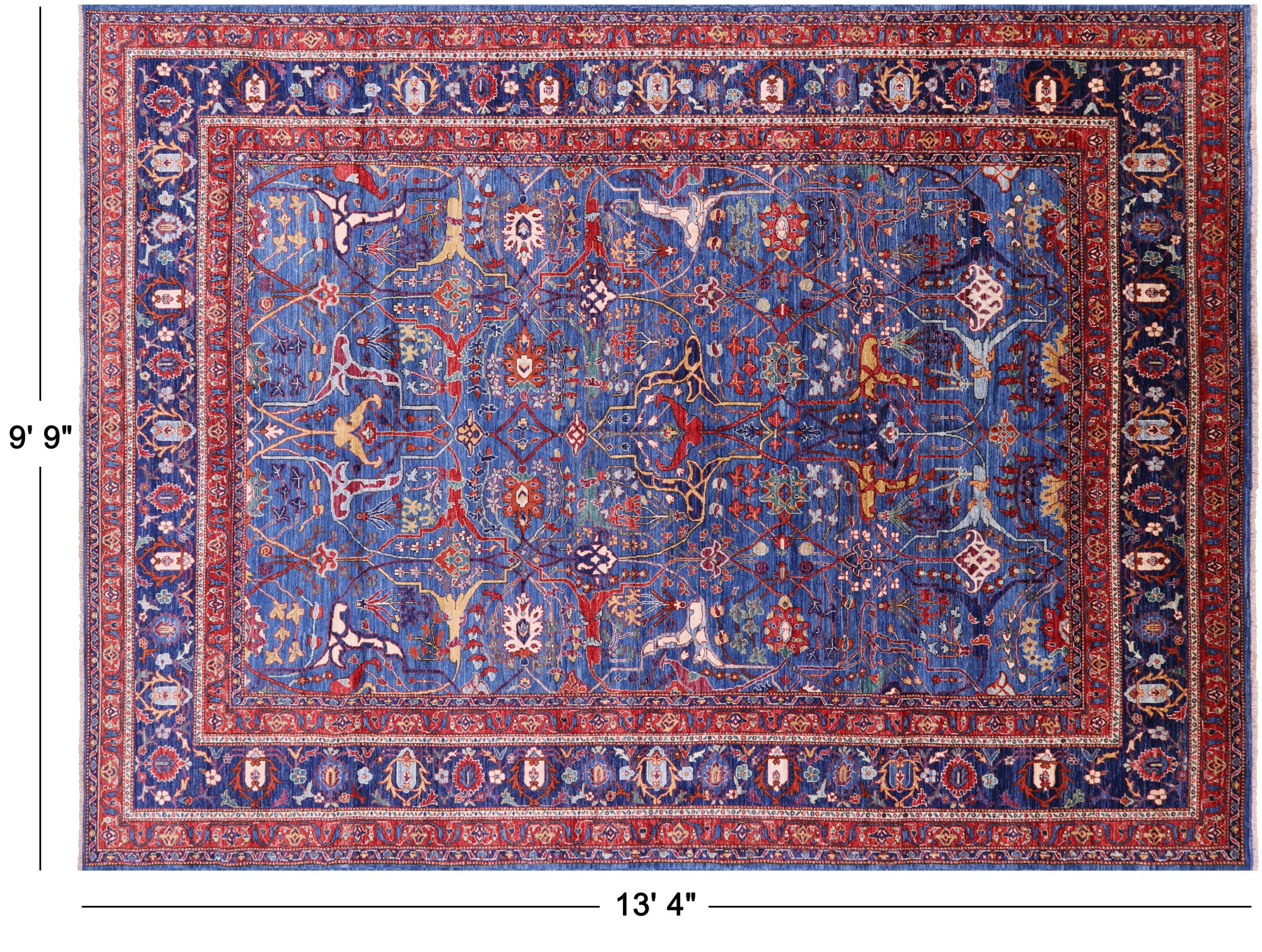 Blue 9' 9" X 13' 4" Persian Heriz Serapi Hand-Knotted Rug - Q22807