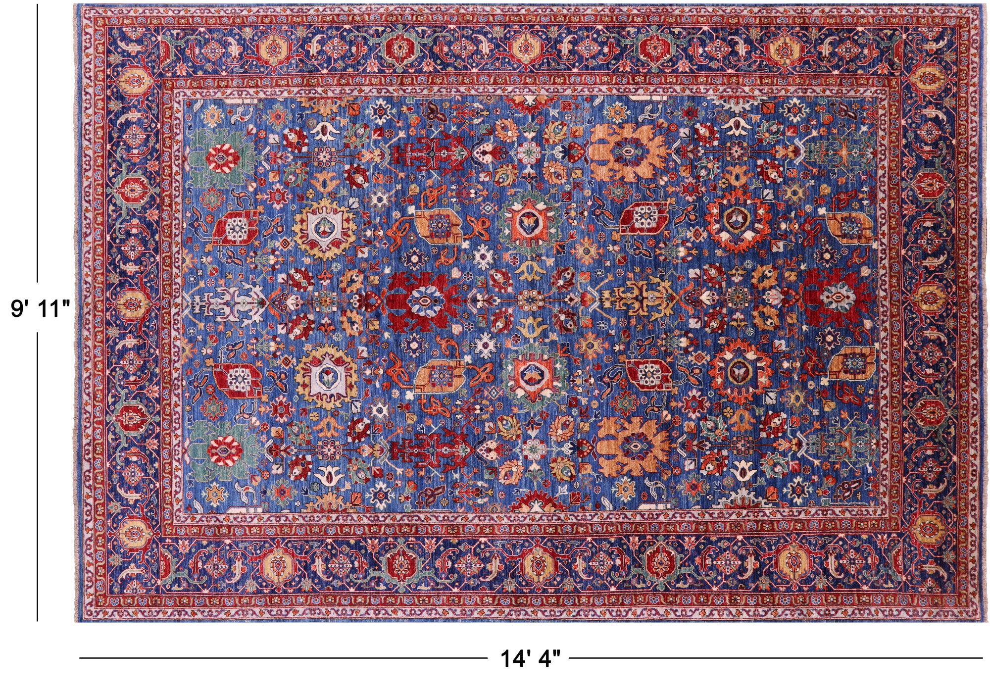 Blue 9' 11" X 14' 4" Persian Heriz Serapi Hand-Knotted Wool Rug - Q22805