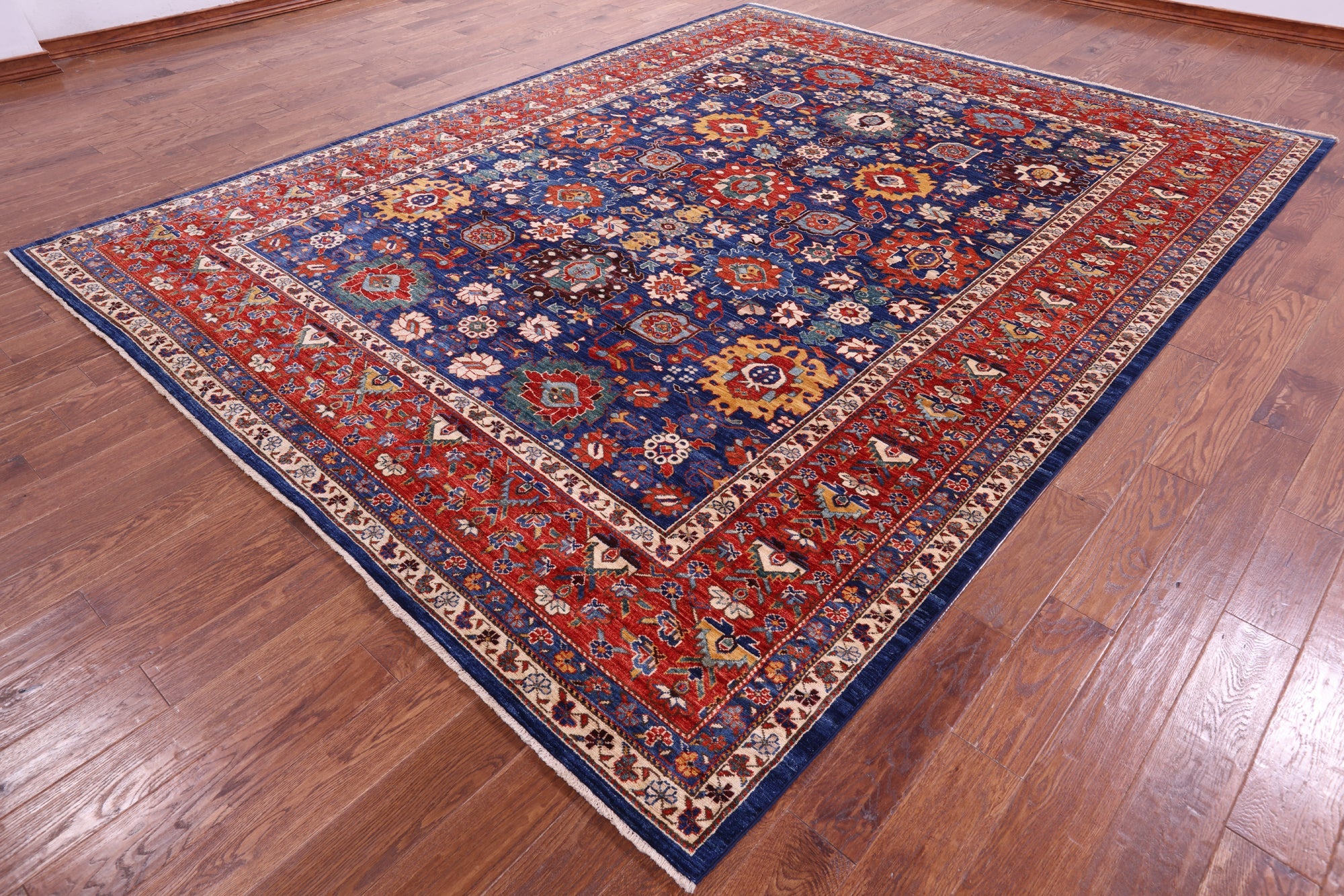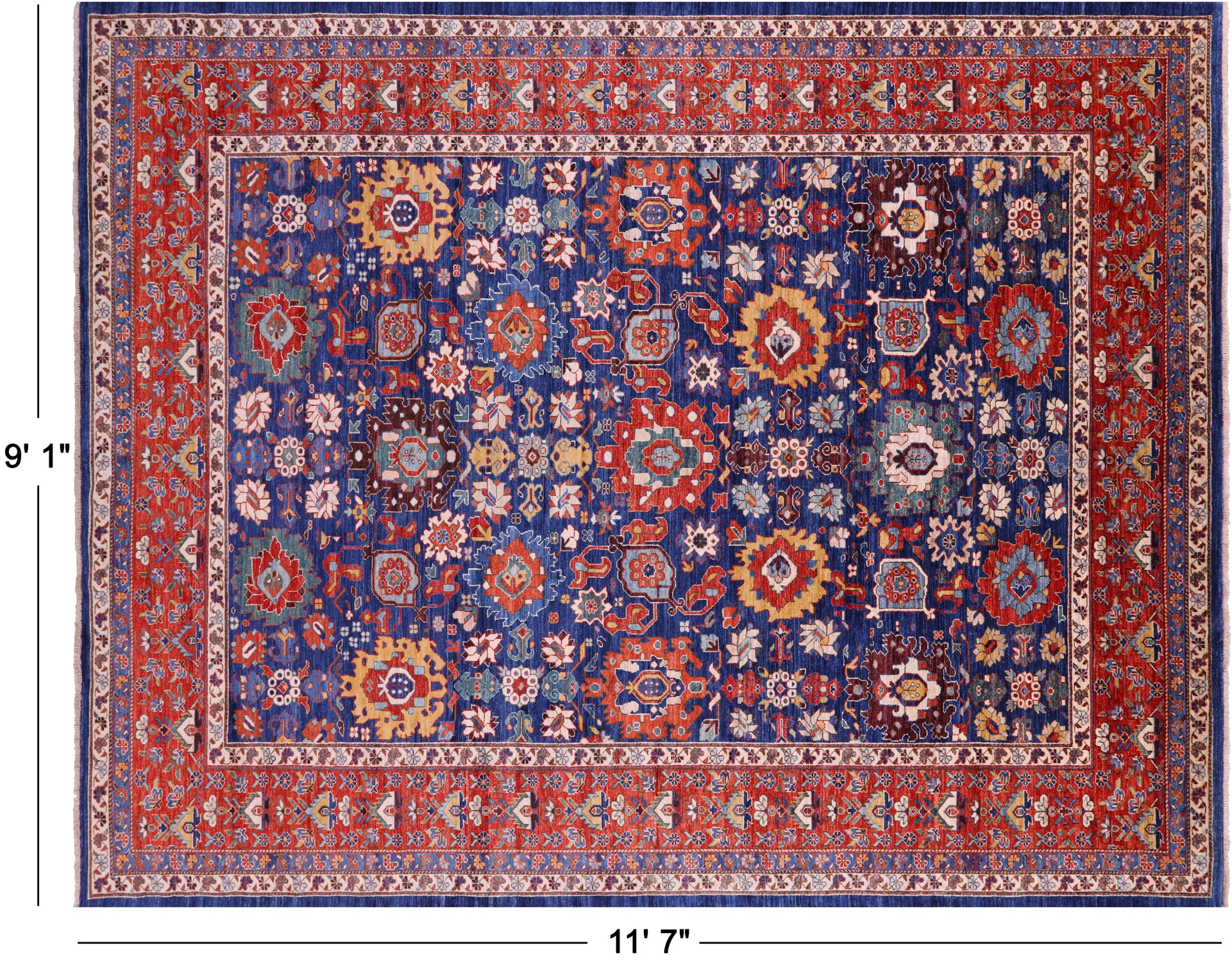 Blue Persian Heriz Serapi Hand-Knotted Wool Rug 9' 1" X 11' 7" - Q23109