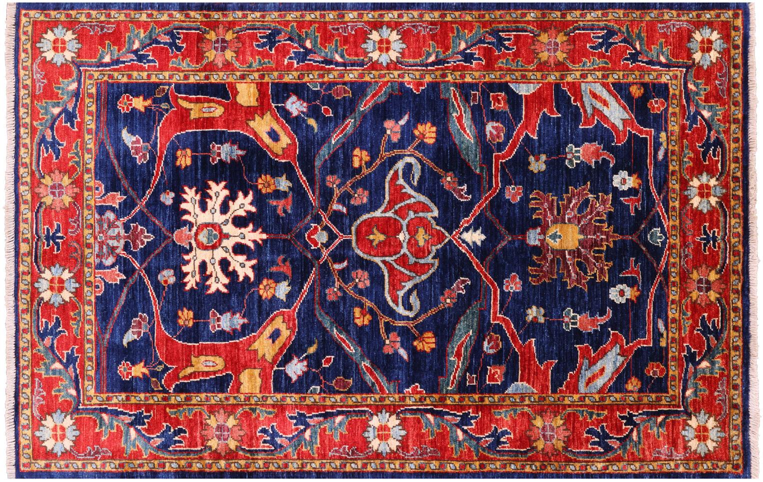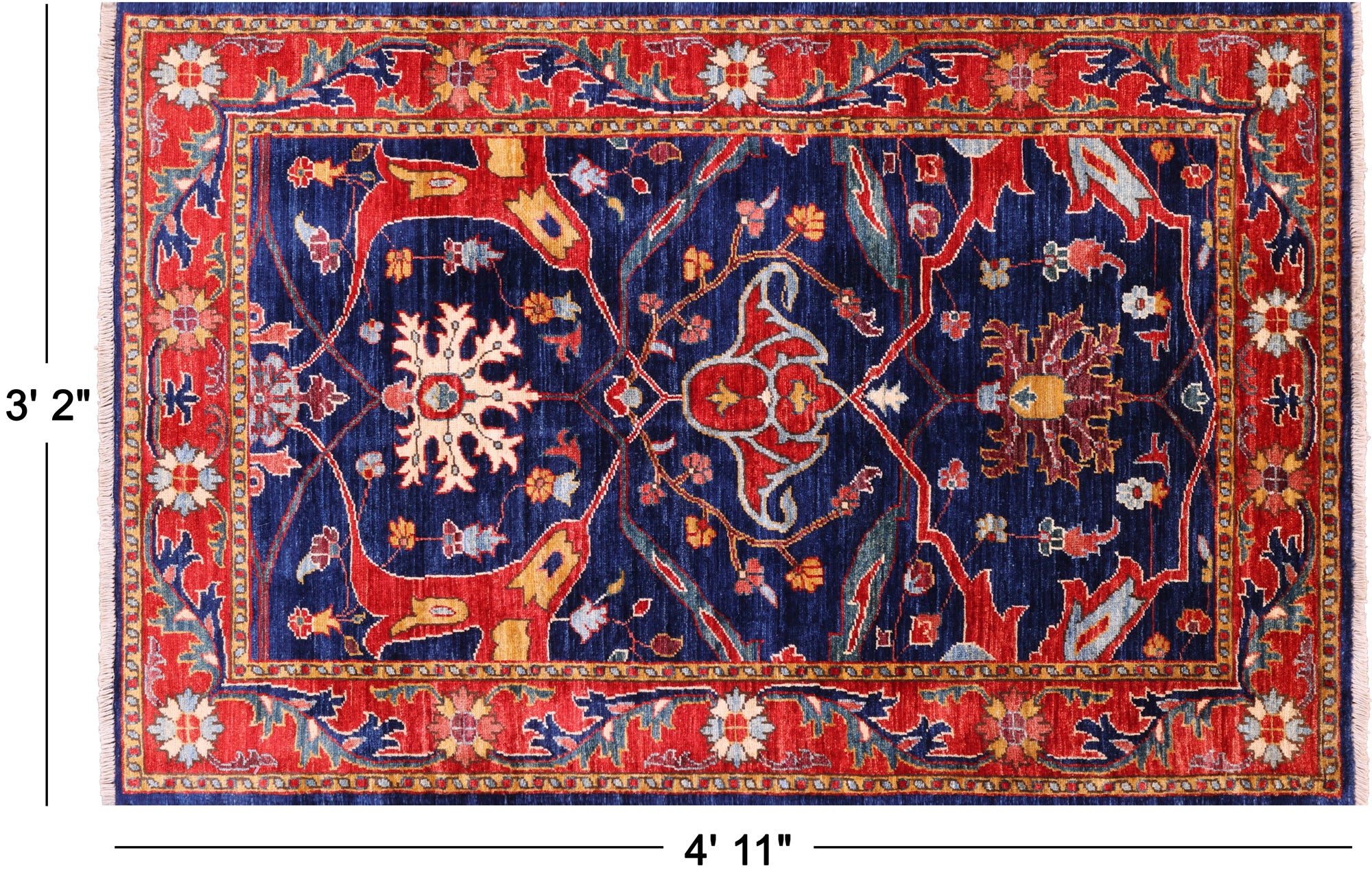 Blue 3' 2" X 4' 11" Persian Heriz Serapi Hand Knotted Wool Rug - Q23300