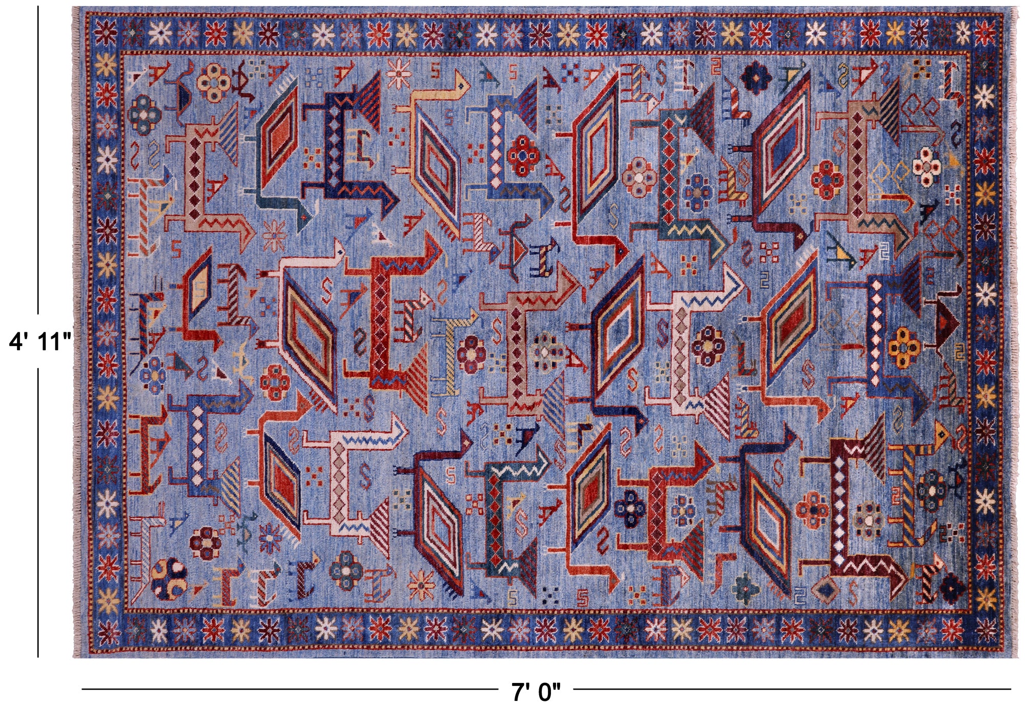 Blue 4' 11" X 7' 0" Persian Heriz Serapi Hand Knotted Wool Rug - Q23302