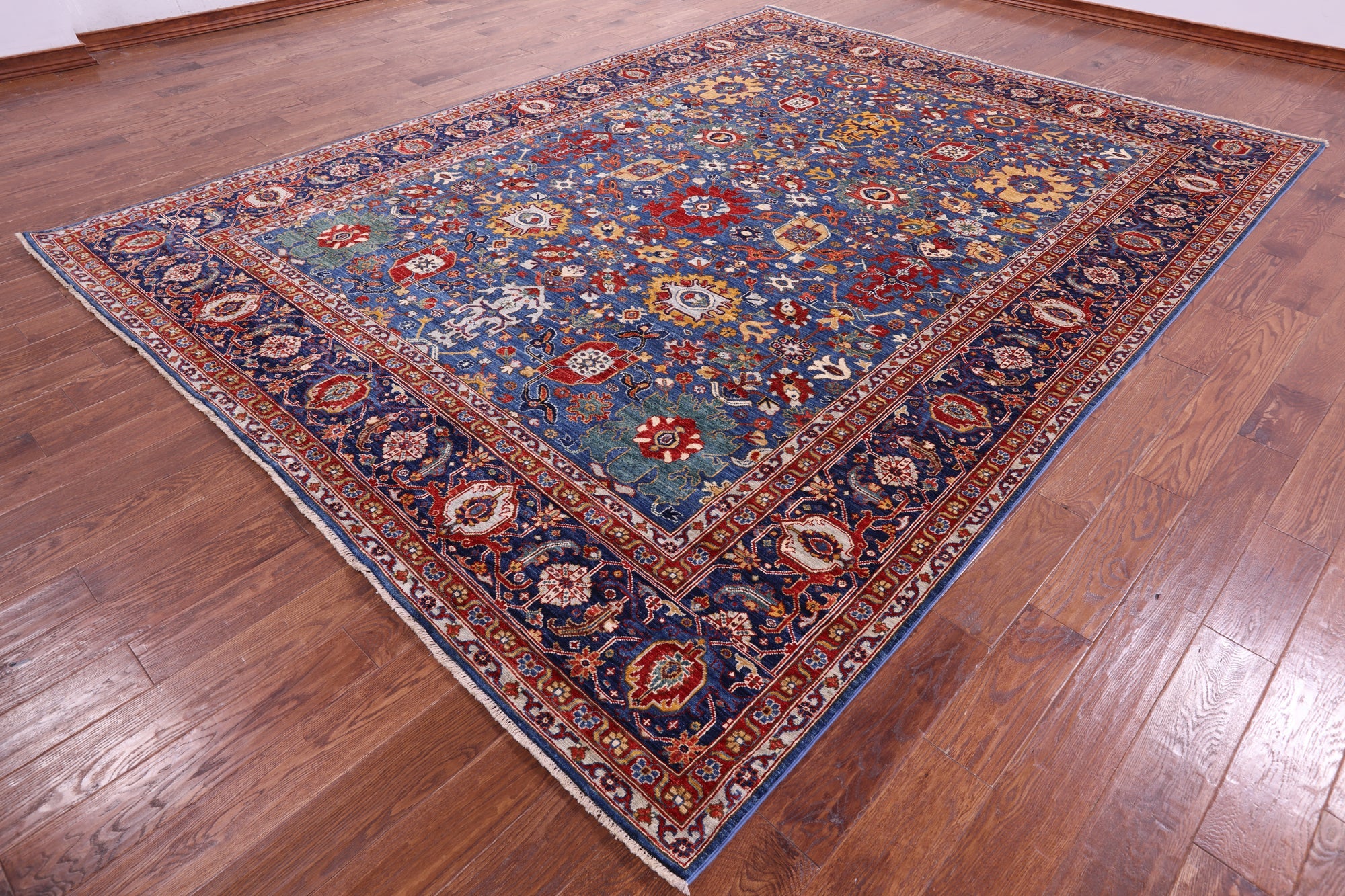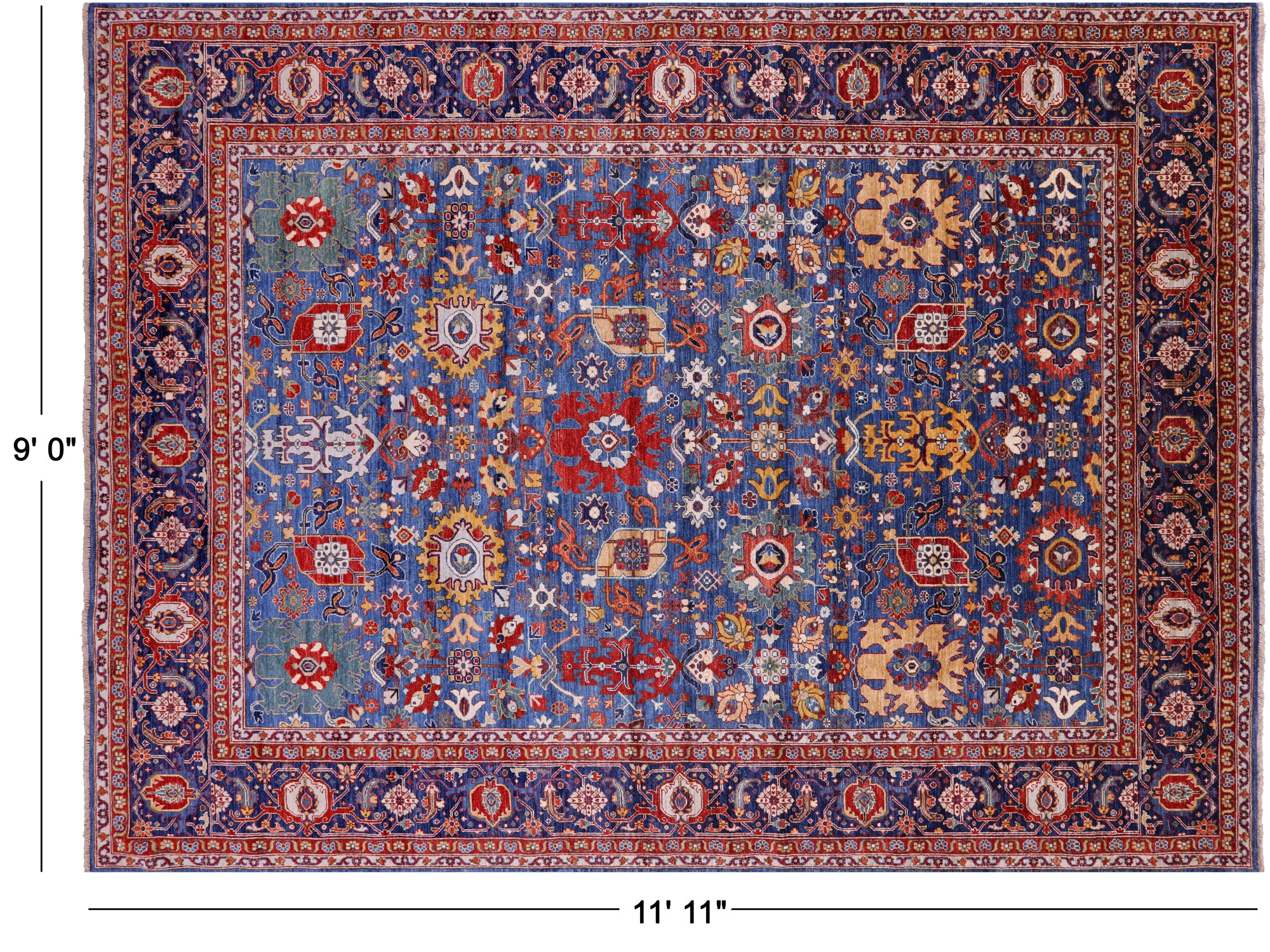 Blue Persian Heriz Serapi Handmade Wool Rug 9' 0" X 11' 11" - Q23051