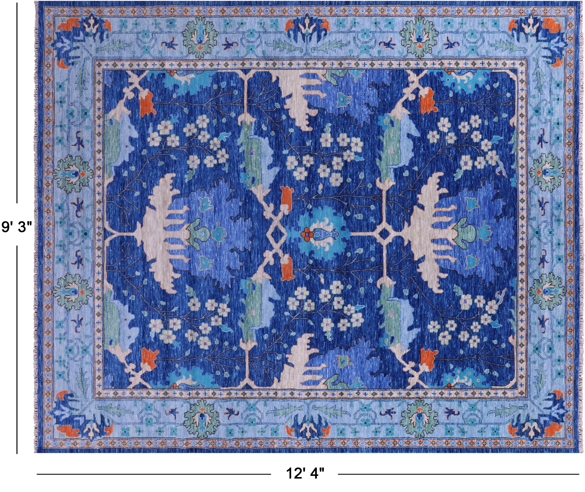 Blue 9' 3" X 12' 4" William Morris Handmade Wool Rug - Q23685