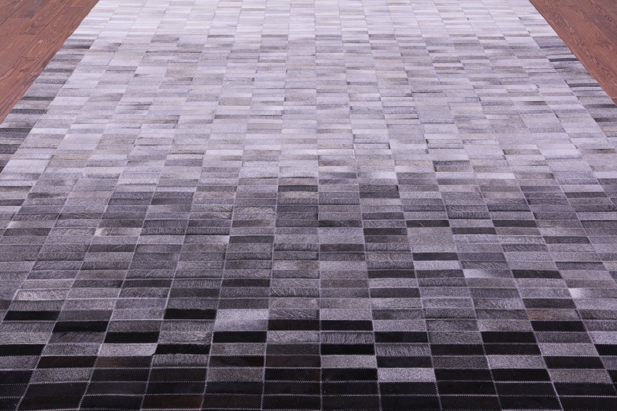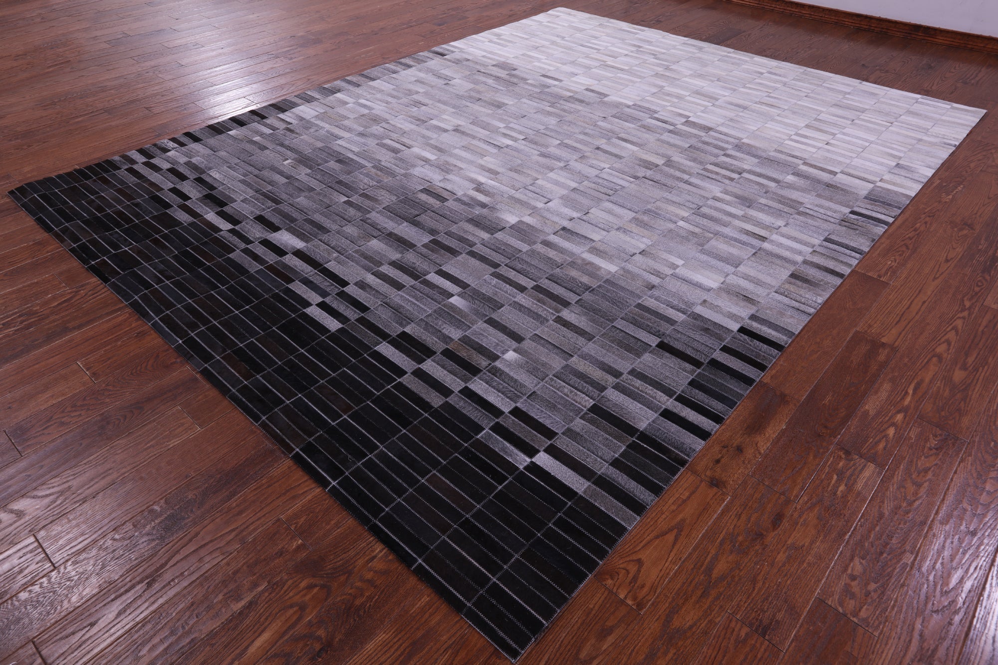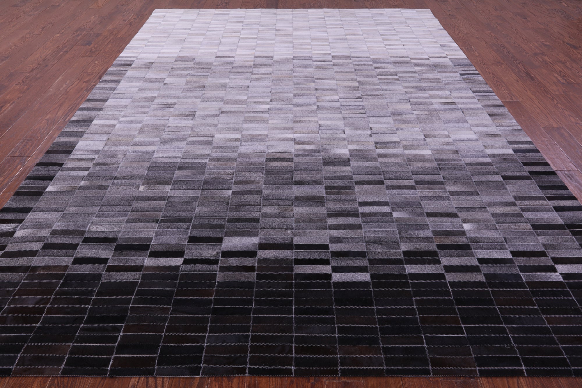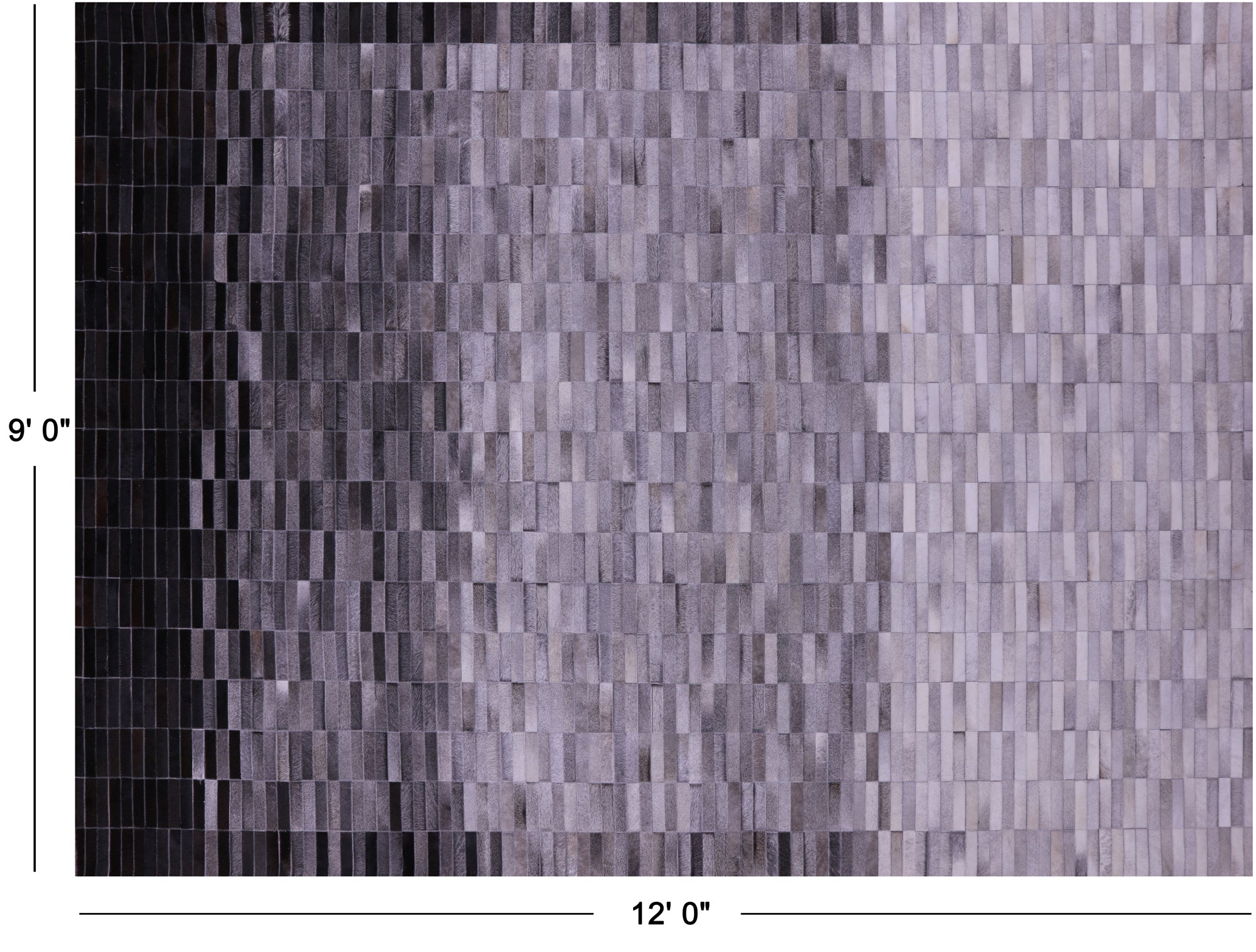 9' 0" X 12' 0" Grey & White Gradient Brickwork Natural Cowhide Hand Stitched Rug - C5767 is backordered and will ship as soon as it is back in stock.