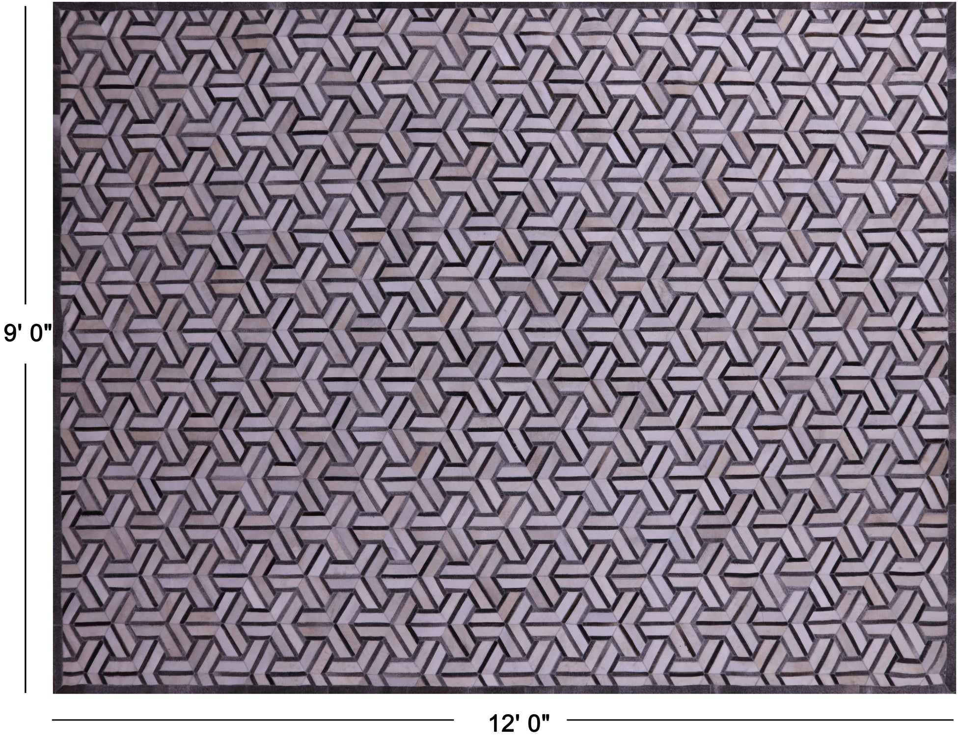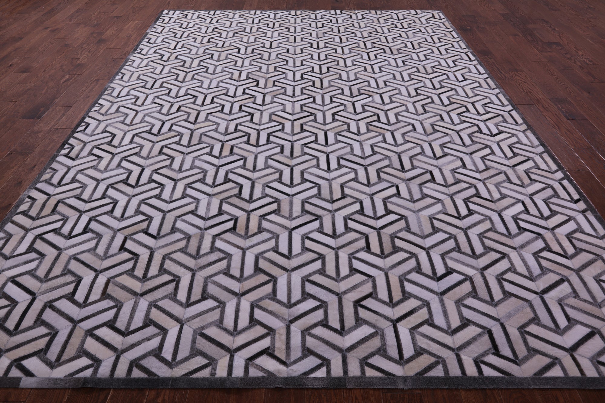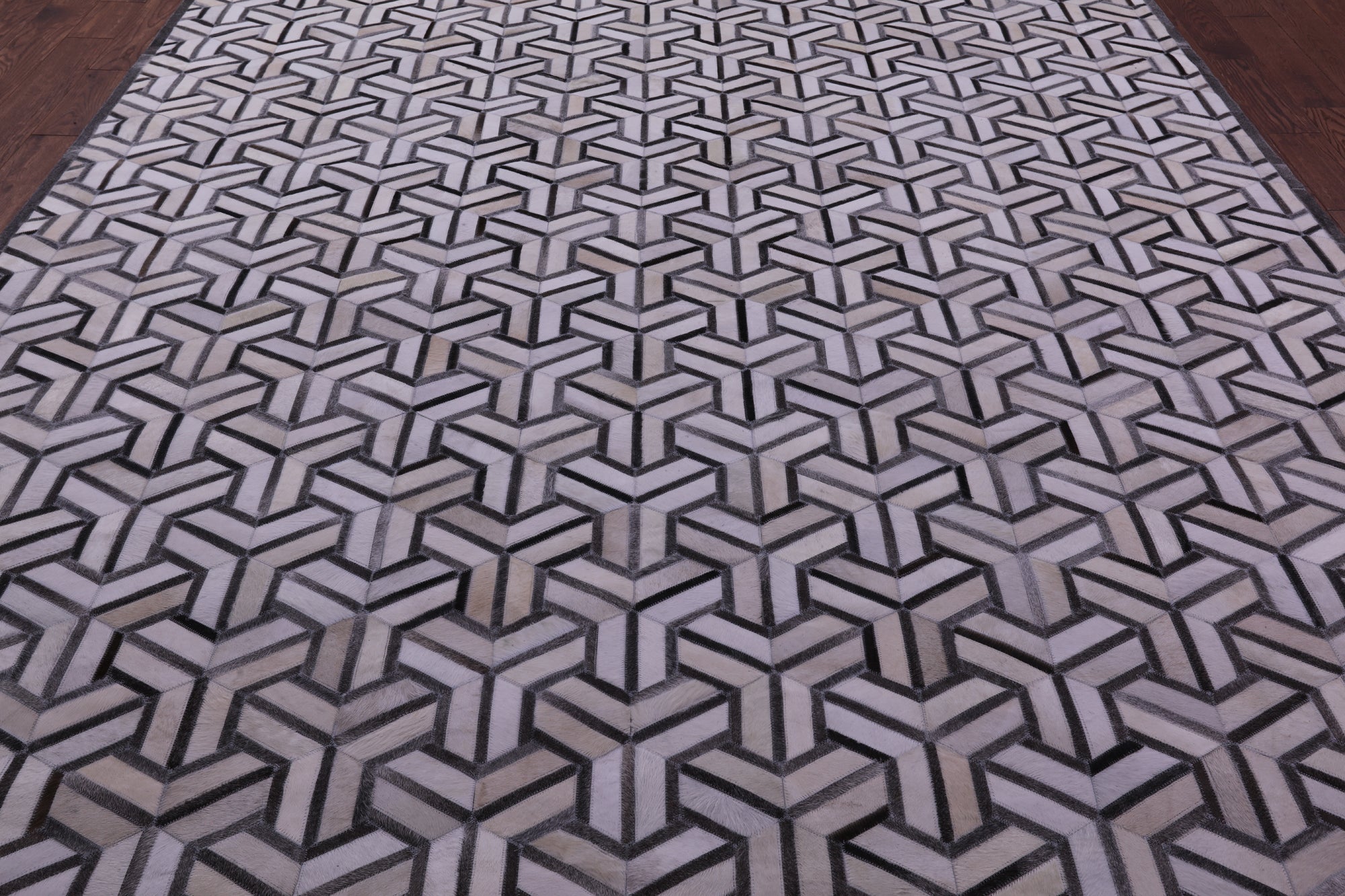 9' 0" X 12' 0" Grey & White Natural Cowhide Hand Stitched Rug - C5757