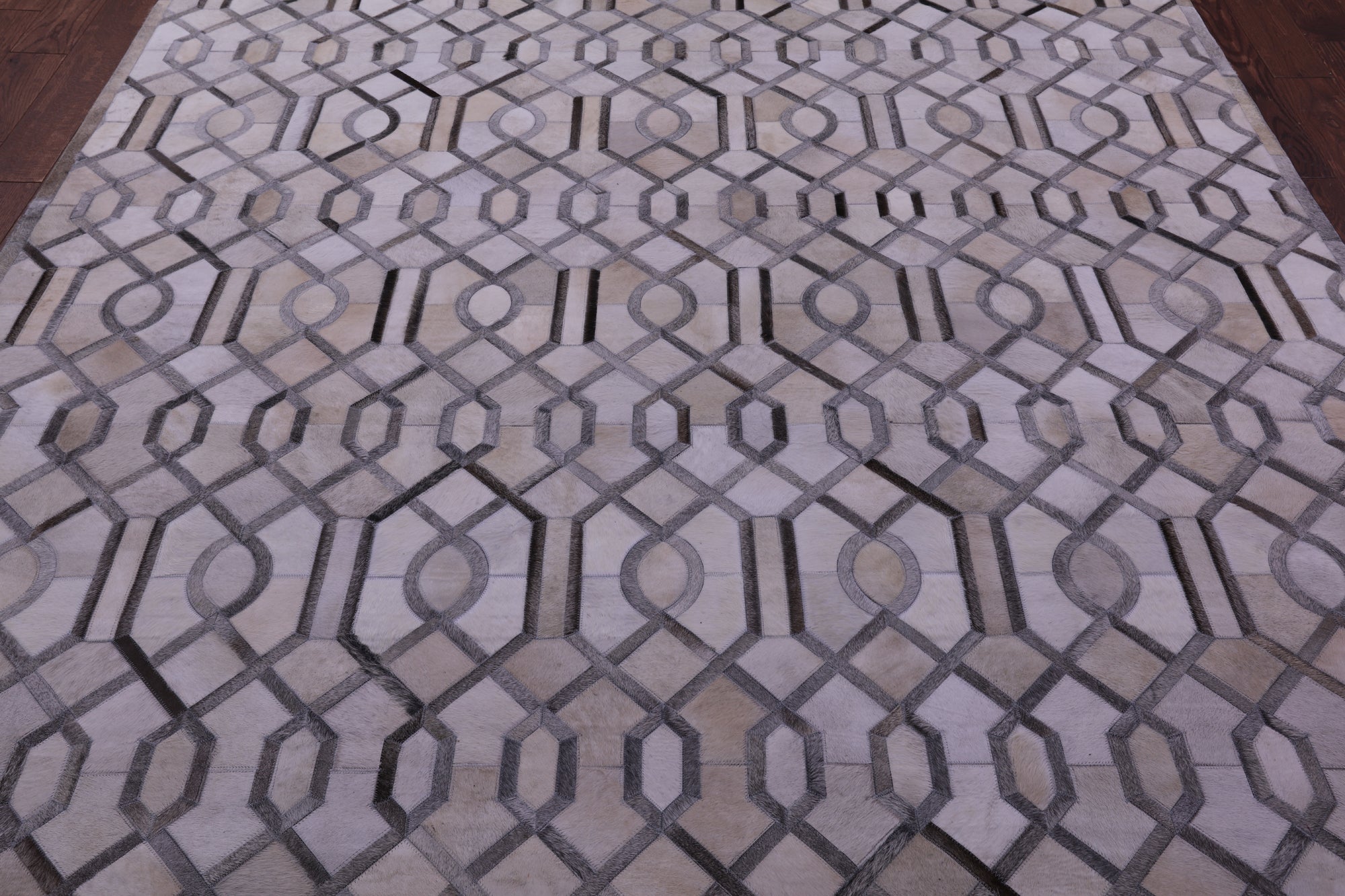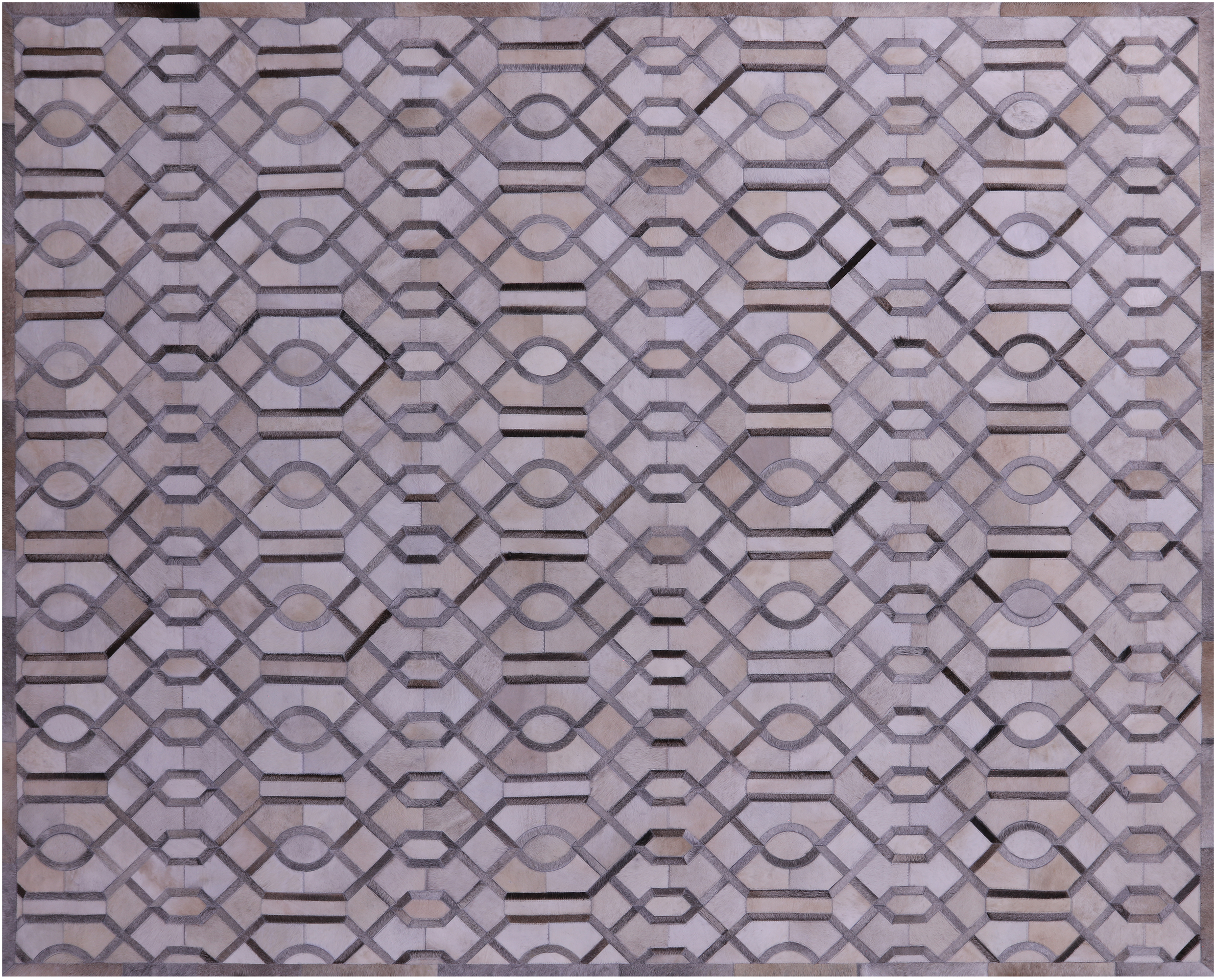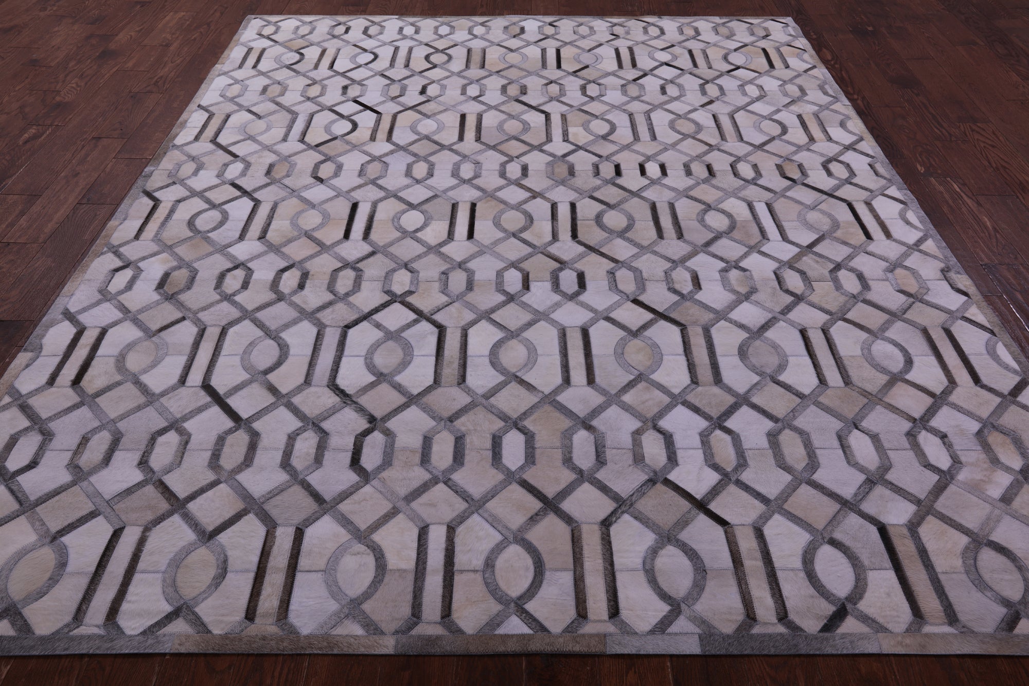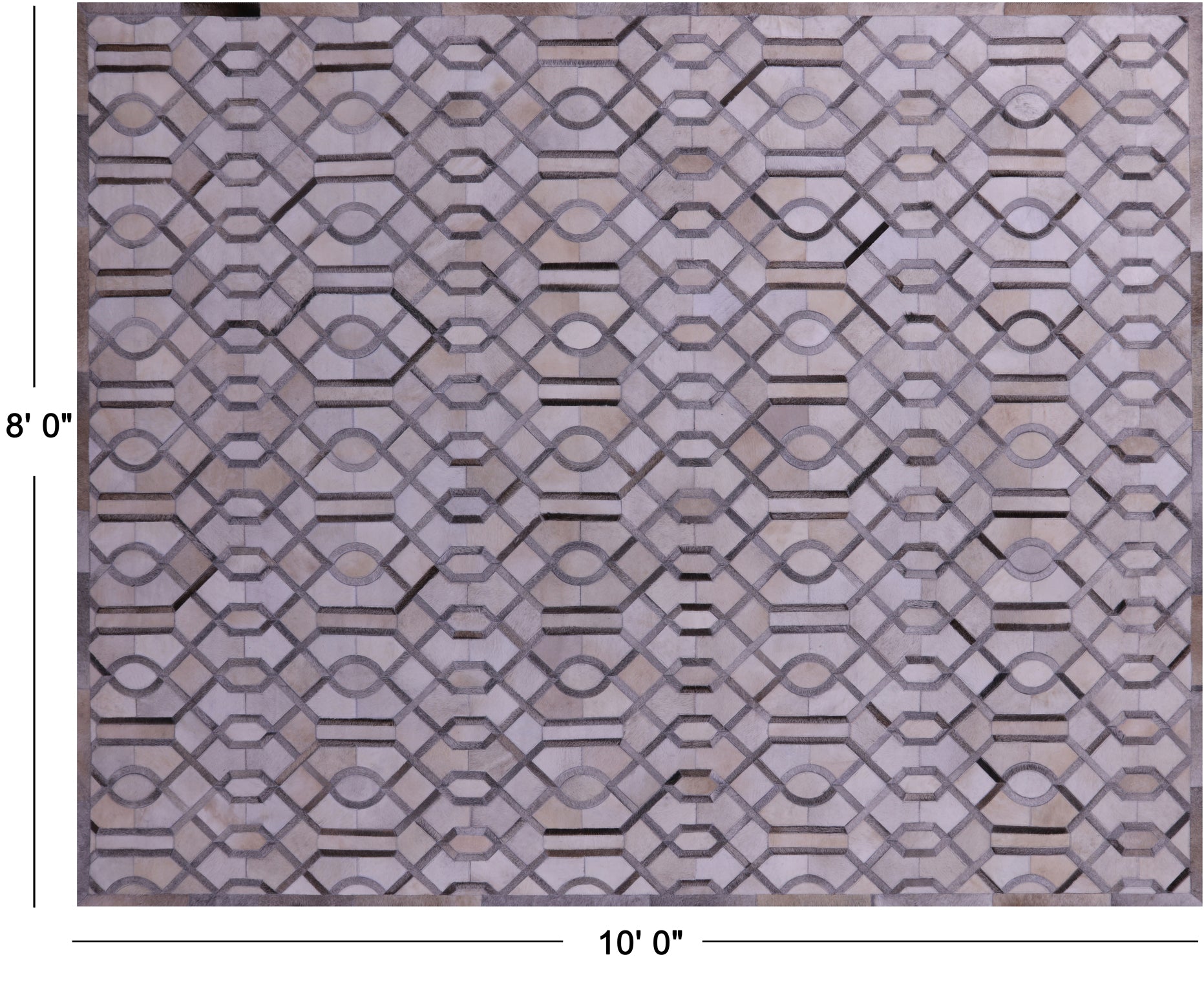 8' 0" X 10' 0" Grey & White Natural Cowhide Hand Stitched Rug - C5766
