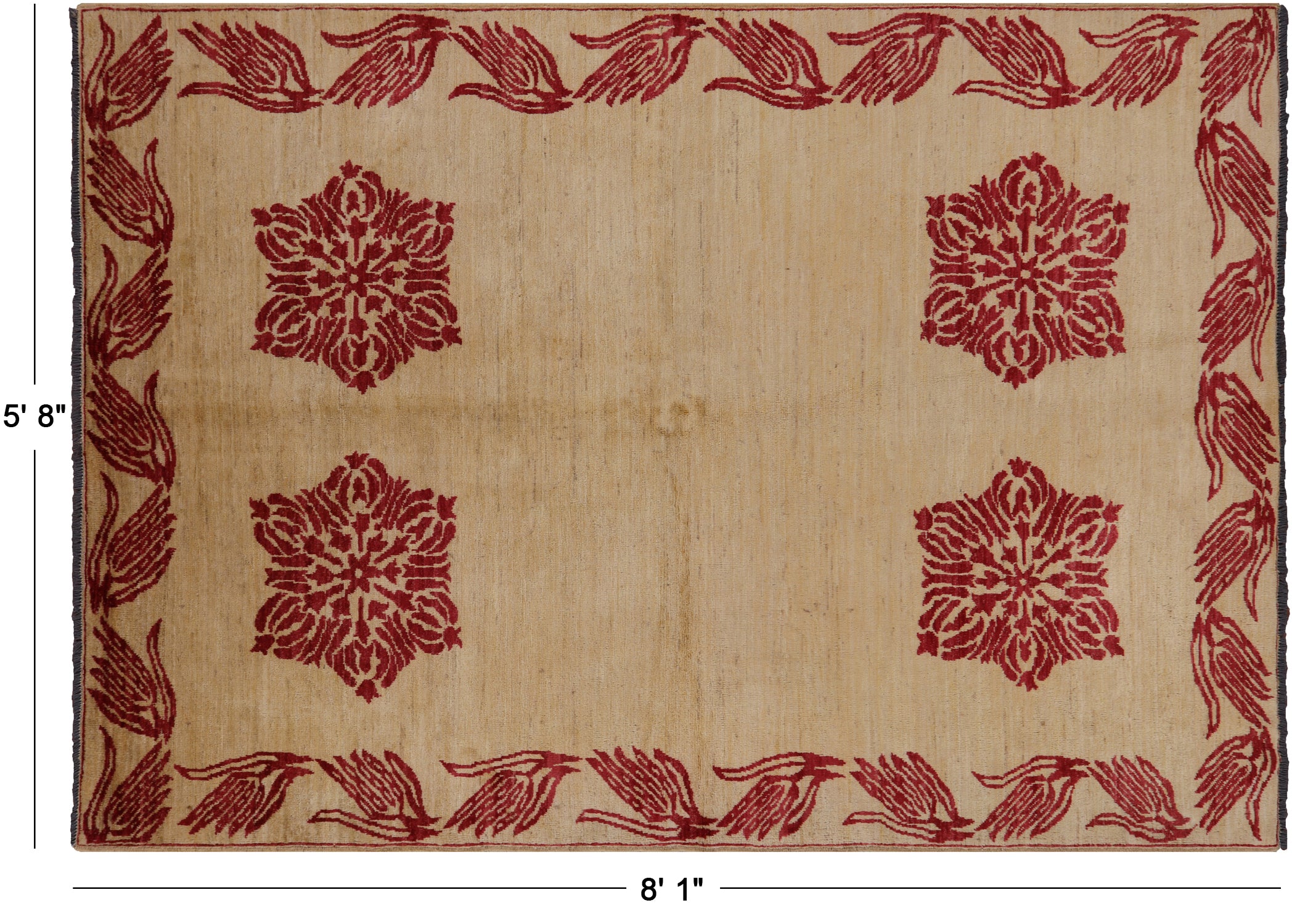 Ivory Gabbeh Hand Knotted Wool On Wool Area Rug 5' 8" X 8' 1" - H6904