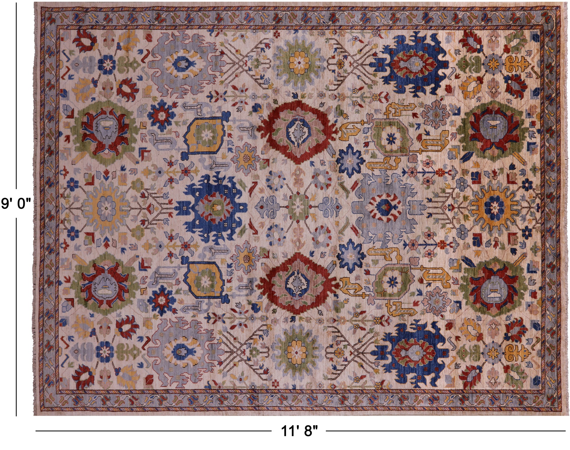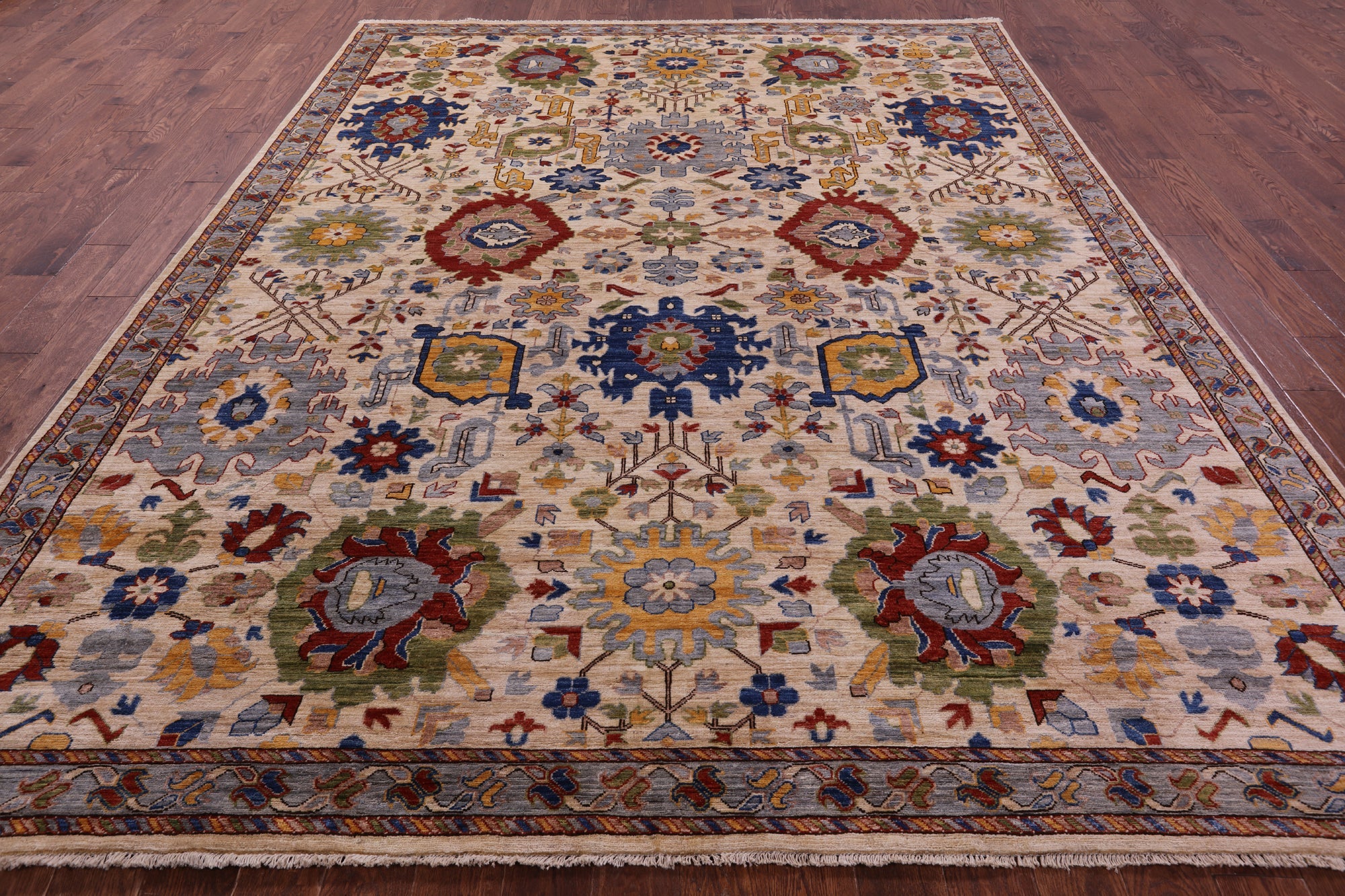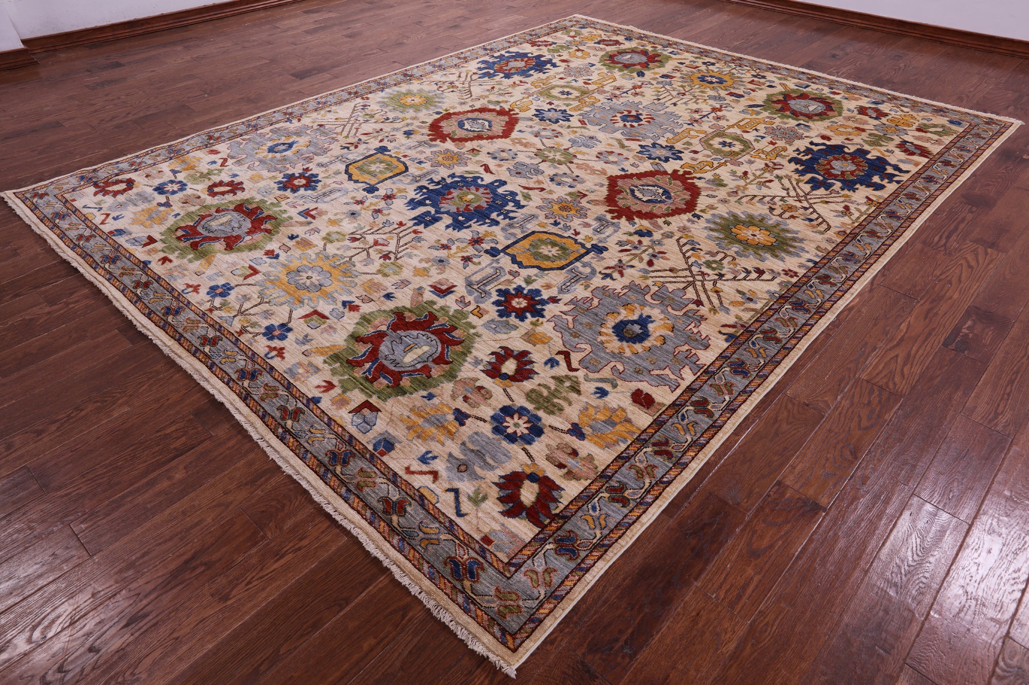 Ivory Hand-Knotted Persian Heriz Serapi Wool Rug 9' 0" X 11' 8" - Q23059