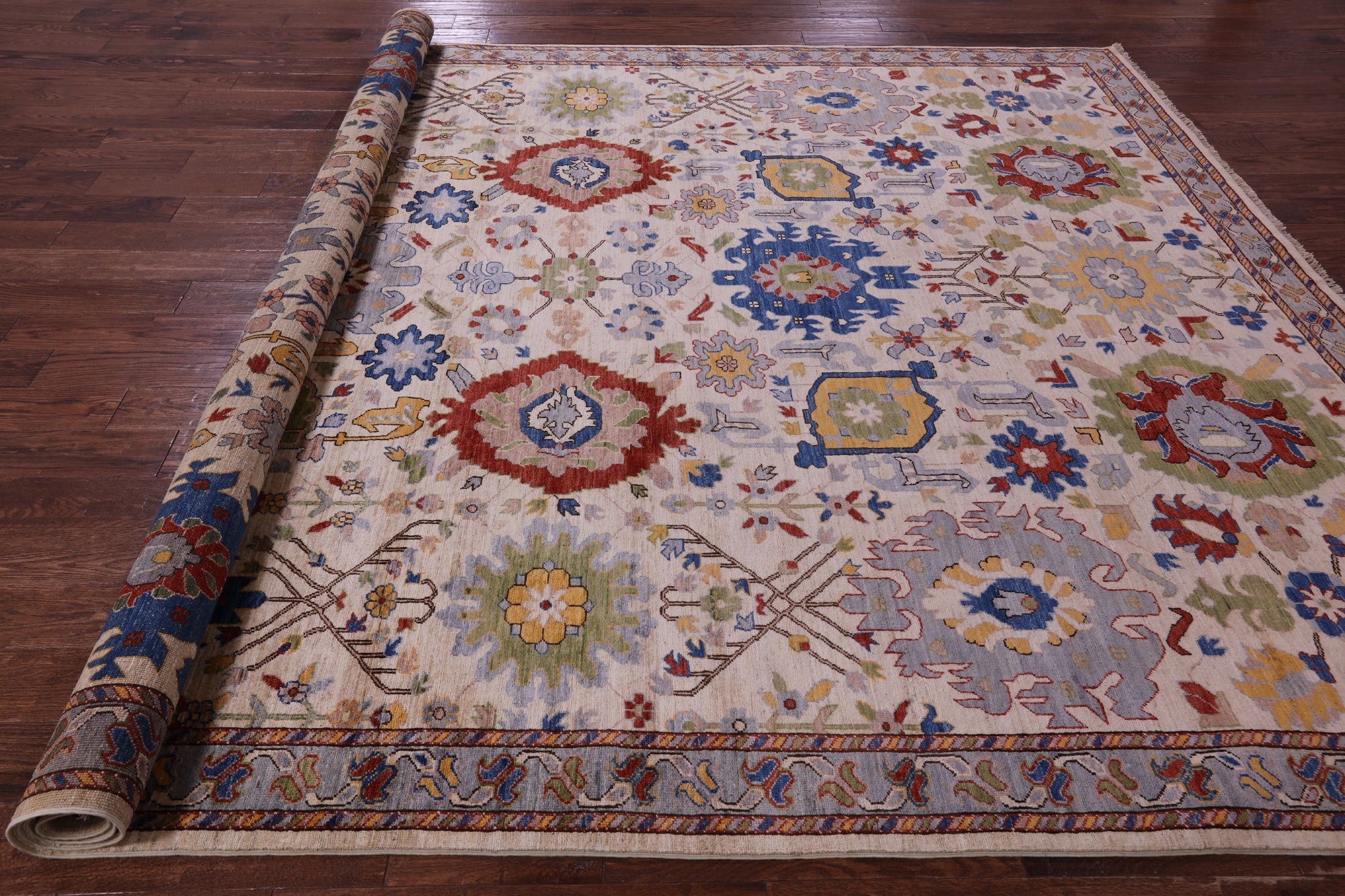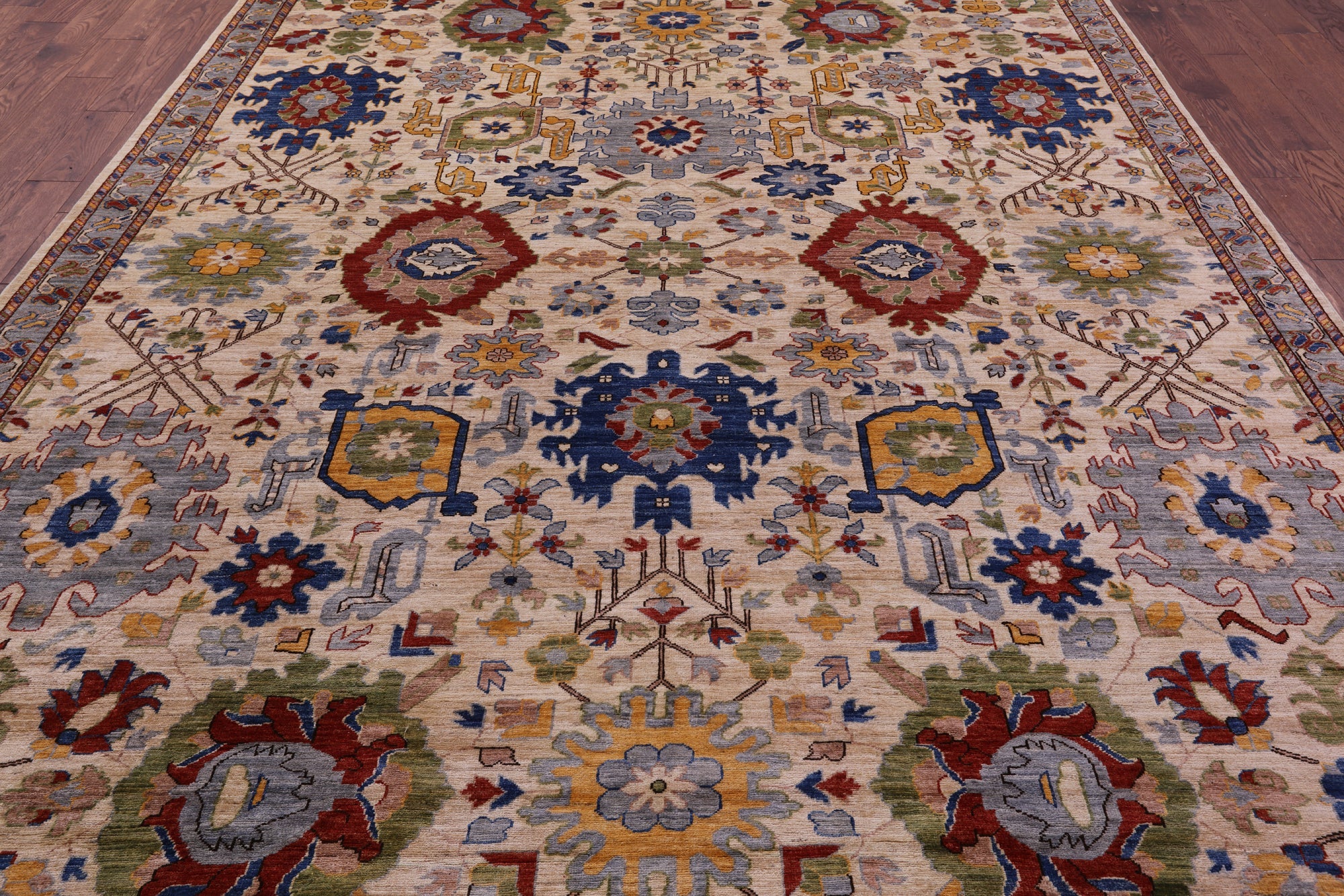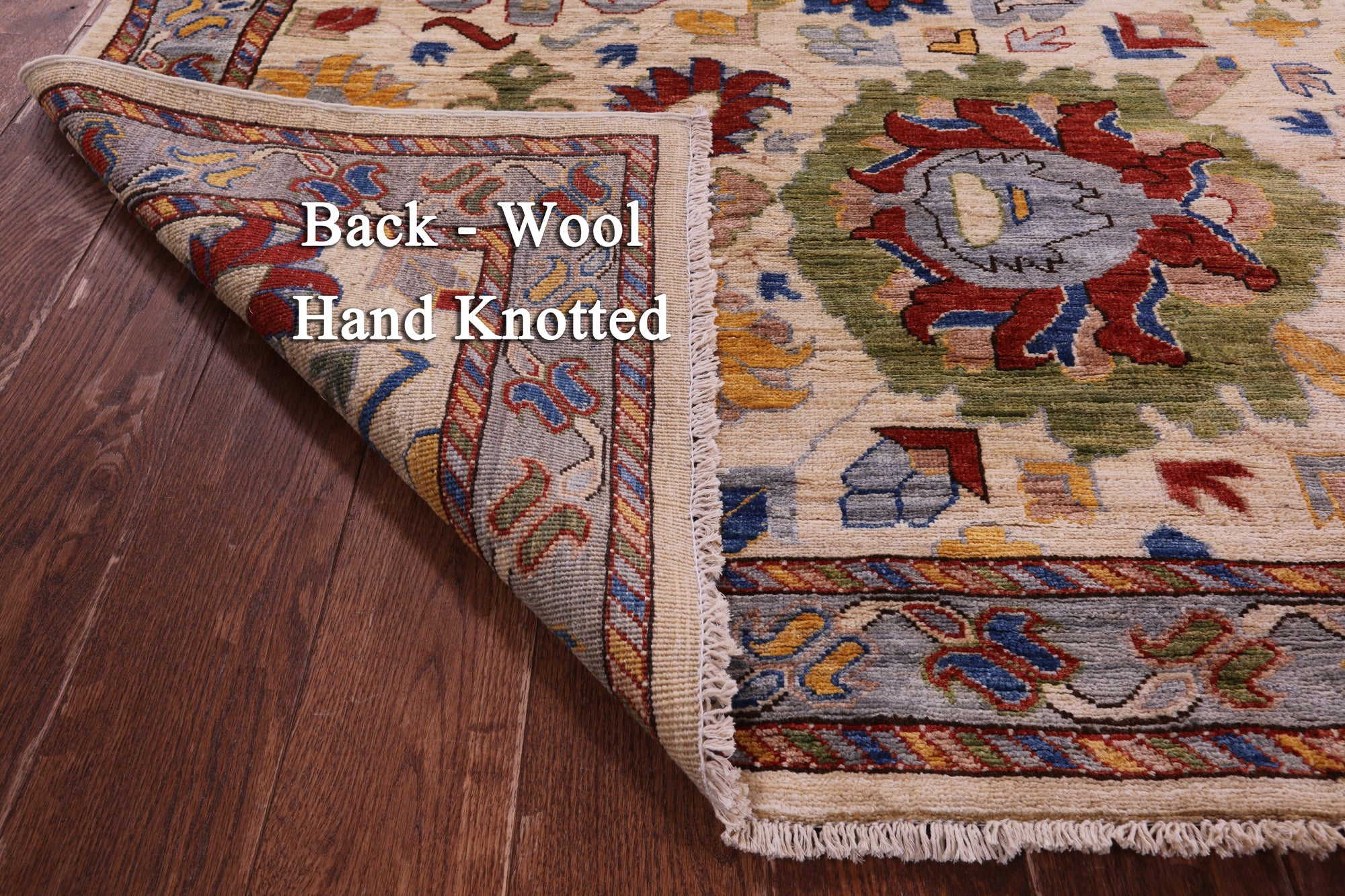 Ivory Hand-Knotted Persian Heriz Serapi Wool Rug 9' 0" X 11' 8" - Q23059