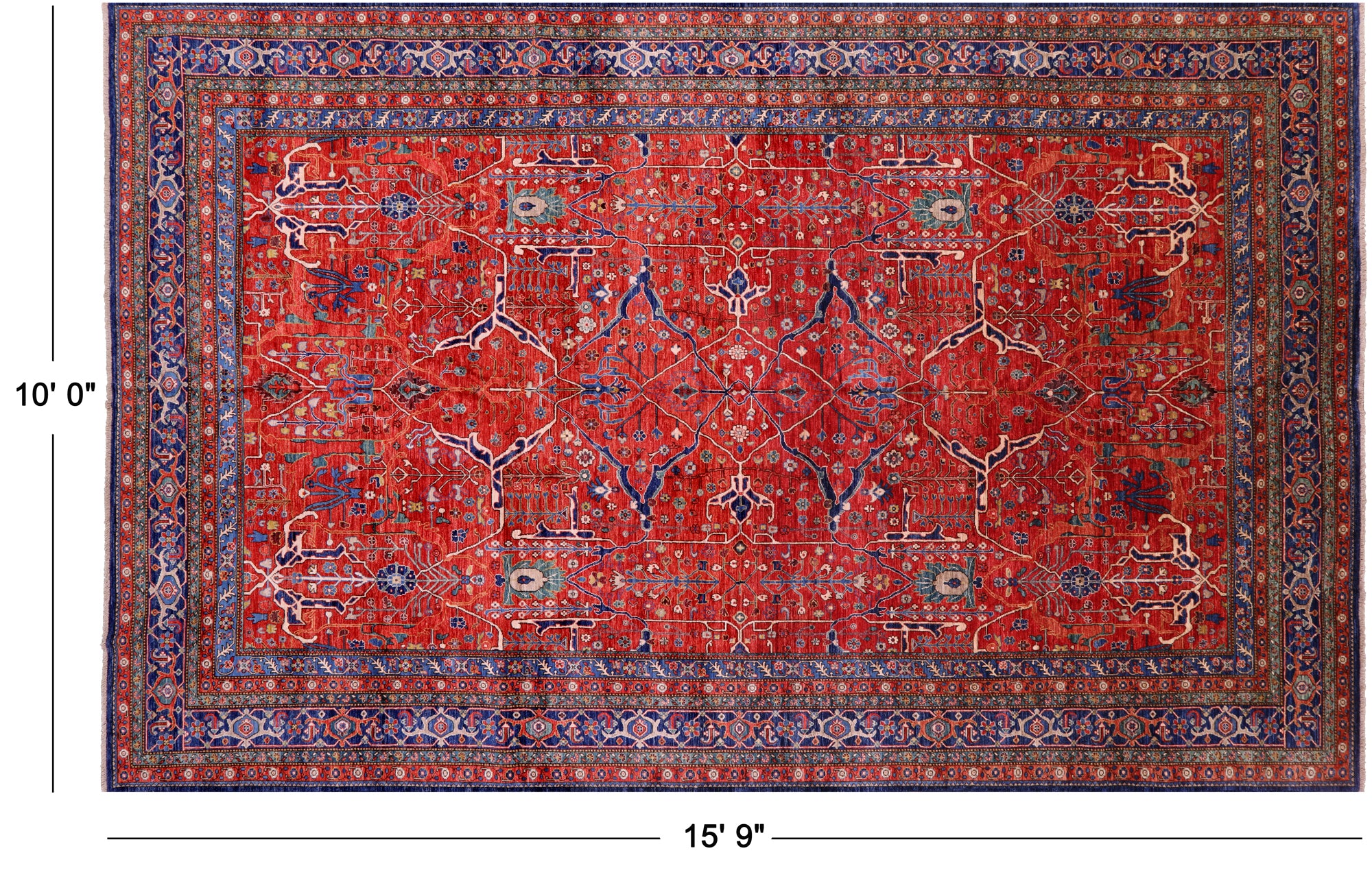 Red 10' 0" X 15' 9" Persian Heriz Serapi Hand-Knotted Rug - Q22771
