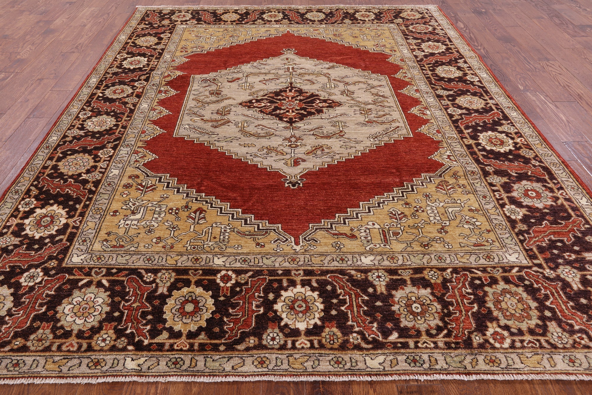 The nature-inspired color palette of Serapi/Heriz rugs gives them an antique look, which has historically sought after for many years. They commonly feature intricate medallions, followed by abstract florals and geometric designs. What makes the Serapi/Heriz so desirable, is their high endurance and longevity under high traffic. Serapi/Heriz rugs are constructed by a labor intensive hand knotting process, made from thick plush piles of wool.