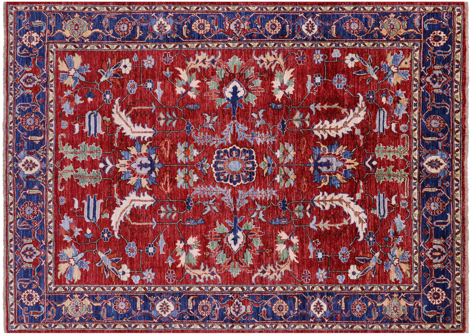 Red 5' 10" X 8' 2" Handmade Persian Heriz Serapi Wool Rug - Q22799