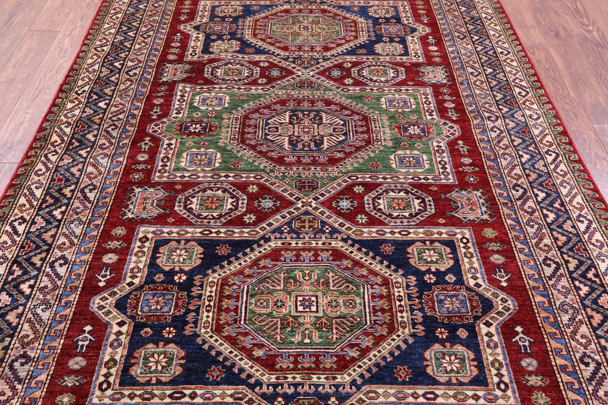 Super Kazak rugs were woven in the south of Caucasus and are very regional in their designs. Super Kazak rugs are very traditional in look and the patterns can vary from geometric shapes, tribal designs like people and animals, and symbolic medallions. They are beautifully intricate and heavy in design. These rugs come in varieties of rich, warm, jewel tones that can liven up any space.