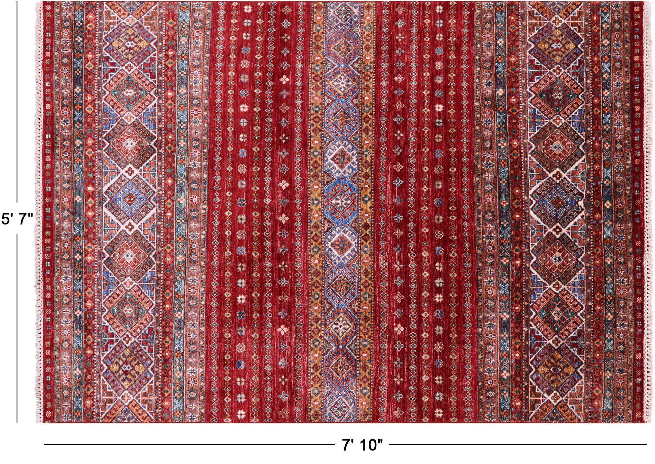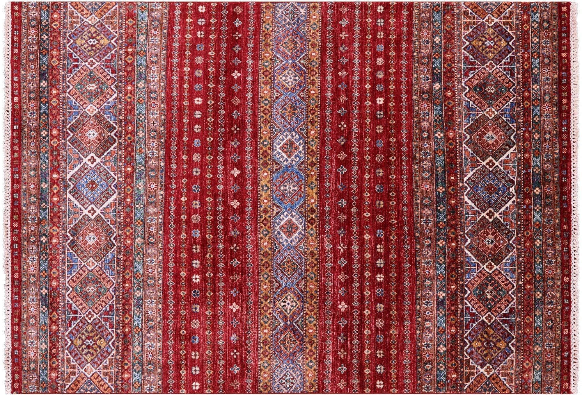 Red 5' 7" X 7' 10" Super Kazak Khorjin Hand Knotted Rug - Q12926