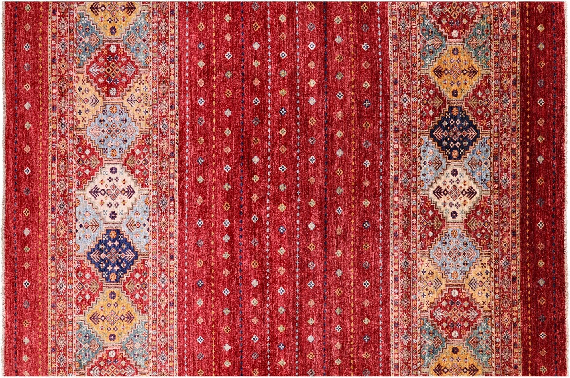 Red Super Kazak Khorjin Hand-Knotted Rug 6' 8" X 9' 10" - Q5423
