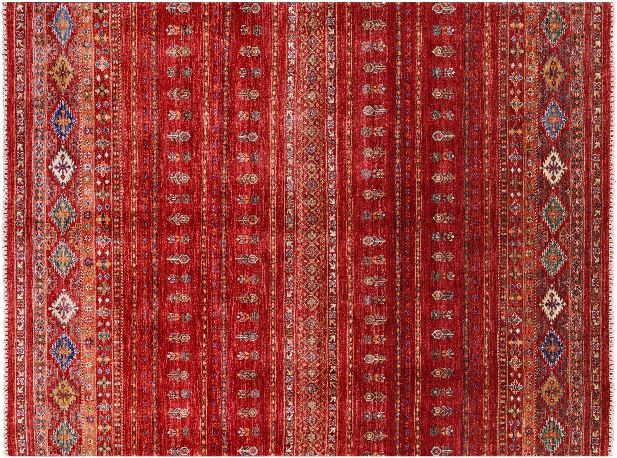 Red Super Kazak Khorjin Hand-Knotted Wool Rug 5' 10" X 7' 10" - Q5349