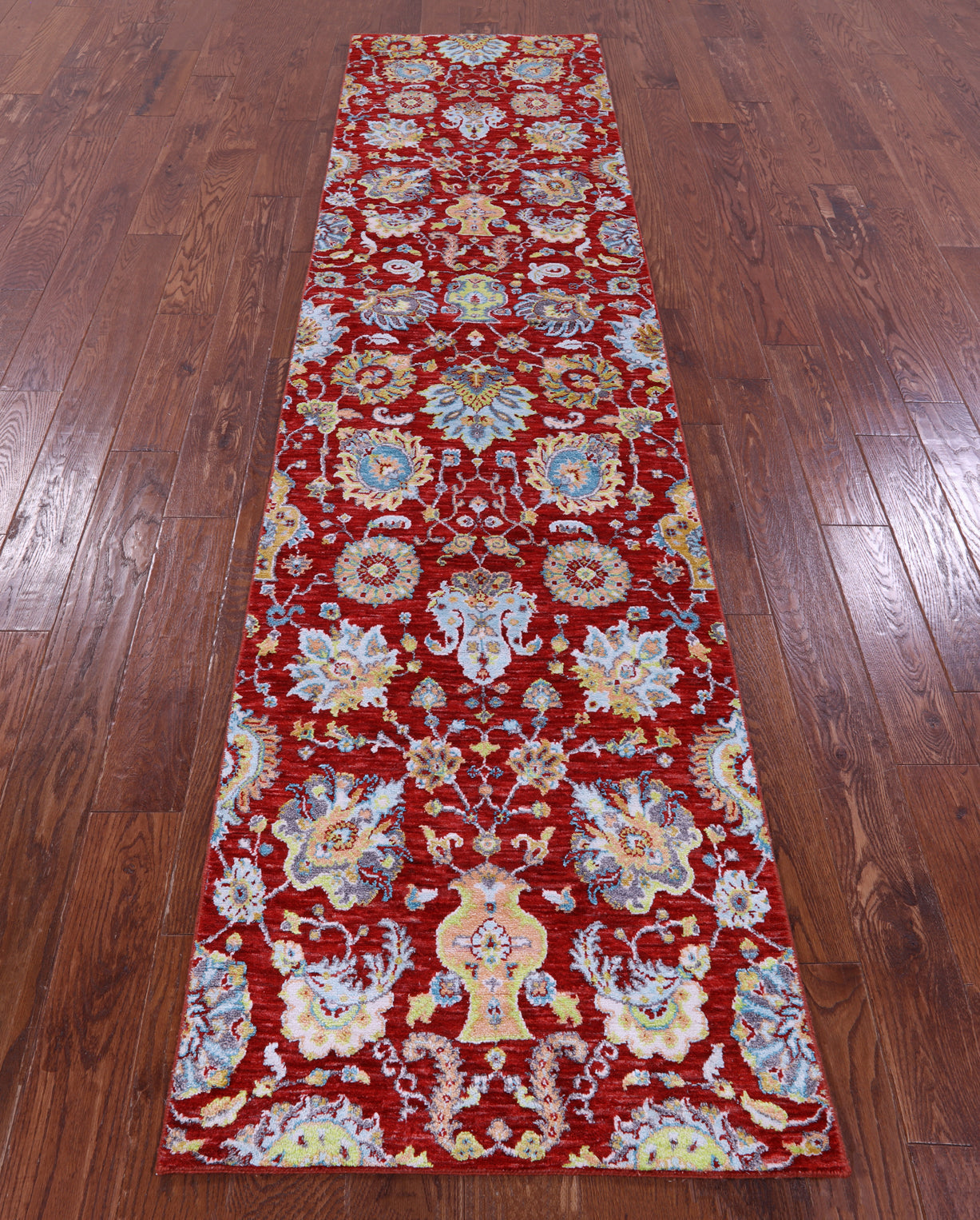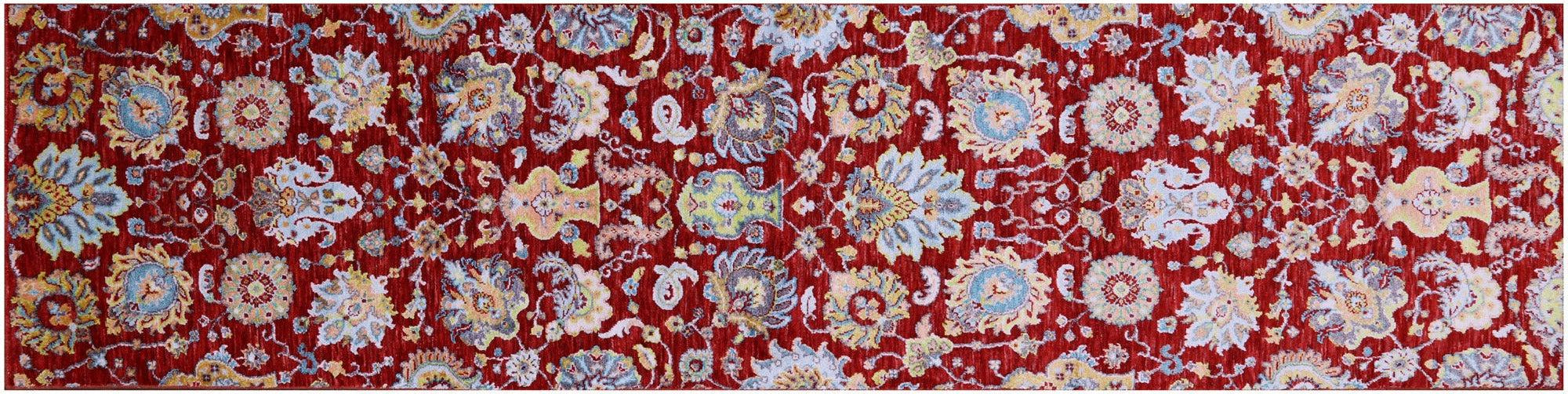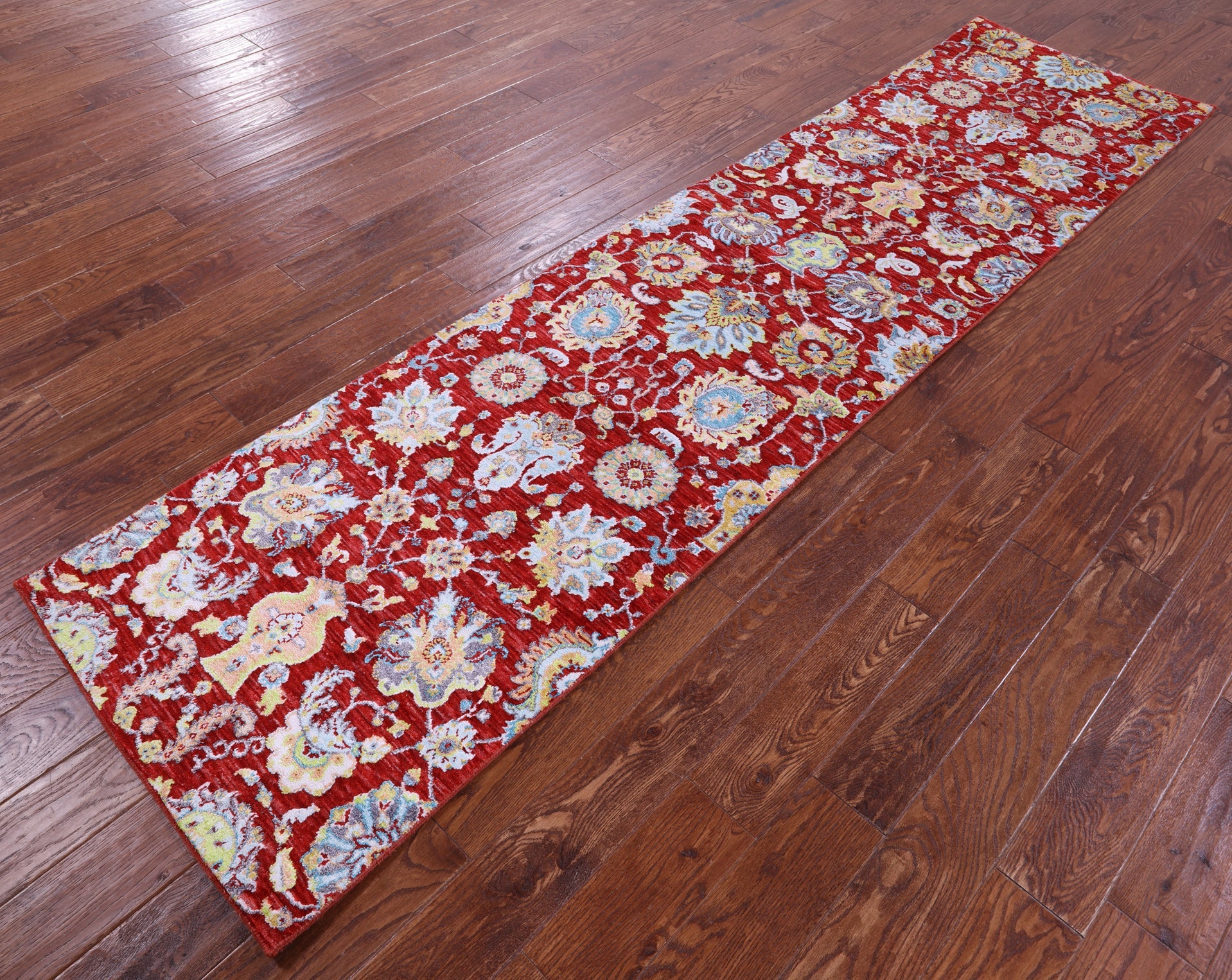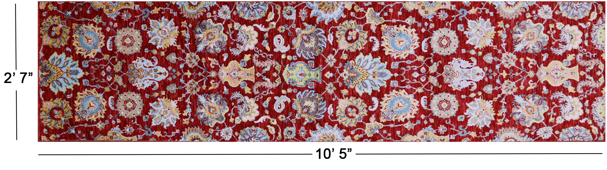 Red Wool & Silk Persian Tabriz Handmade Runner Rug 2' 7" X 10' 5" - Q21530