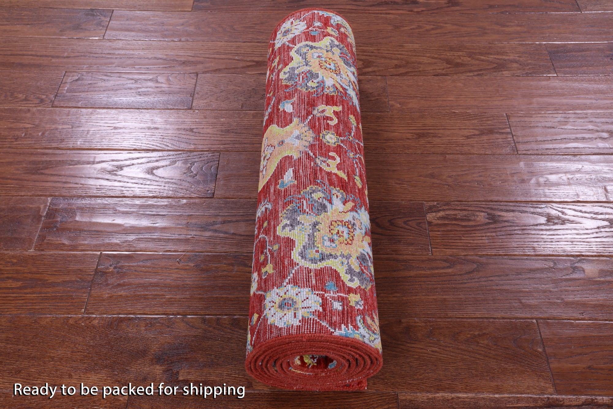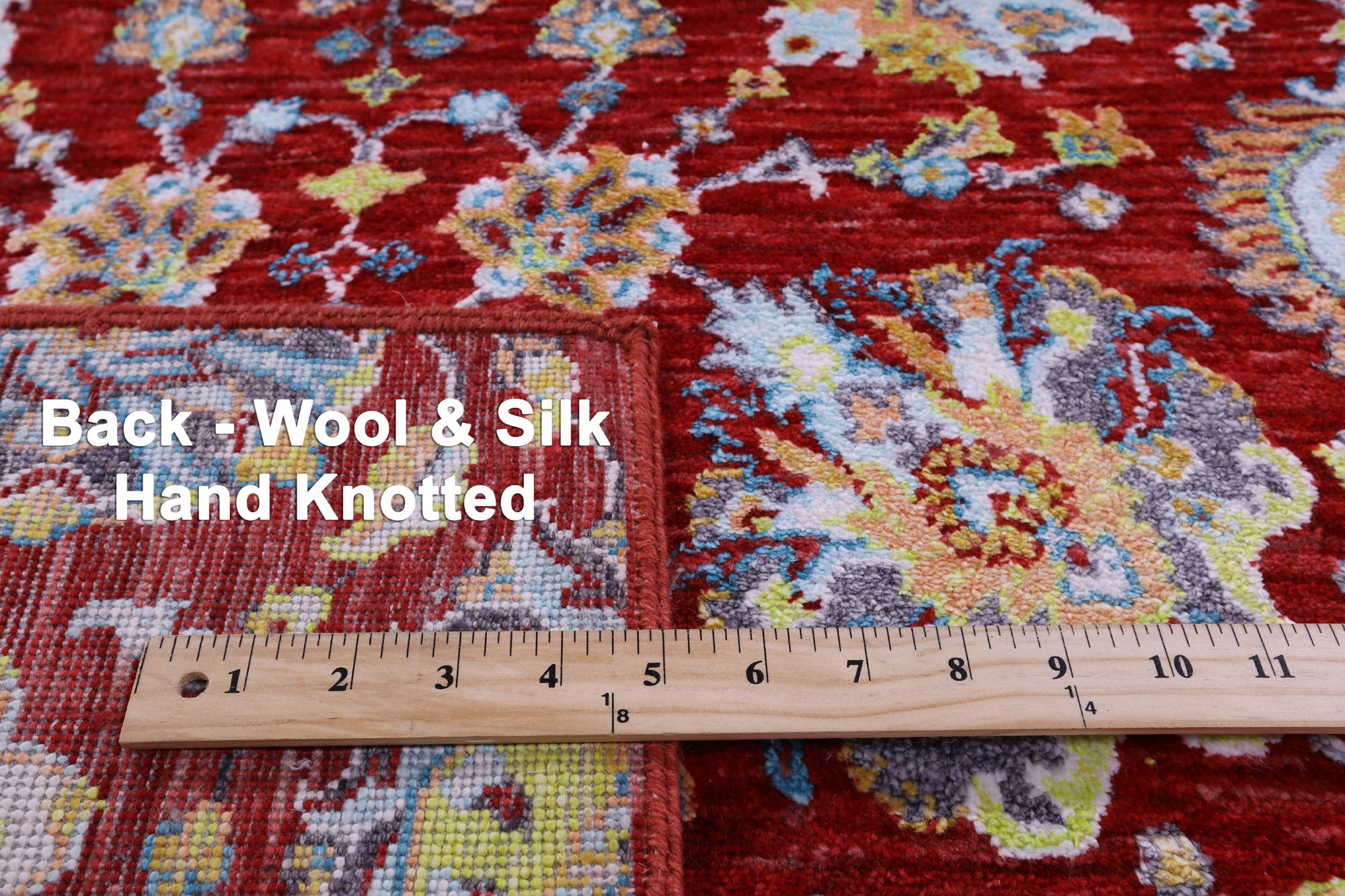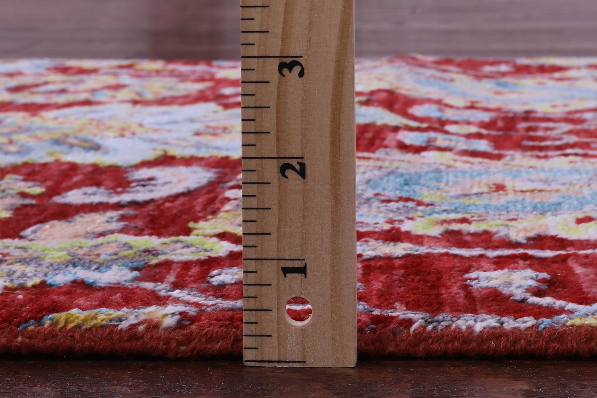 Red Wool & Silk Persian Tabriz Handmade Runner Rug 2' 7" X 10' 5" - Q21530