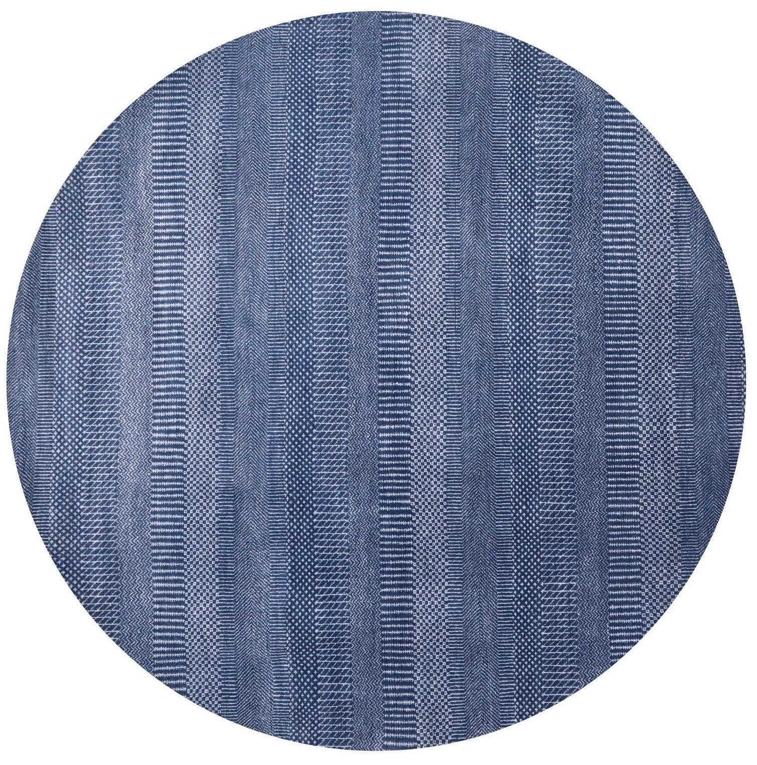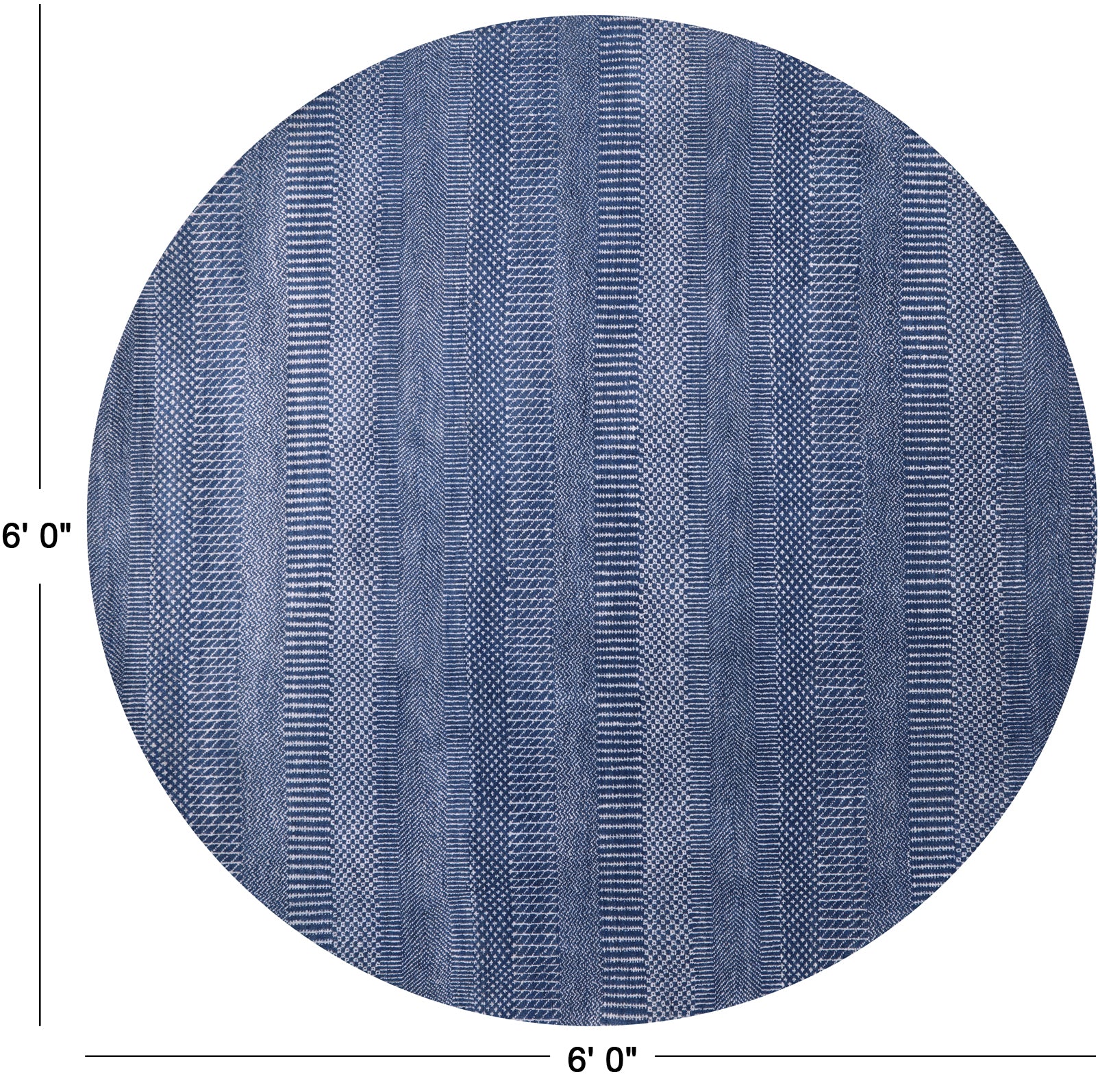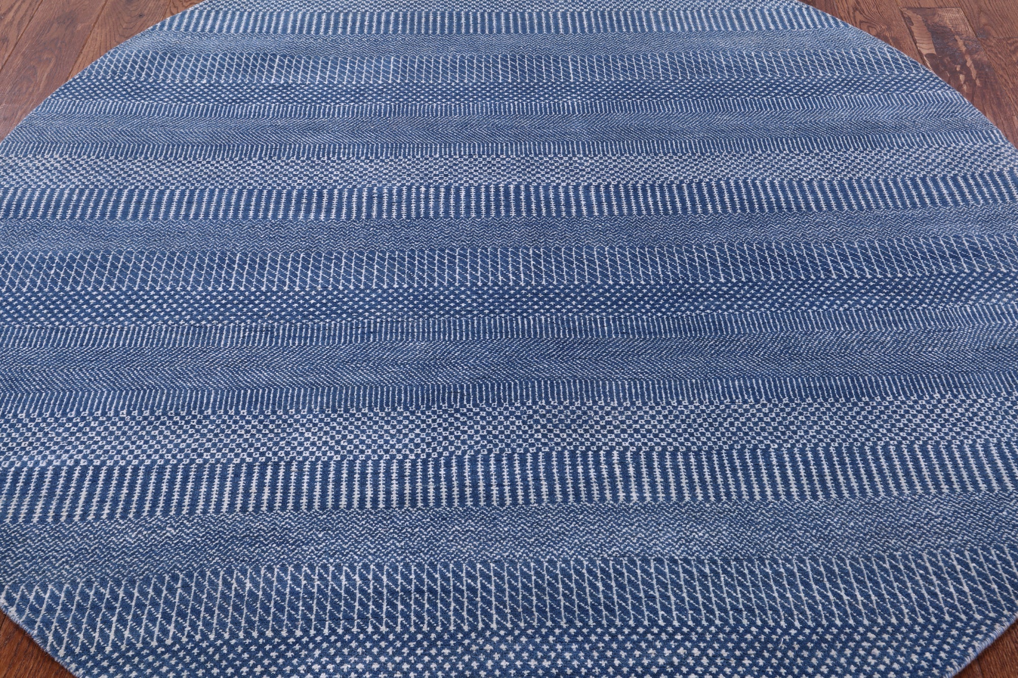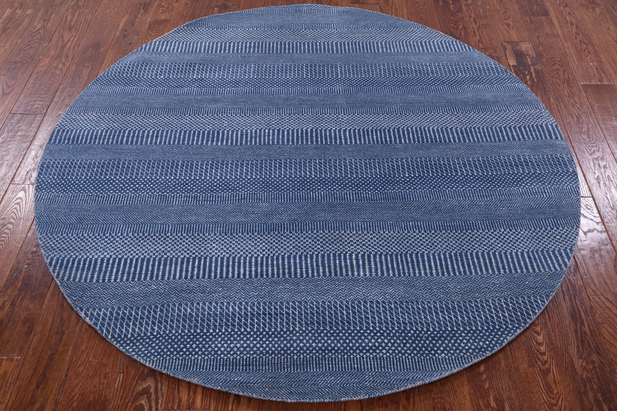 Blue 6' Round Savannah Grass Hand Knotted Wool & Silk Rug - Q11474