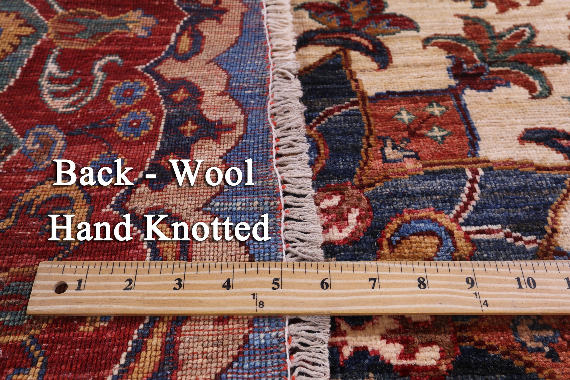 This is a genuine hand knotted cut pile rug, not tufted, hooked, or machine made. All we do is hand knotted.