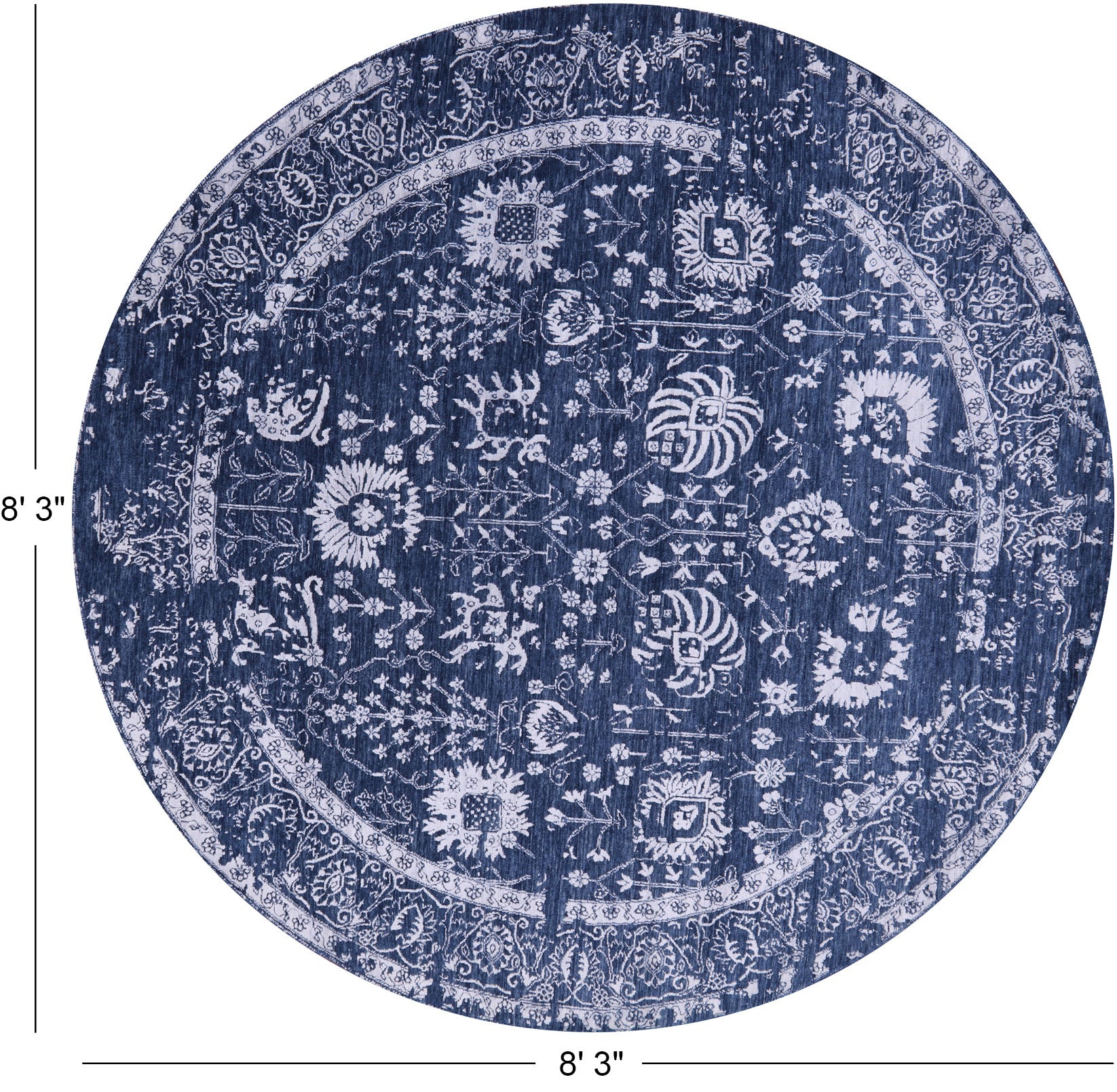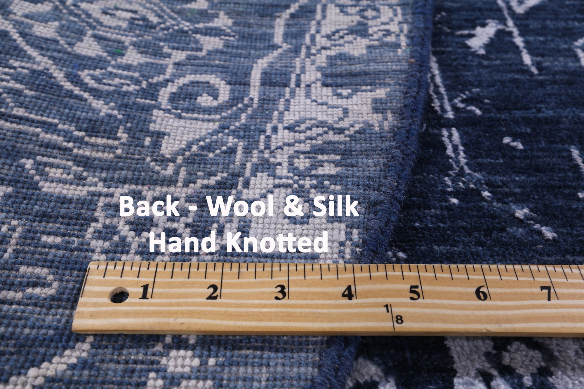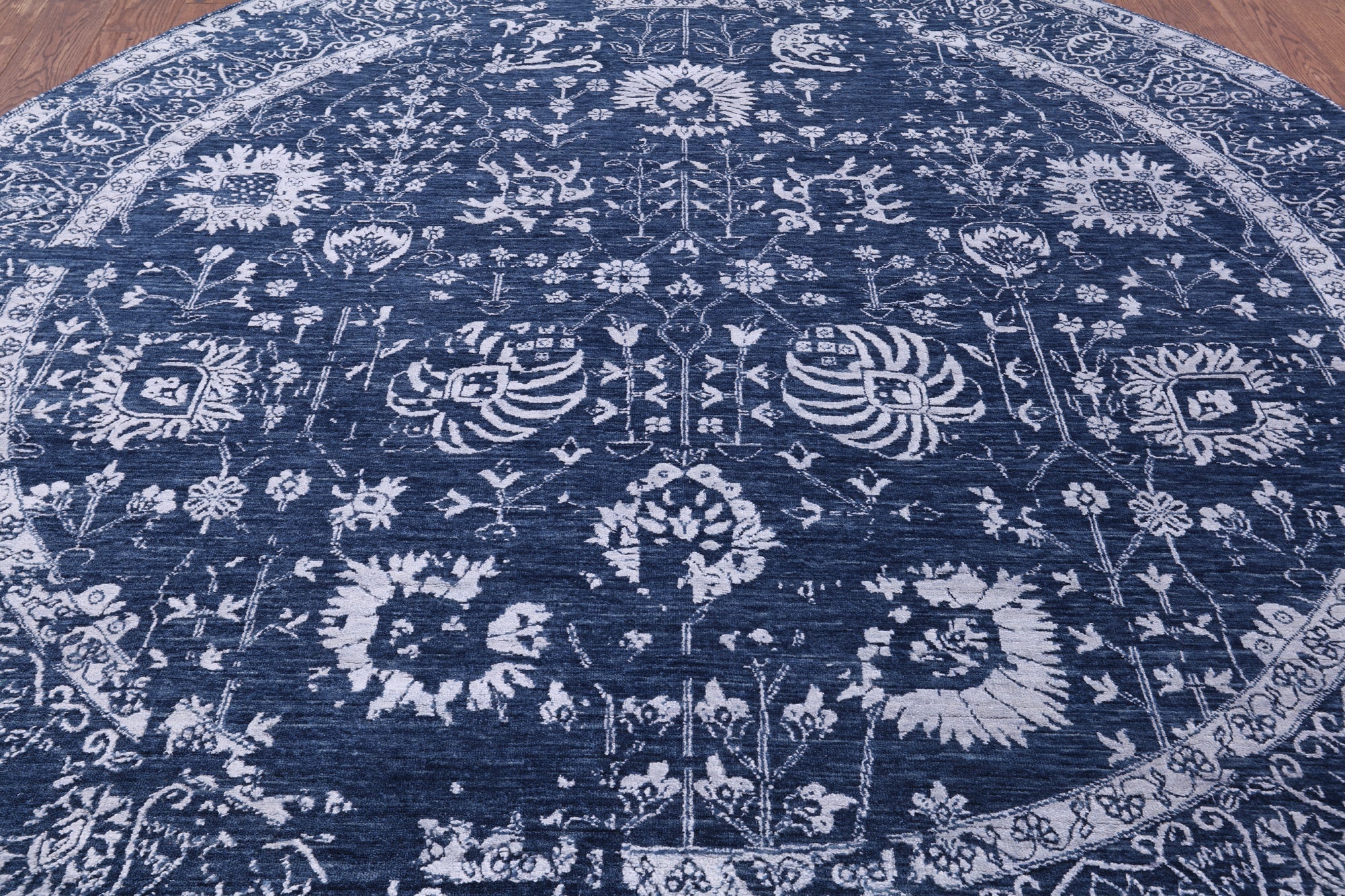 Blue 8' Round Wool & Silk Persian Tabriz Hand-Knotted Rug - Q6942 is backordered and will ship as soon as it is back in stock.
