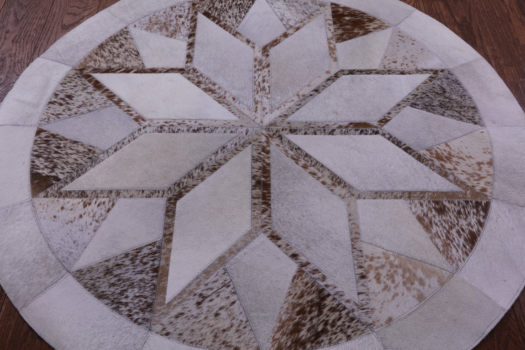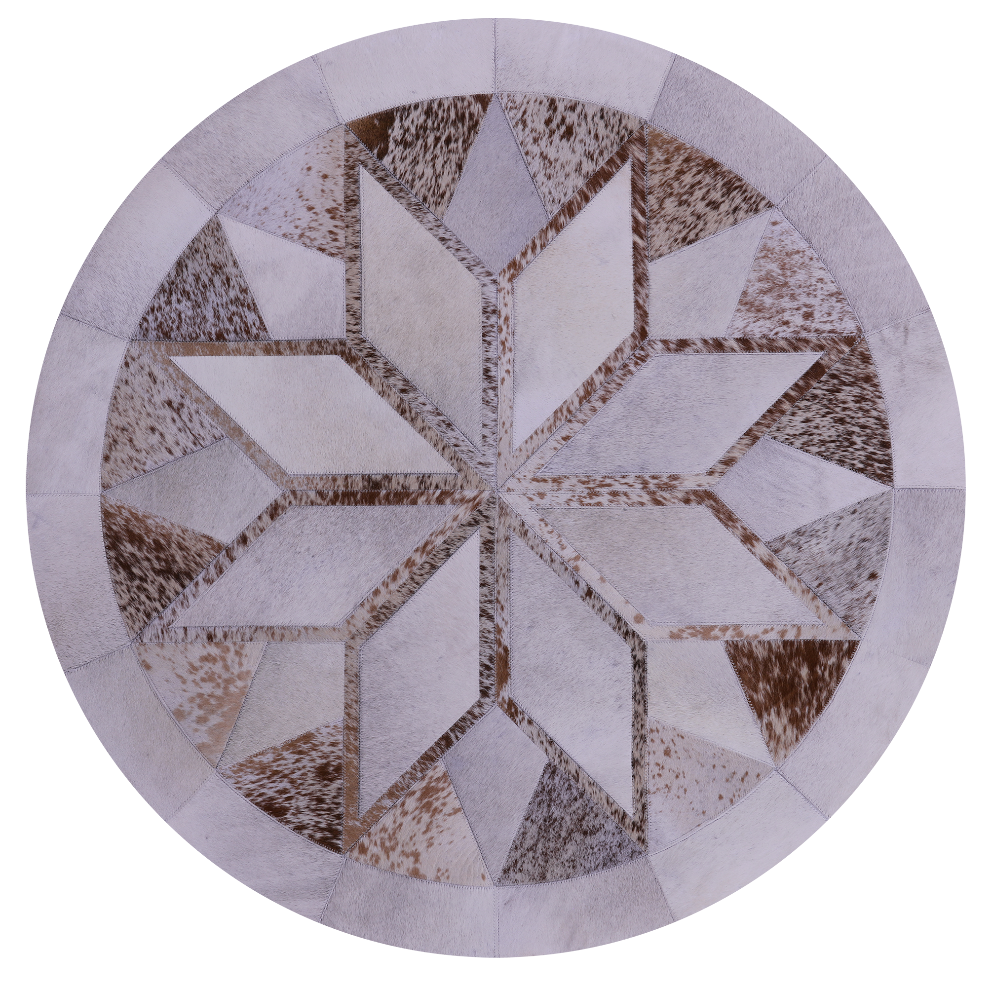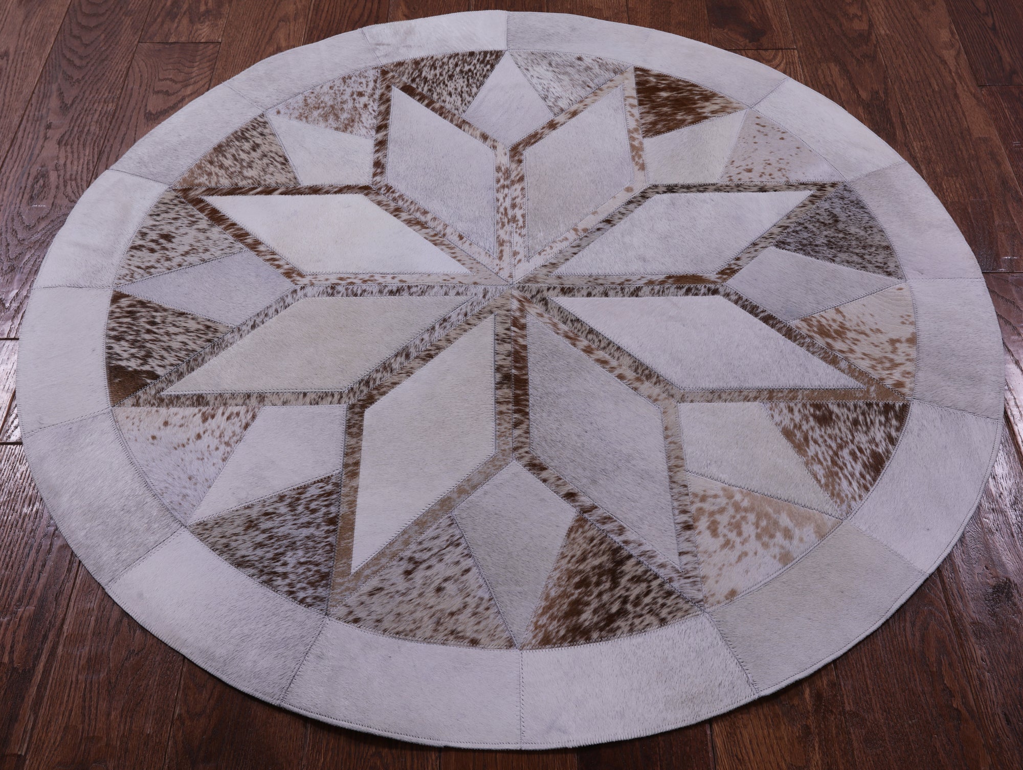 4' 0" X 4' 0" Brown Salt & Pepper Round Star Natural Cowhide Hand Stitched Rug - C3500 is backordered and will ship as soon as it is back in stock.