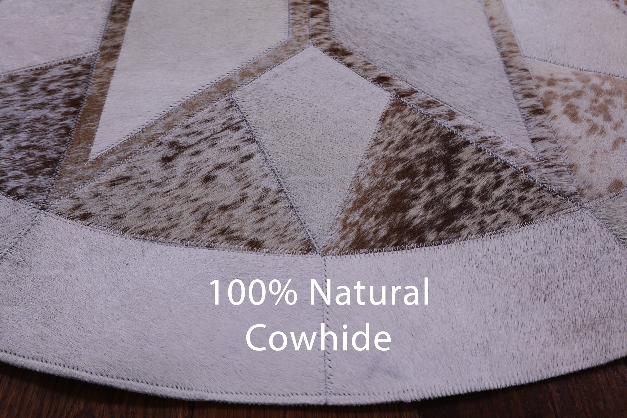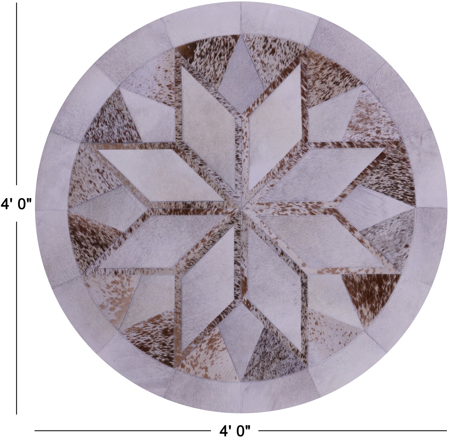 4' 0" X 4' 0" Brown Salt & Pepper Round Star Natural Cowhide Hand Stitched Rug - C3500
