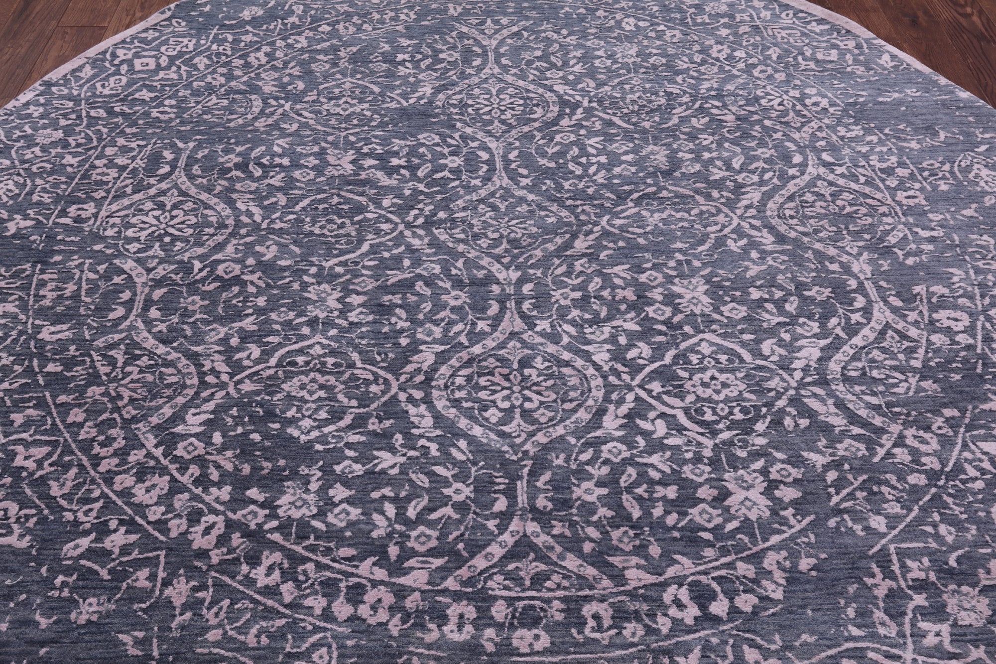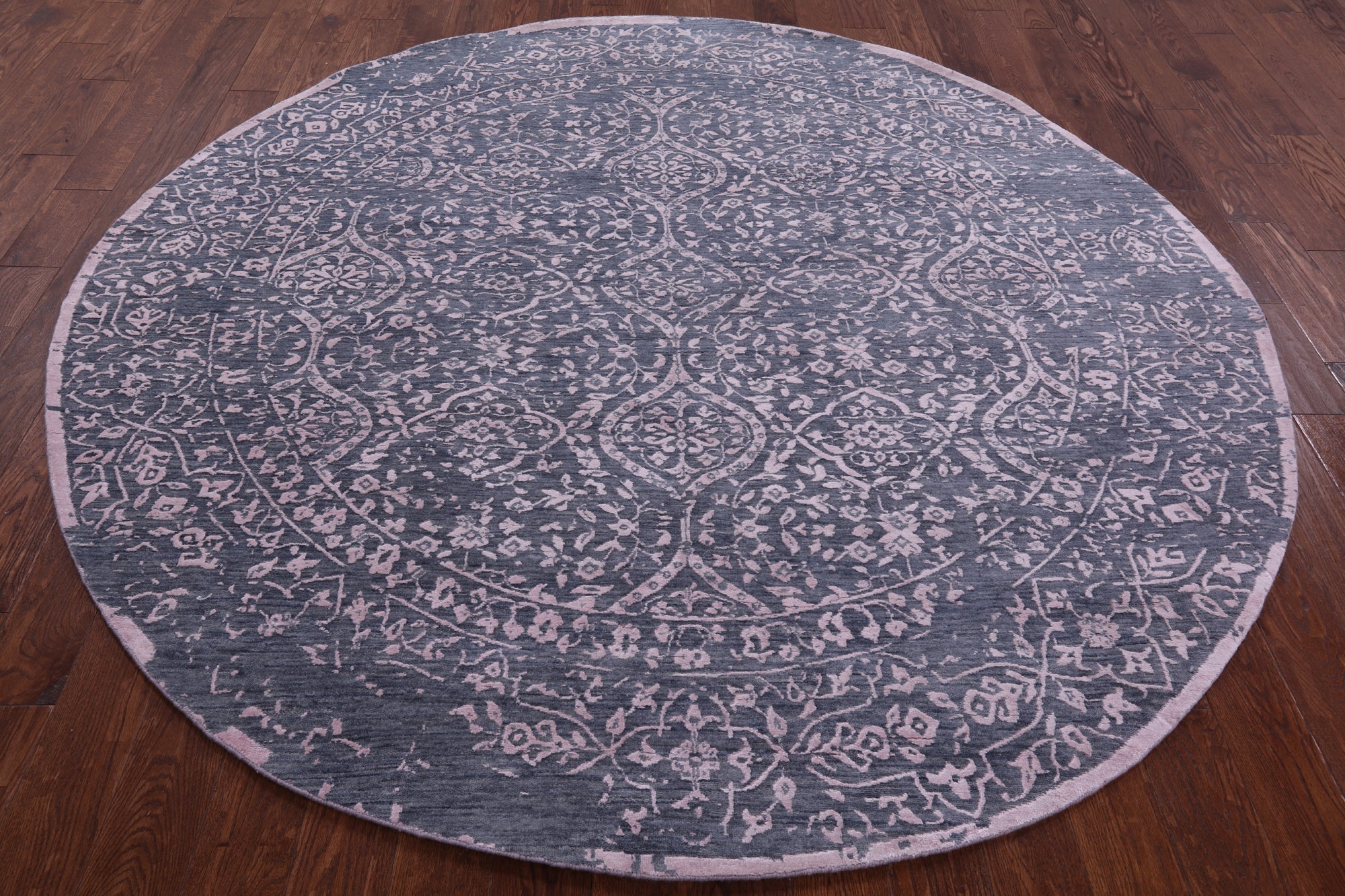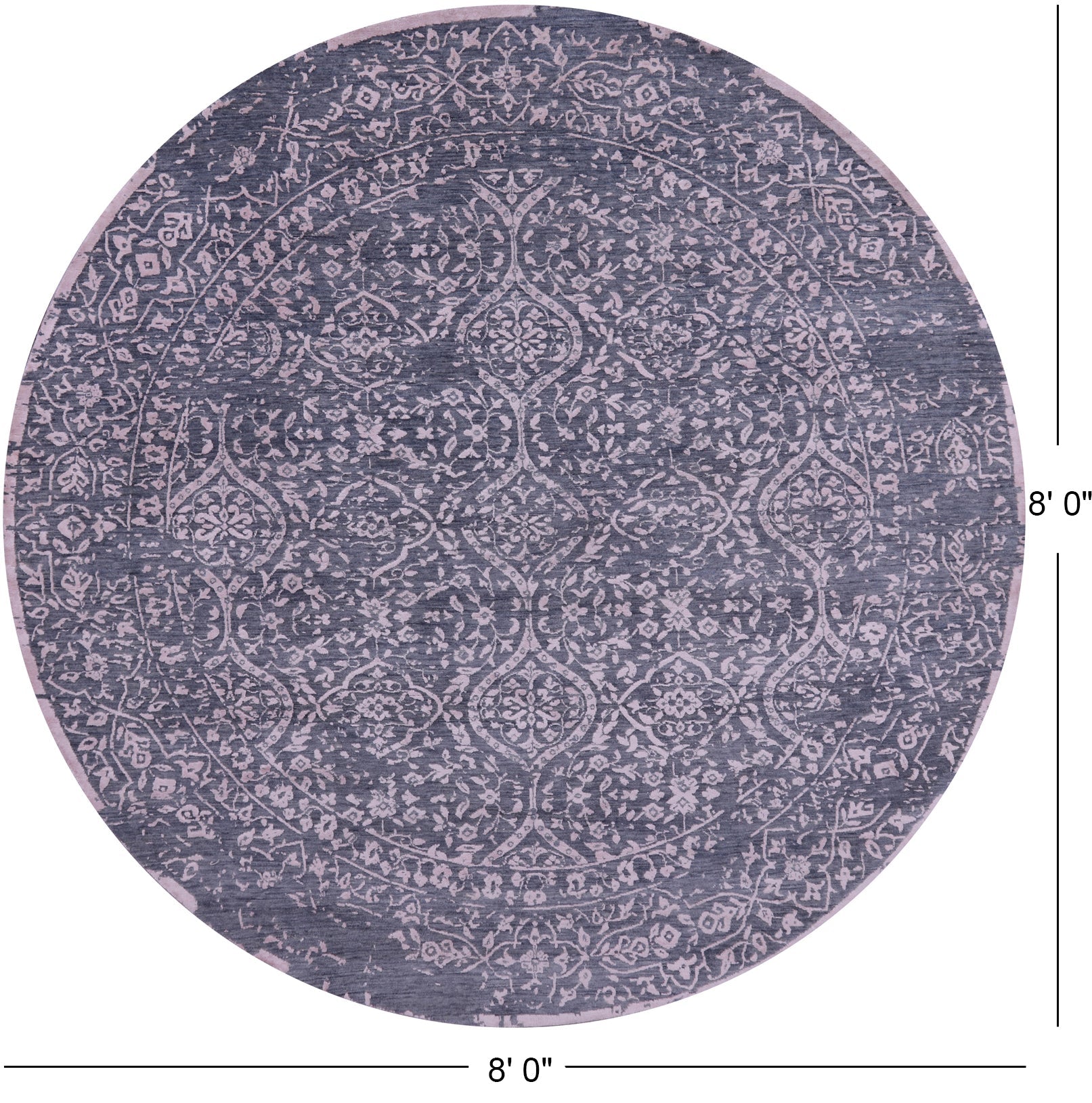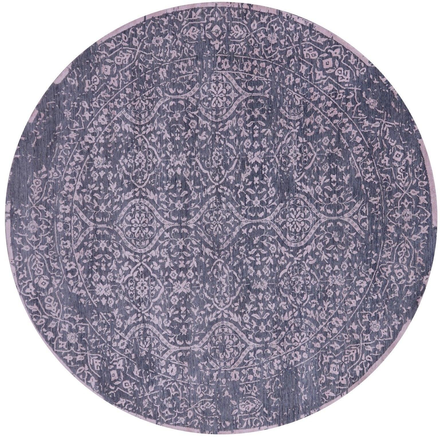 Grey 8' Round Hand Knotted Persian Wool & Silk Rug - Q9128 is backordered and will ship as soon as it is back in stock.