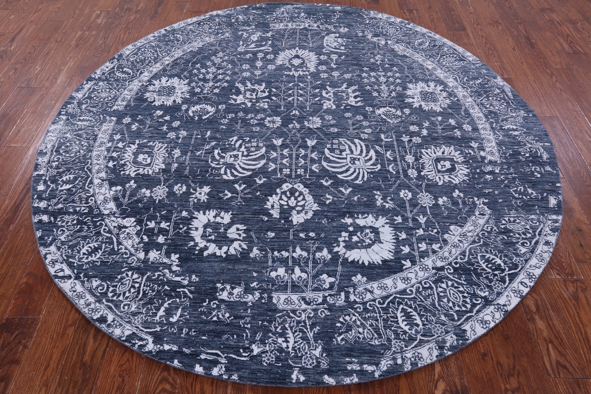 Grey 8' Round Persian Tabriz Wool & Silk Handmade Rug - Q15800