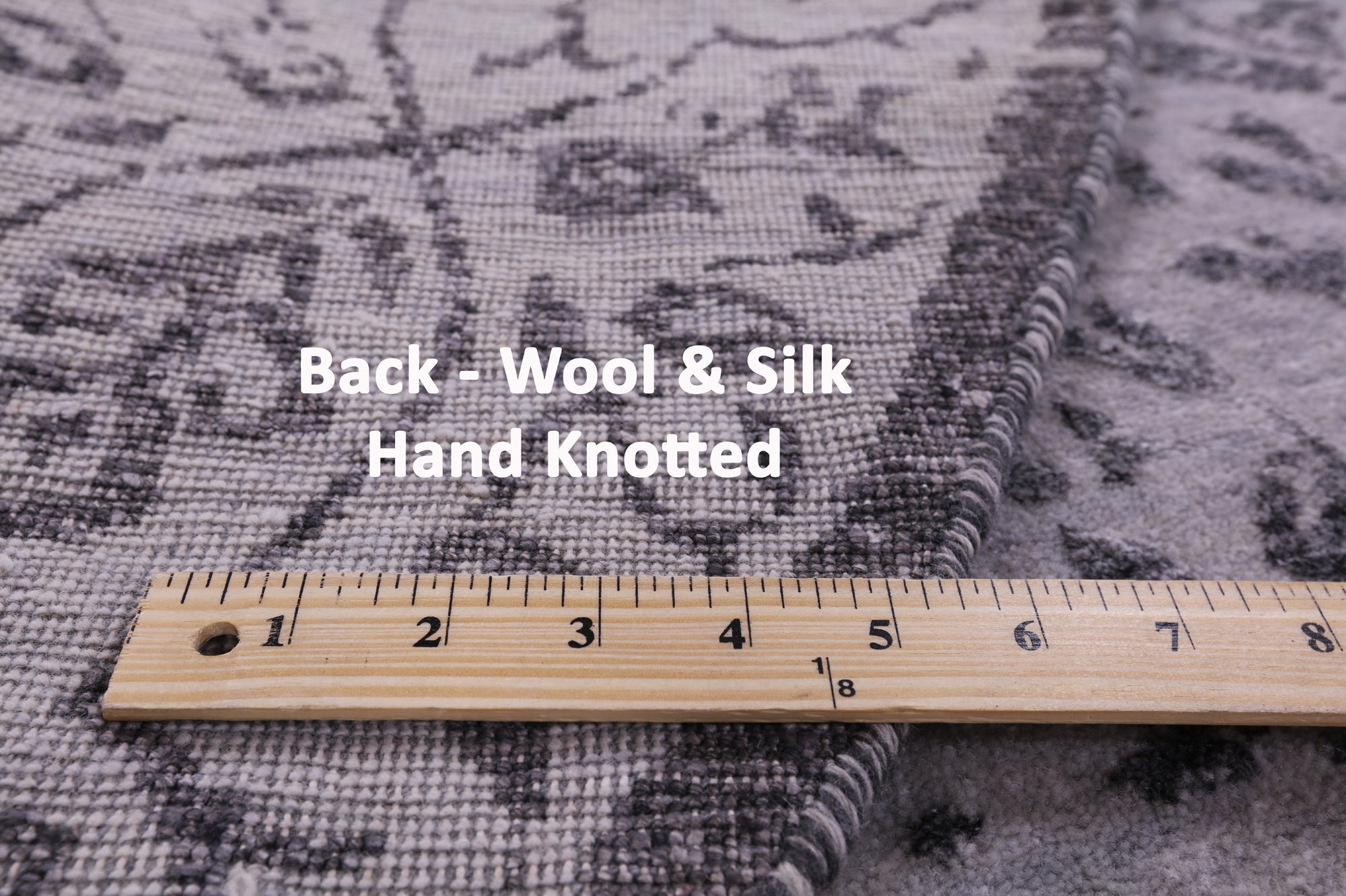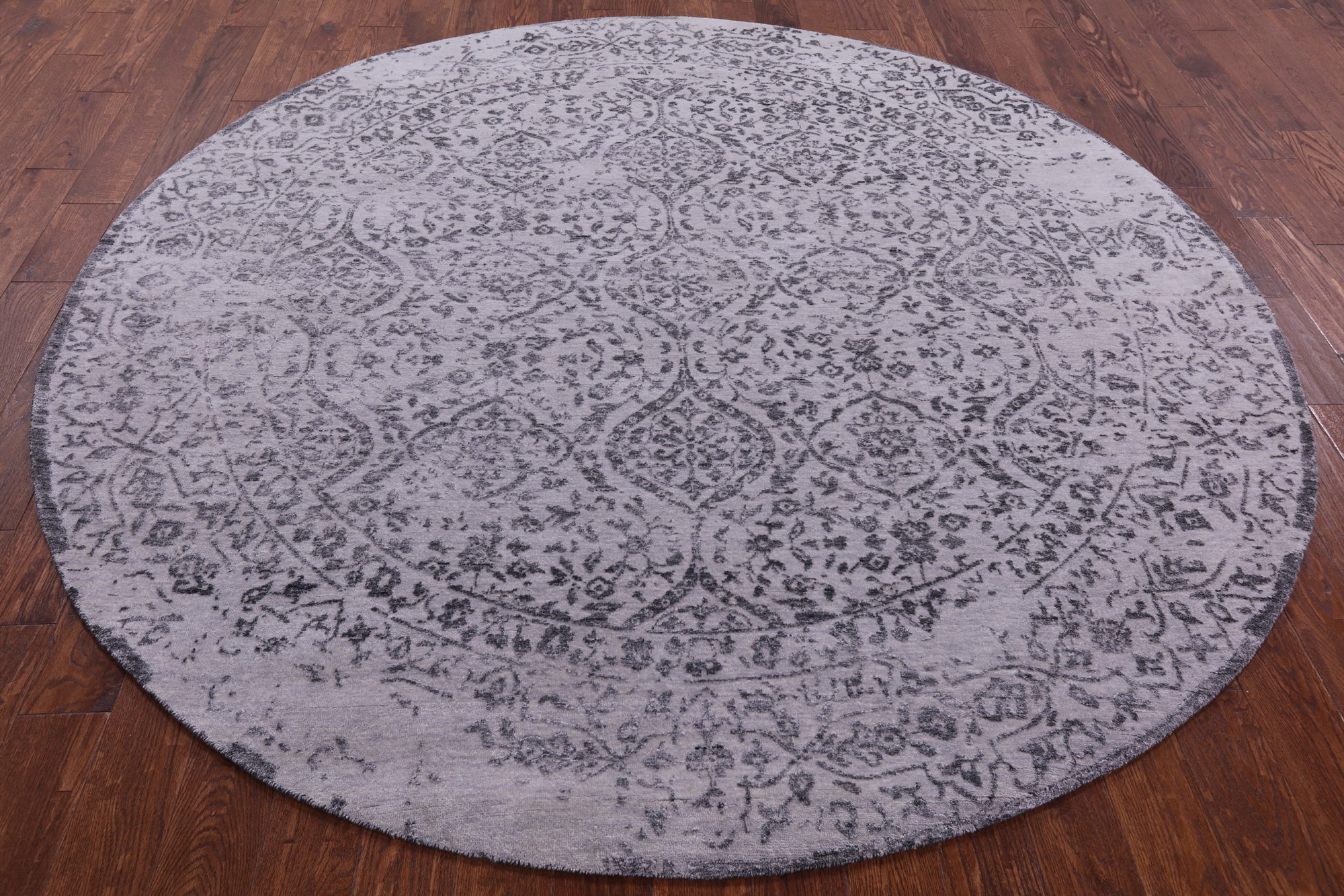 Grey 8' Round Persian Wool & Silk Handmade Rug - Q9123 is backordered and will ship as soon as it is back in stock.