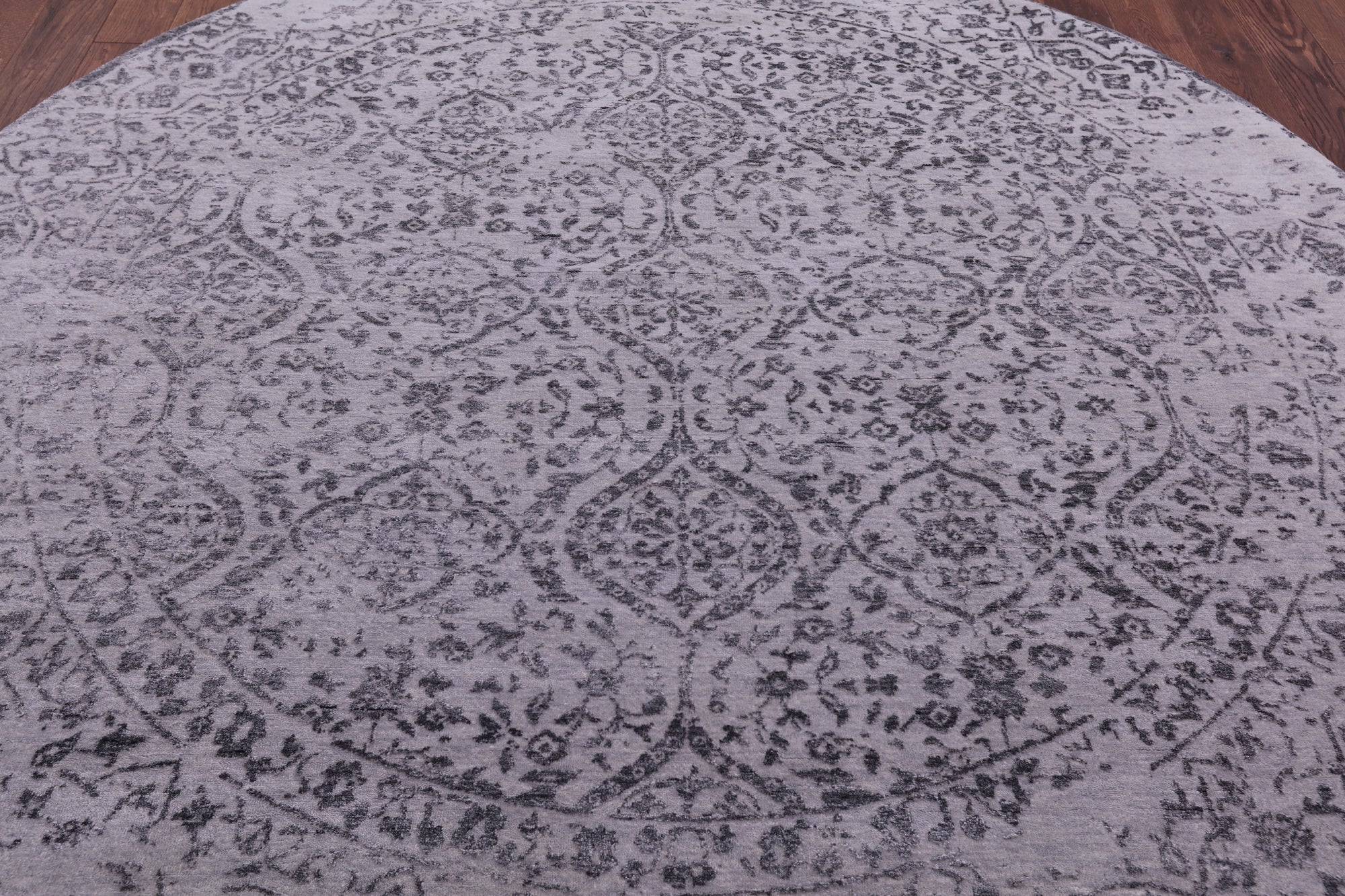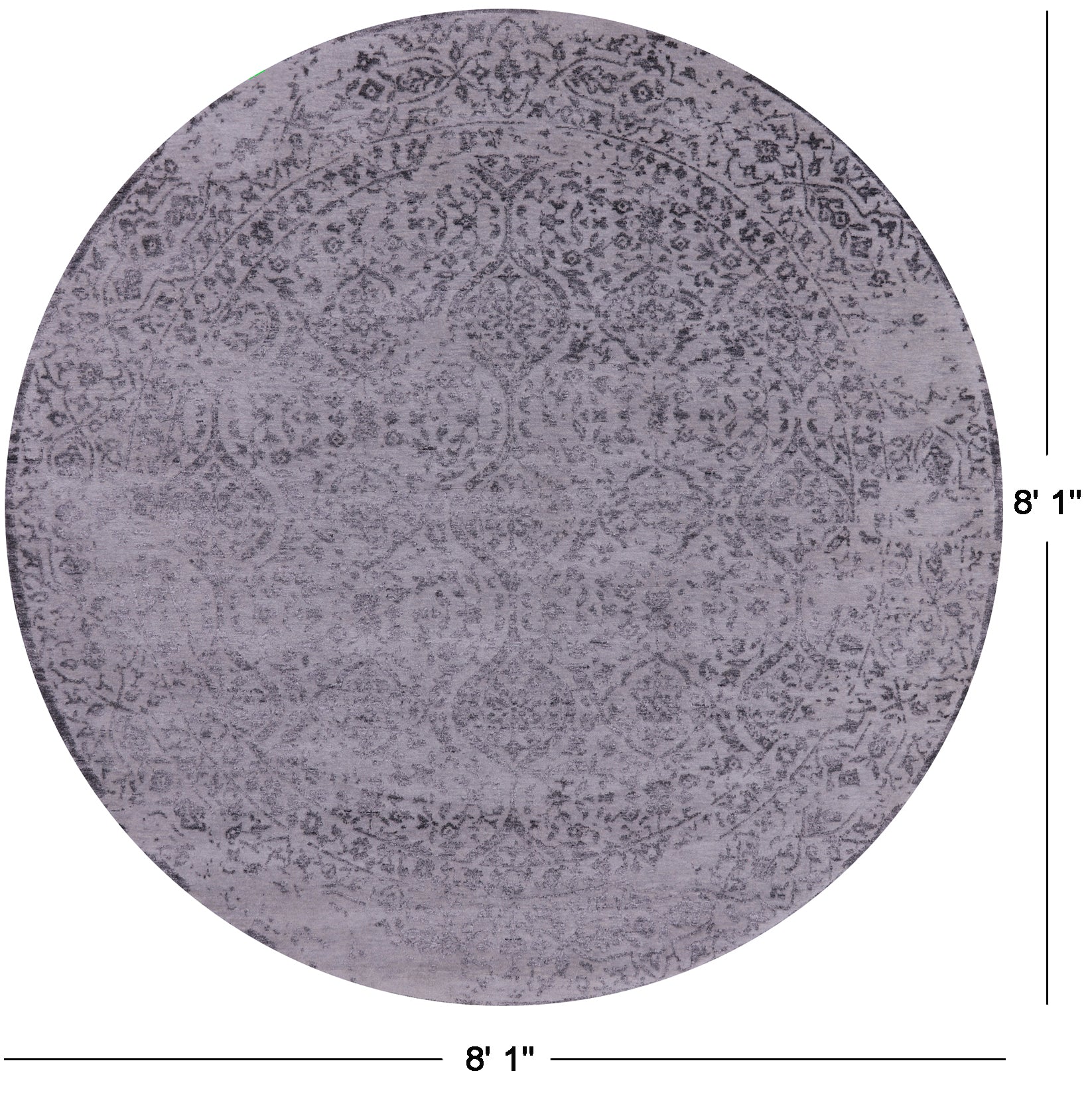 Grey 8' Round Persian Wool & Silk Handmade Rug - Q9123