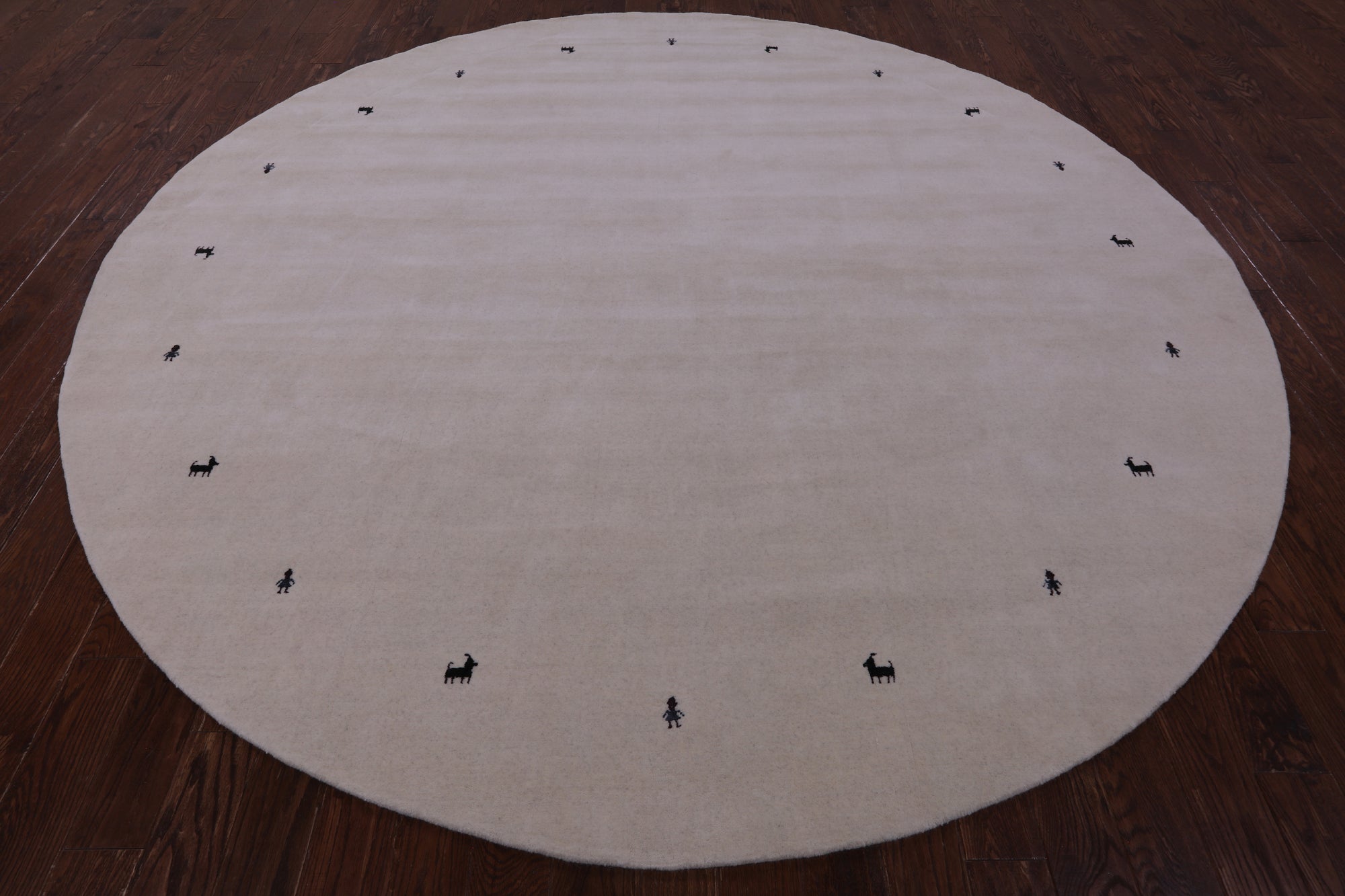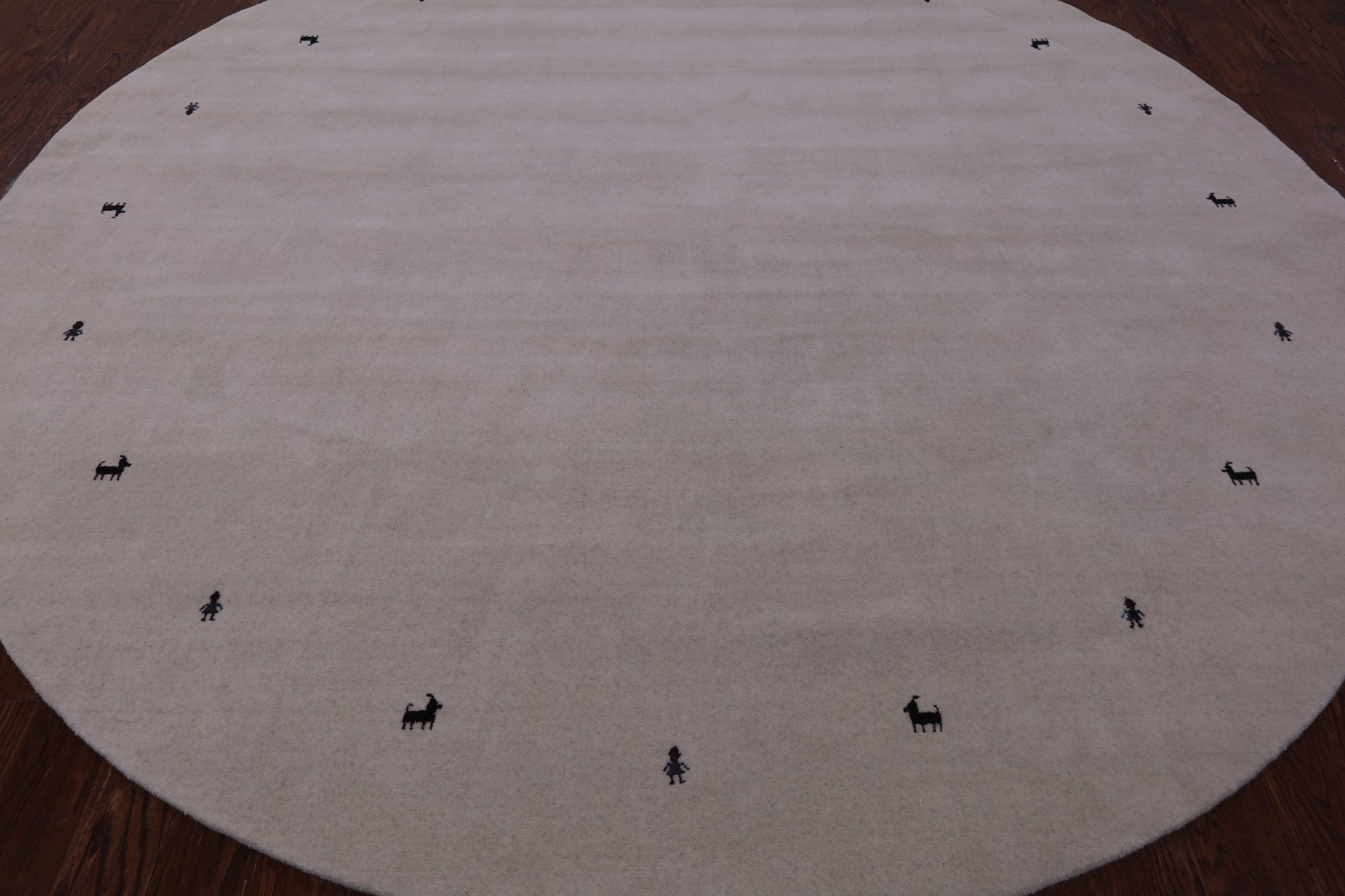 Ivory 10' Round Persian Gabbeh Hand Knotted Wool Rug - Q15239