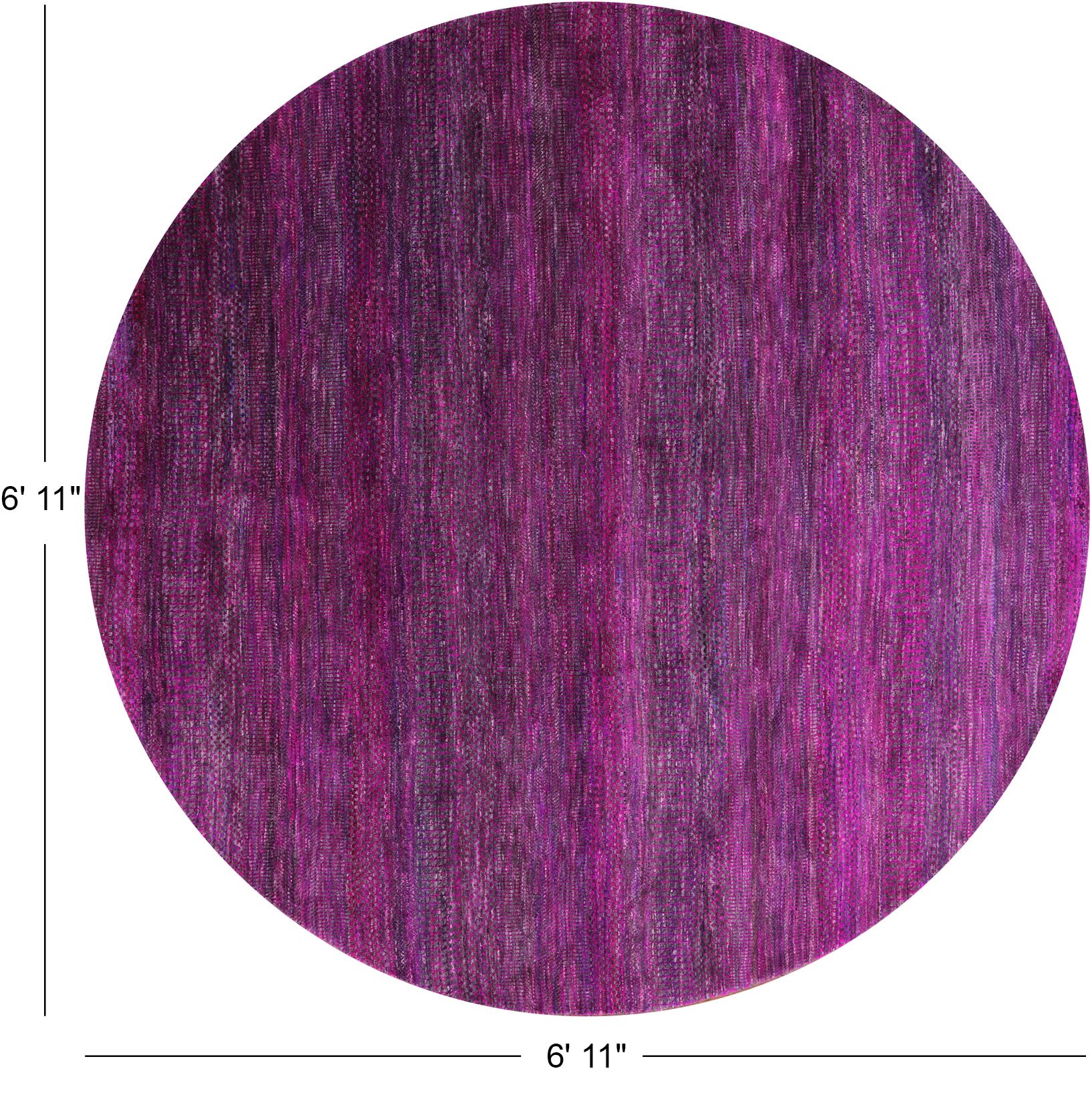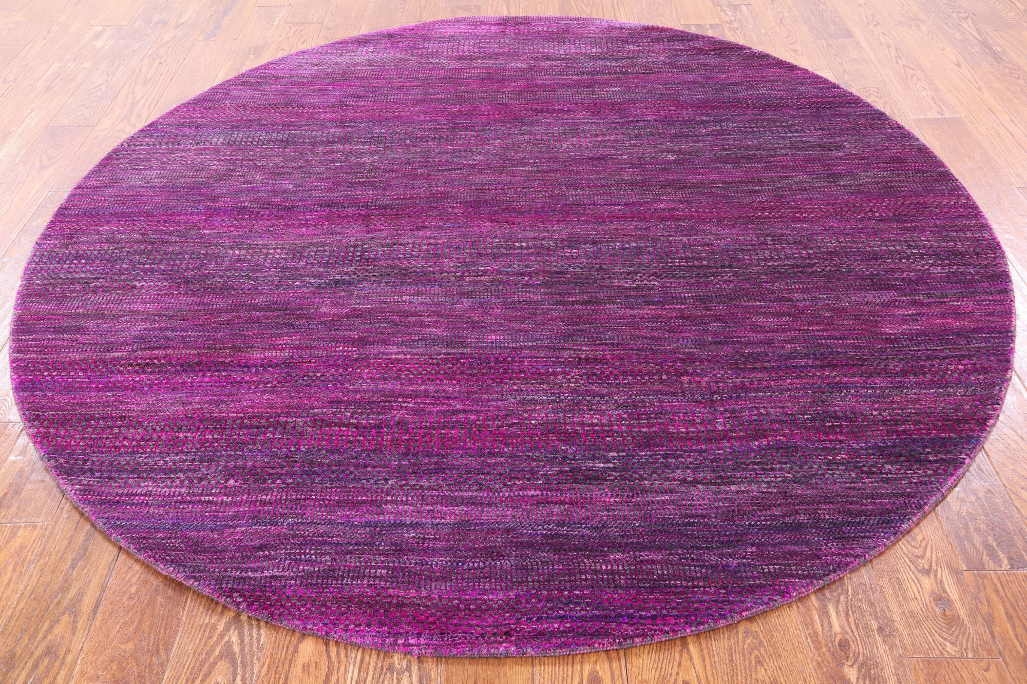 Purple 7' Round Super Savannah Gabbeh Wool & Silk Hand Knotted Rug - Q6068