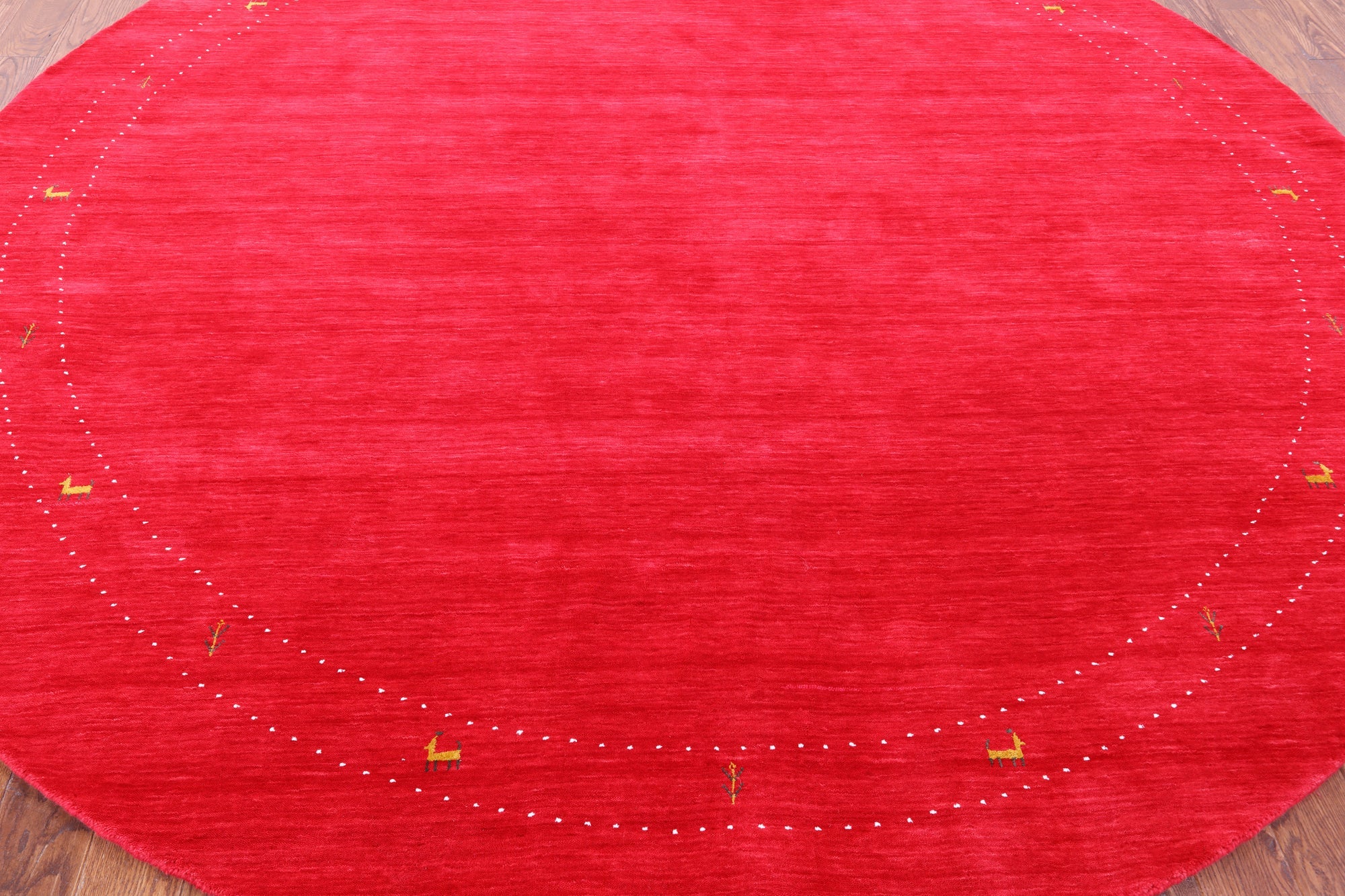 Red 10' Round Handmade Persian Gabbeh Wool Rug - Q15020