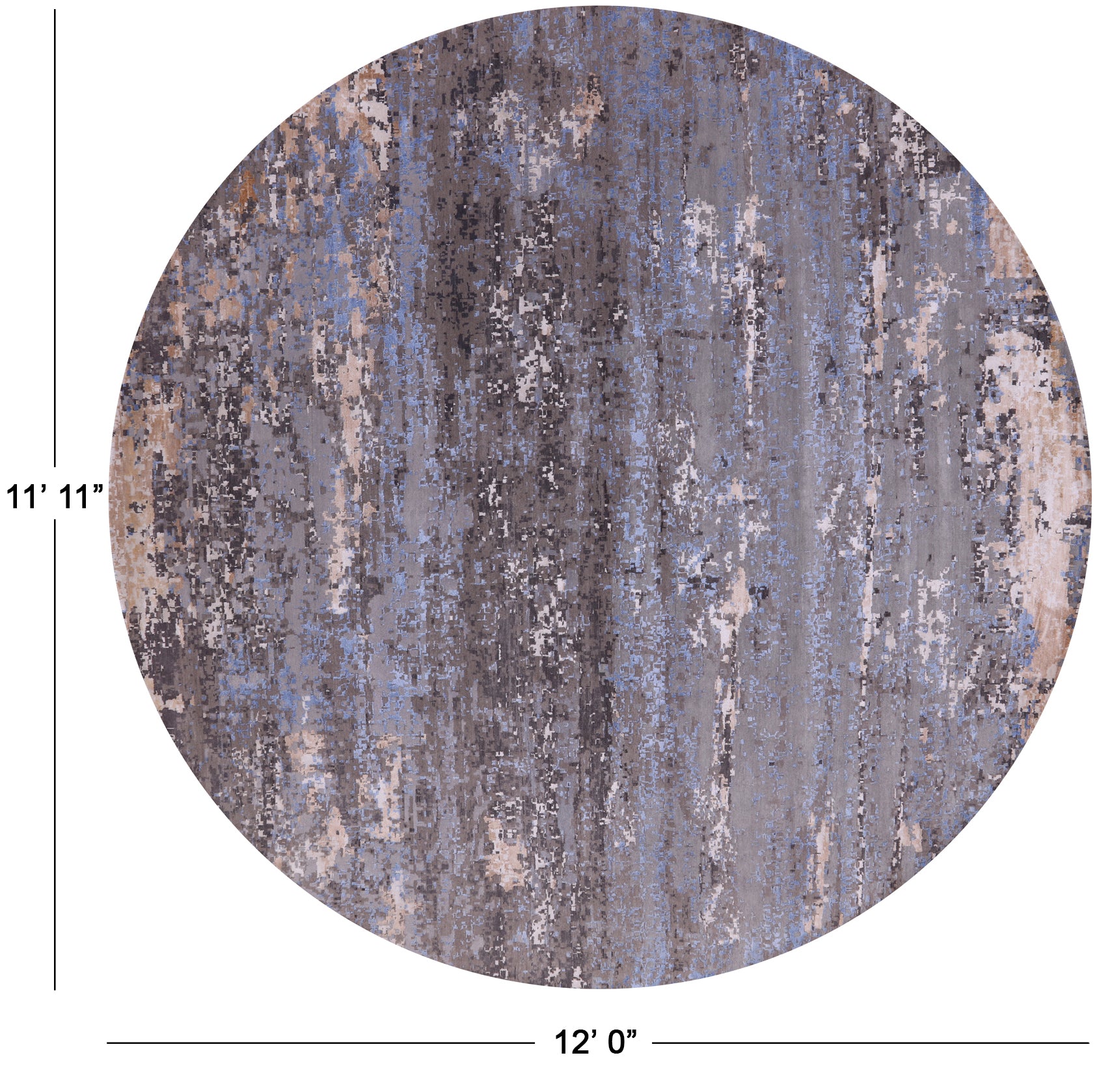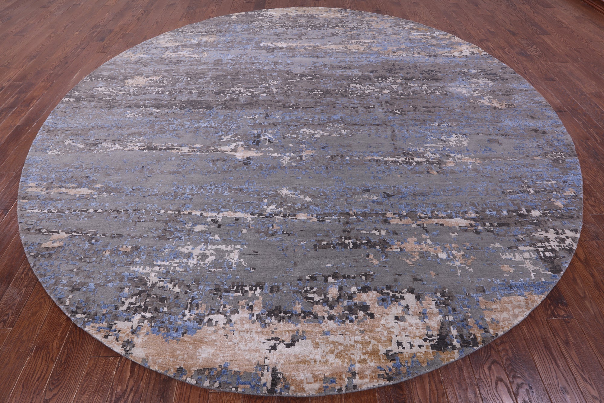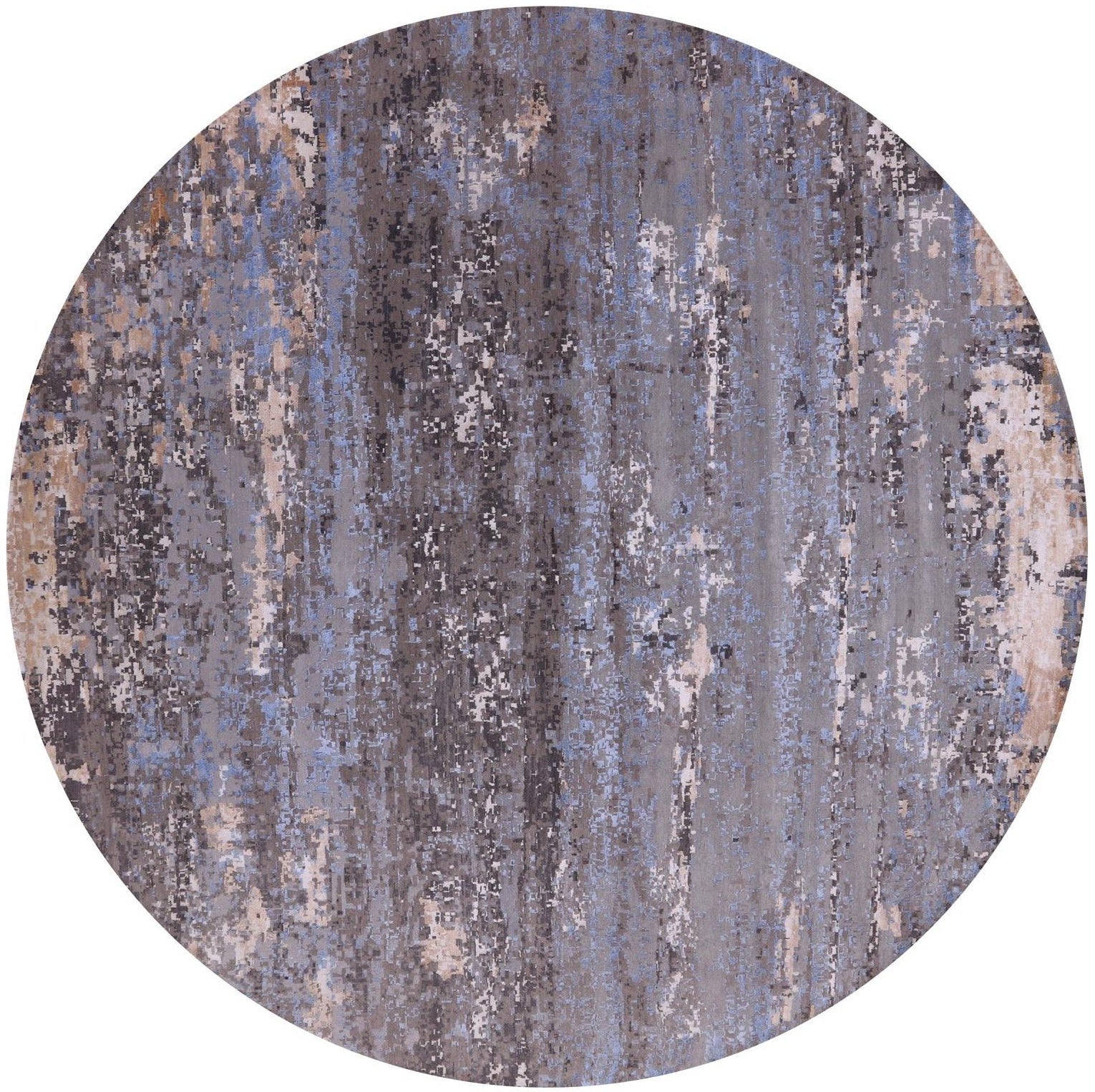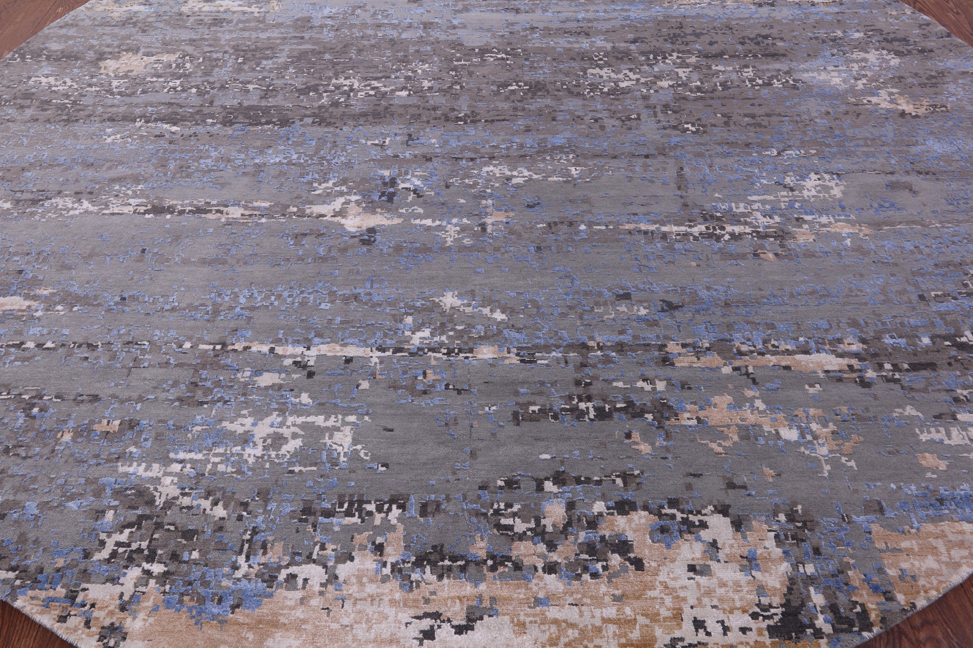 12' Round Hand Knotted Wool & Silk Abstract Rug - Q20180