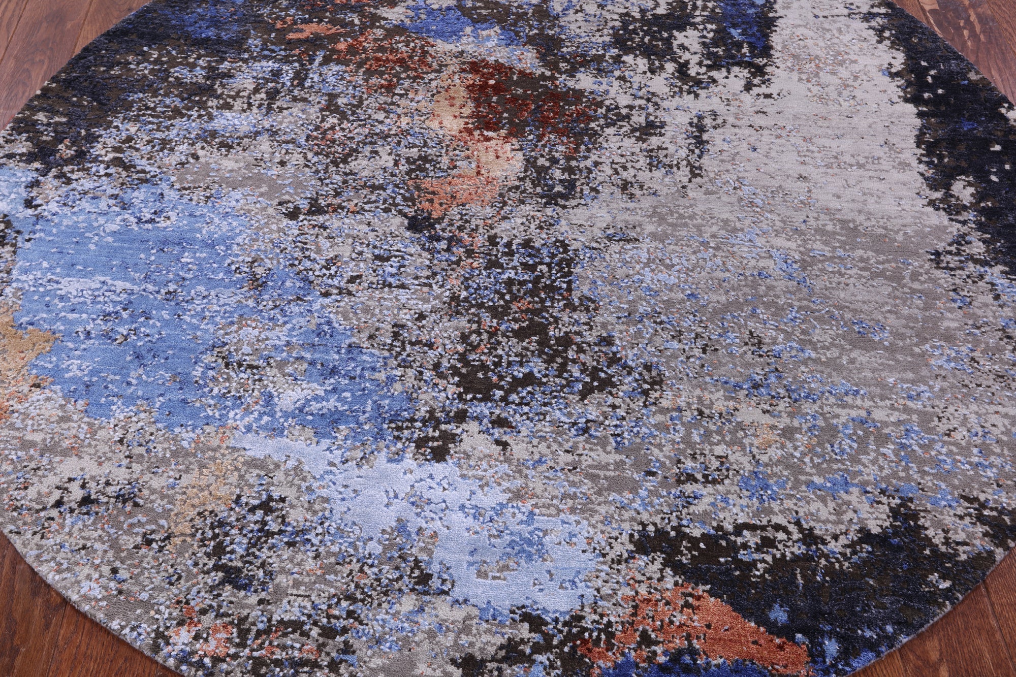 6' Round Modern Abstract Hand Knotted Wool & Silk Rug - Q19879