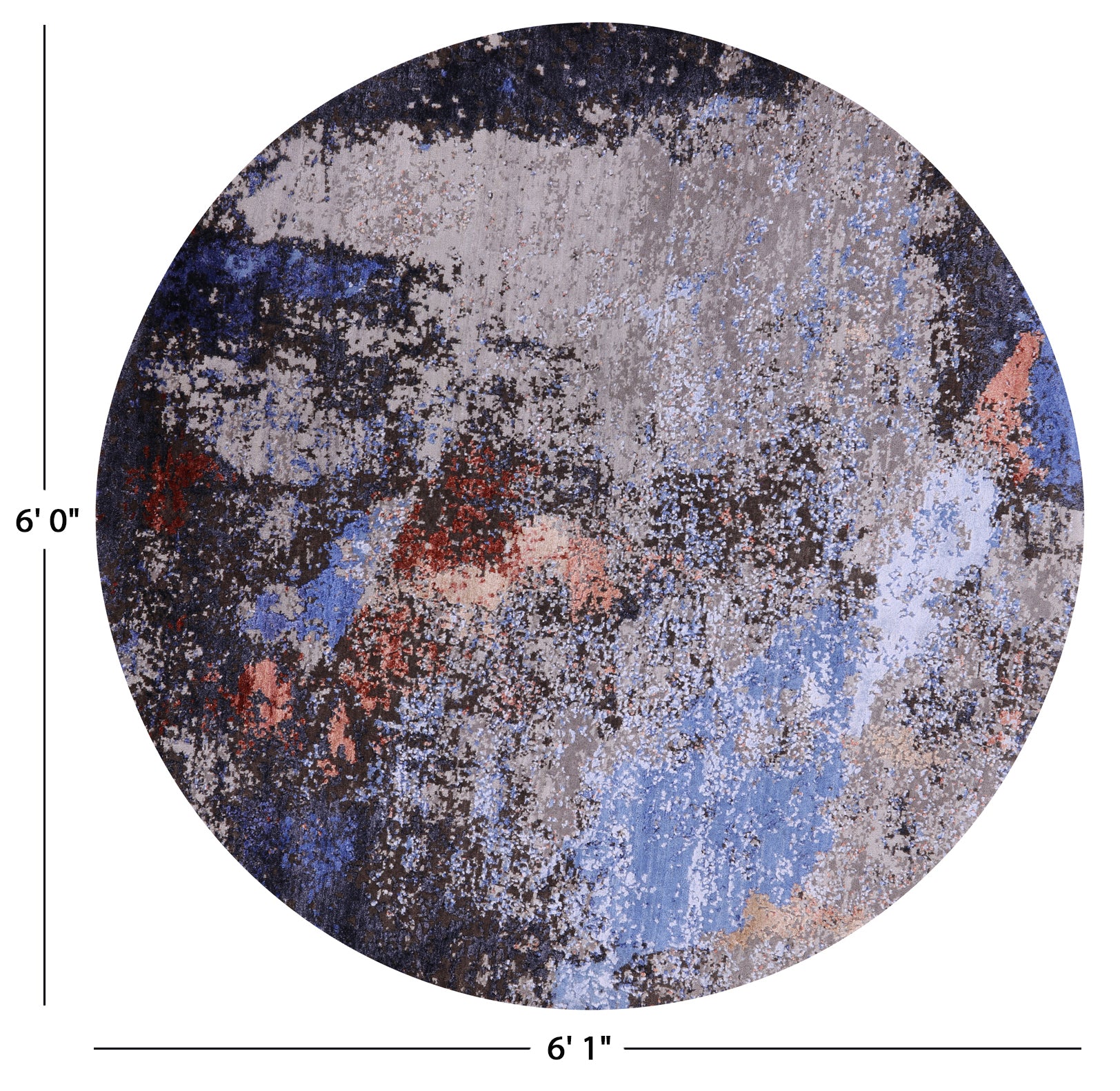 6' Round Modern Abstract Hand Knotted Wool & Silk Rug - Q19879 is backordered and will ship as soon as it is back in stock.