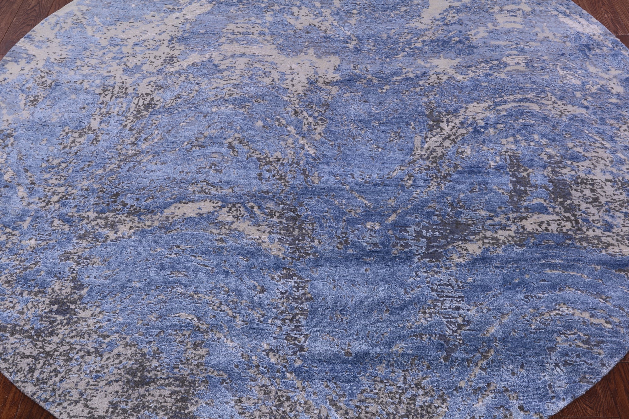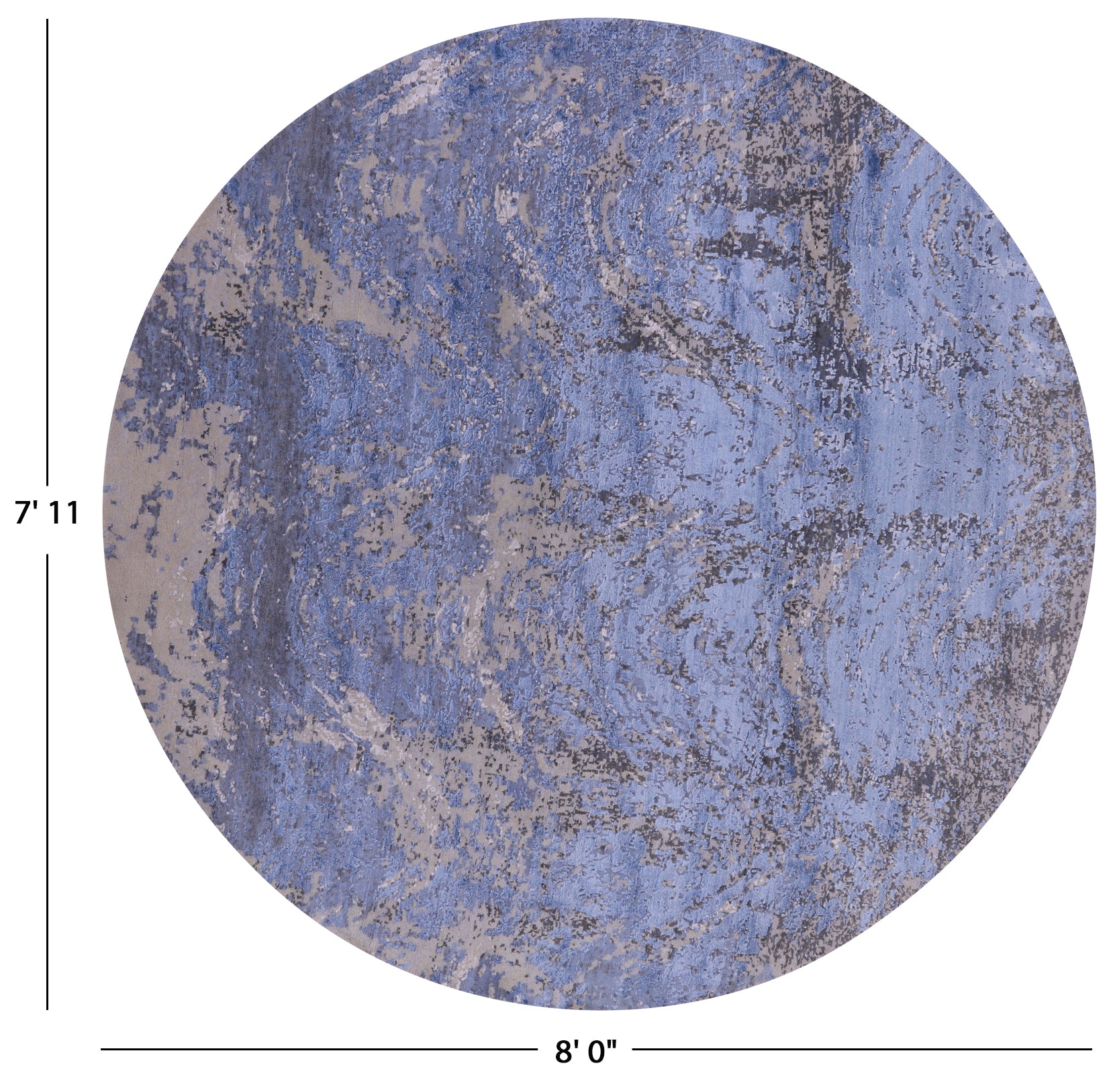 8' Round Modern Abstract Wool & Silk Hand Knotted Rug - Q19877