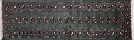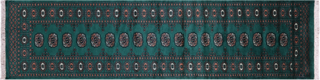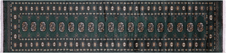 Sale price $895.00 Regular price $2,327.00Unit price /UnavailableGreen Silky Bokhara Hand-Knotted Wool Runner Rug 2' 6" X 11' 0" - Q23833