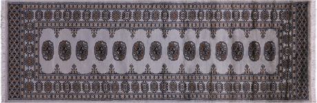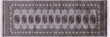 Sale price $698.00 Regular price $1,814.00Unit price /UnavailableGrey Silky Bokhara Hand-Knotted Wool Runner Rug 2' 7" X 10' 2" - Q23757