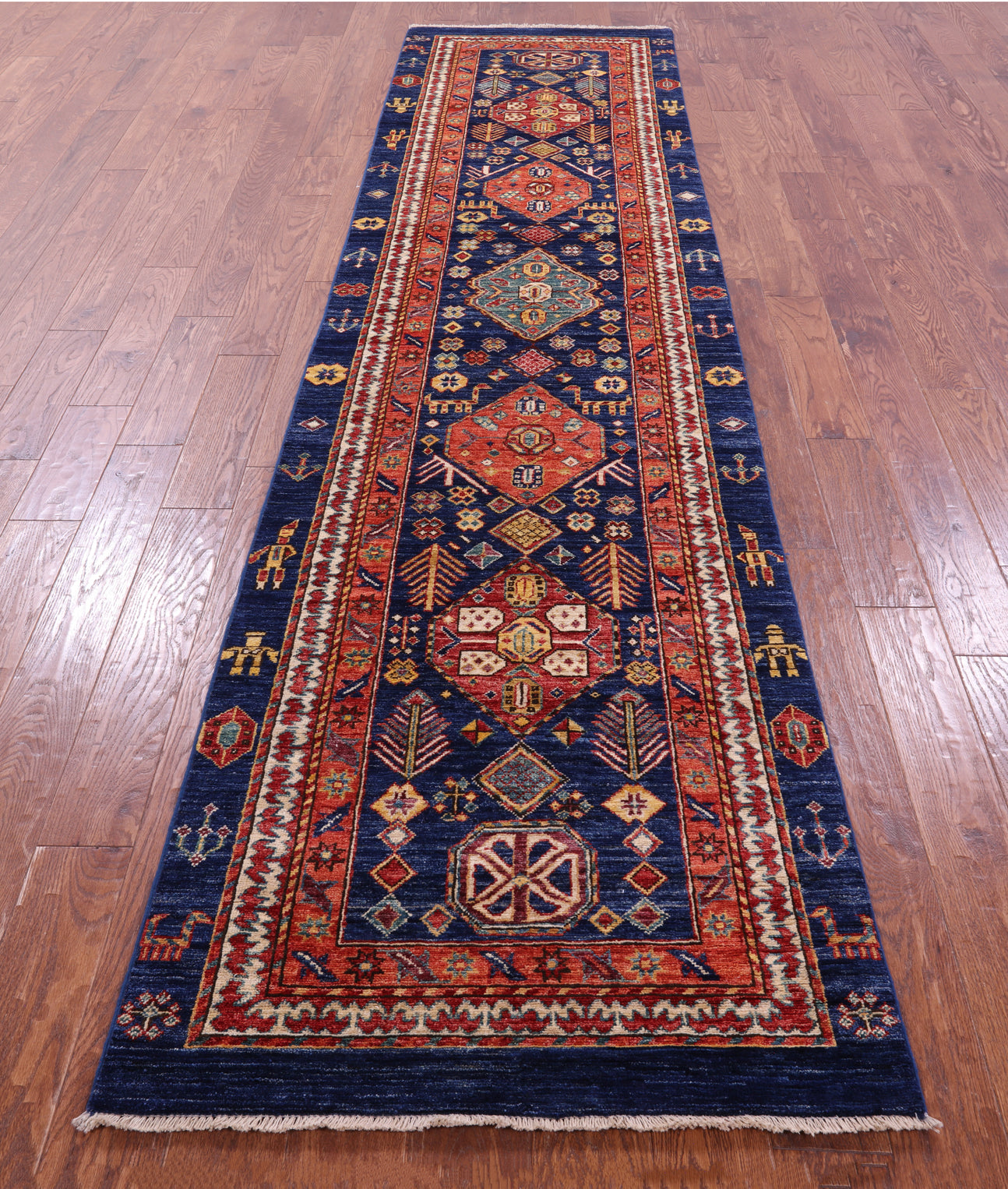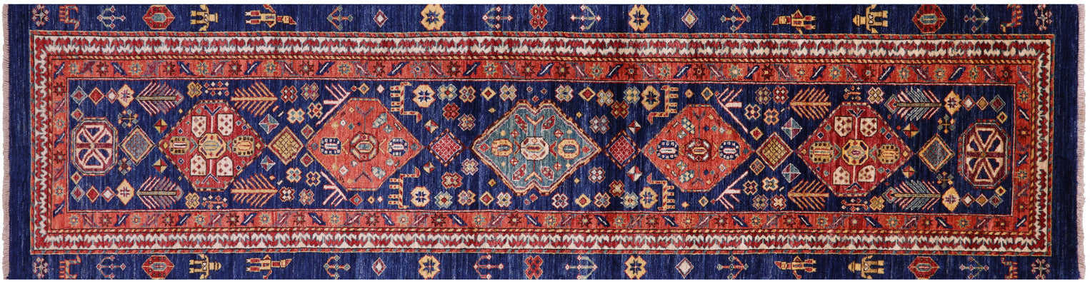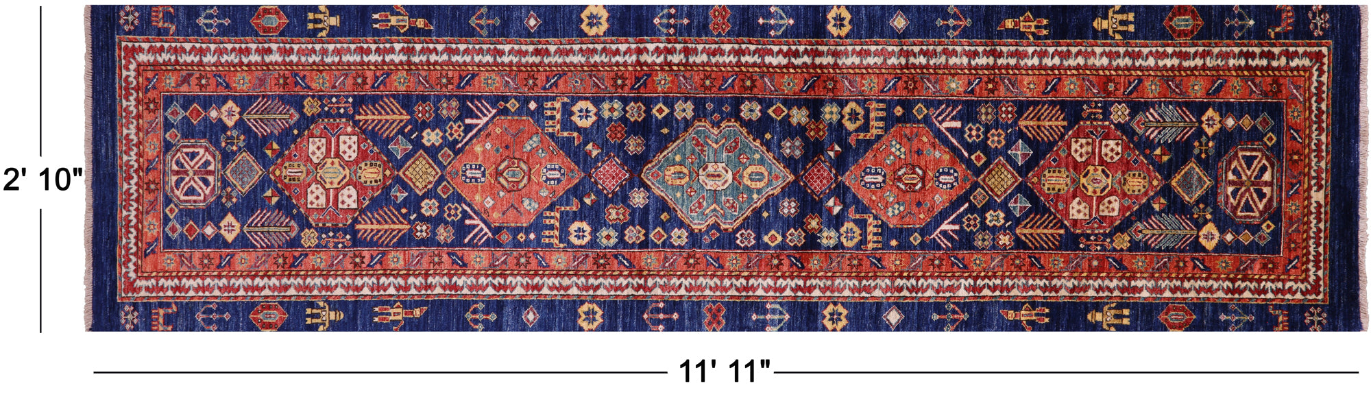 Blue Persian Heriz Serapi Hand Knotted Runner Rug 2' 10" X 11' 11" - Q22860