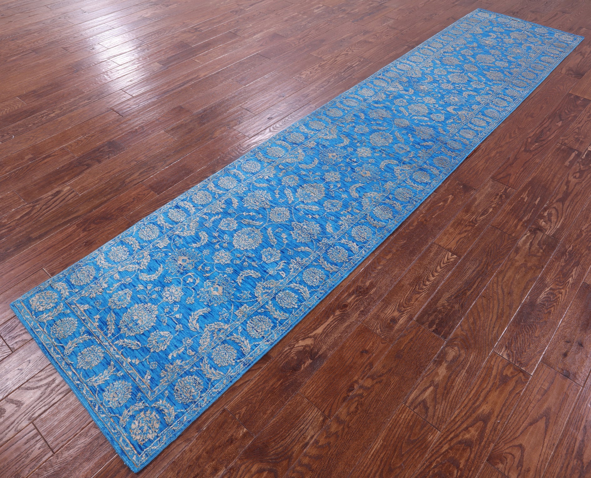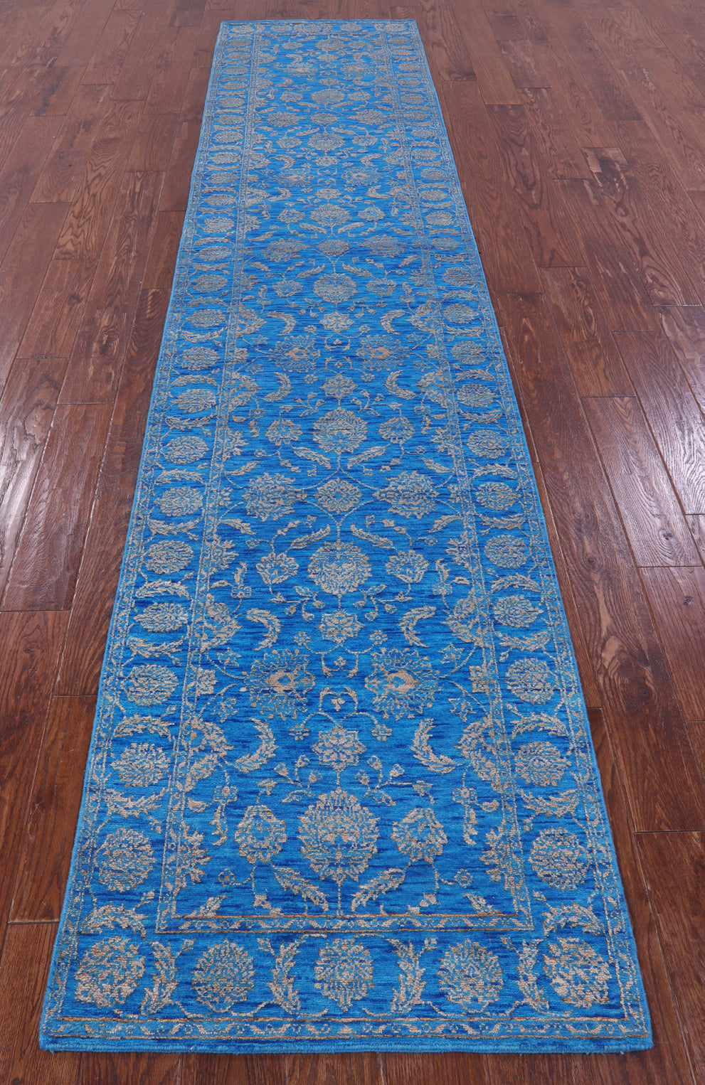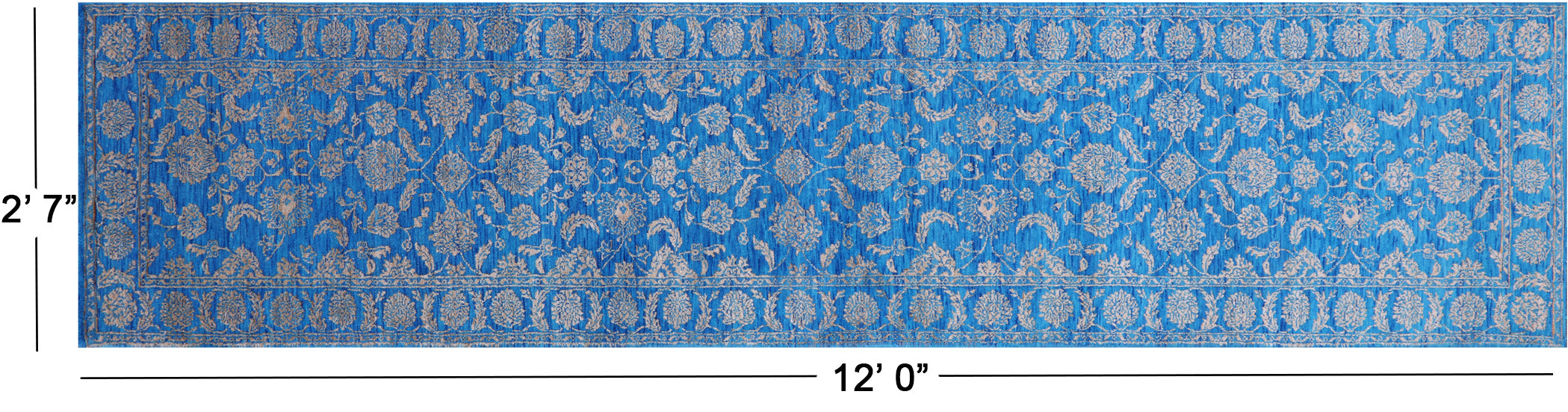 Blue 2' 7" X 12' 0" Persian Tabriz Hand Knotted Wool & Silk Runner Rug - Q21480 is backordered and will ship as soon as it is back in stock.