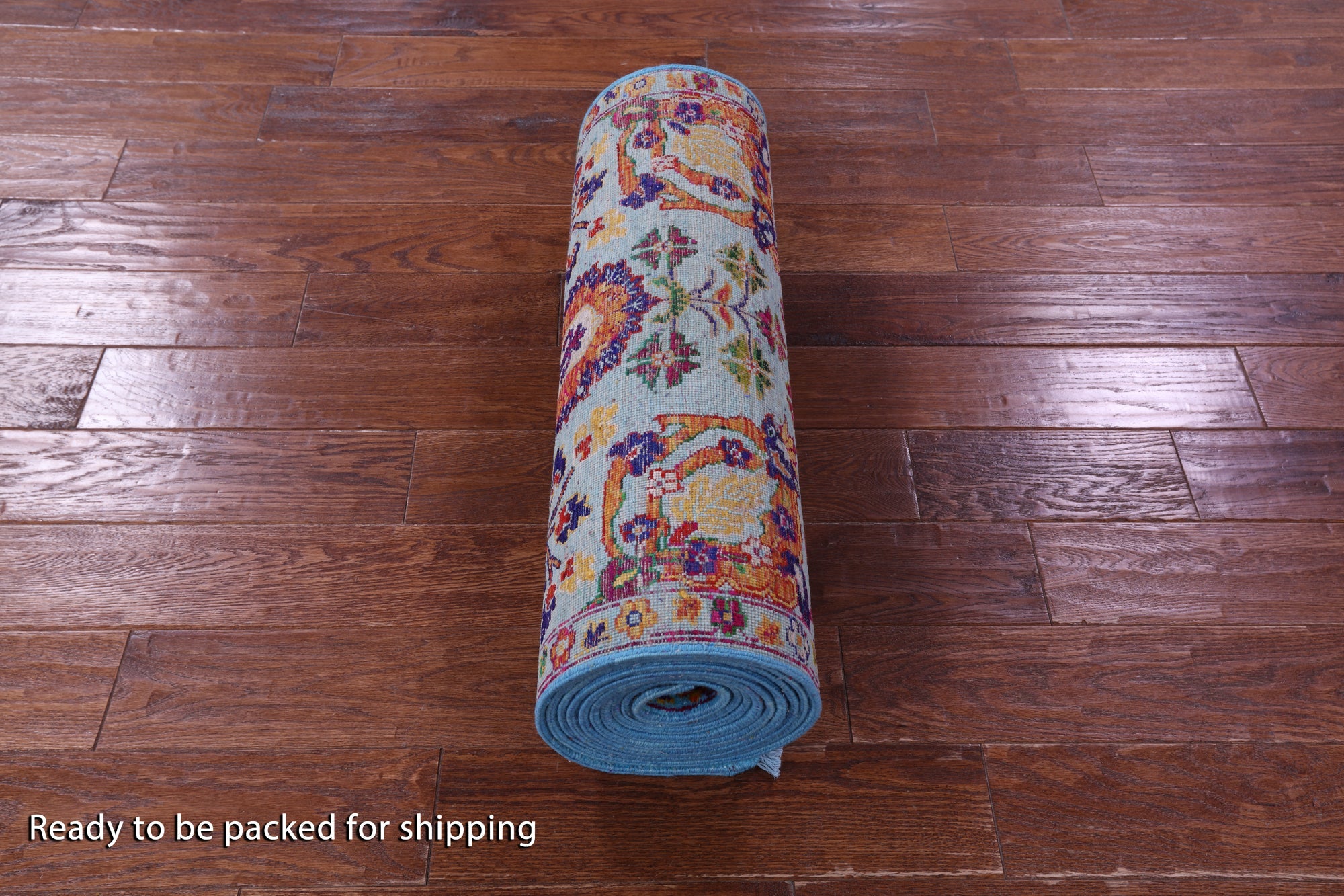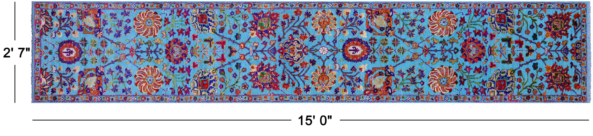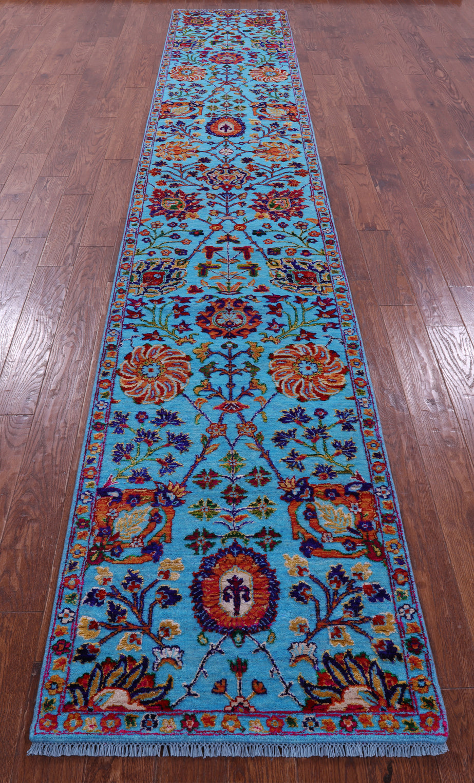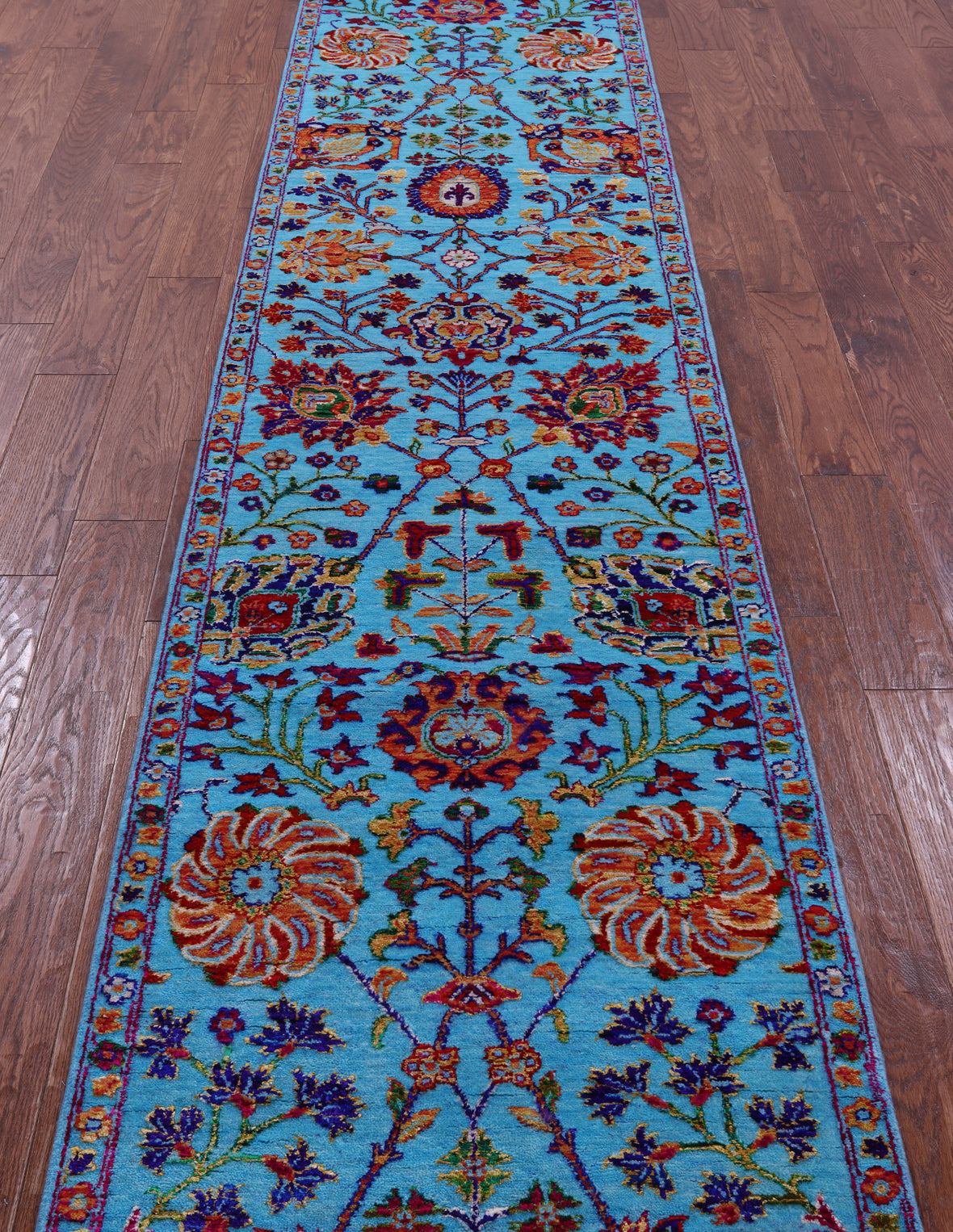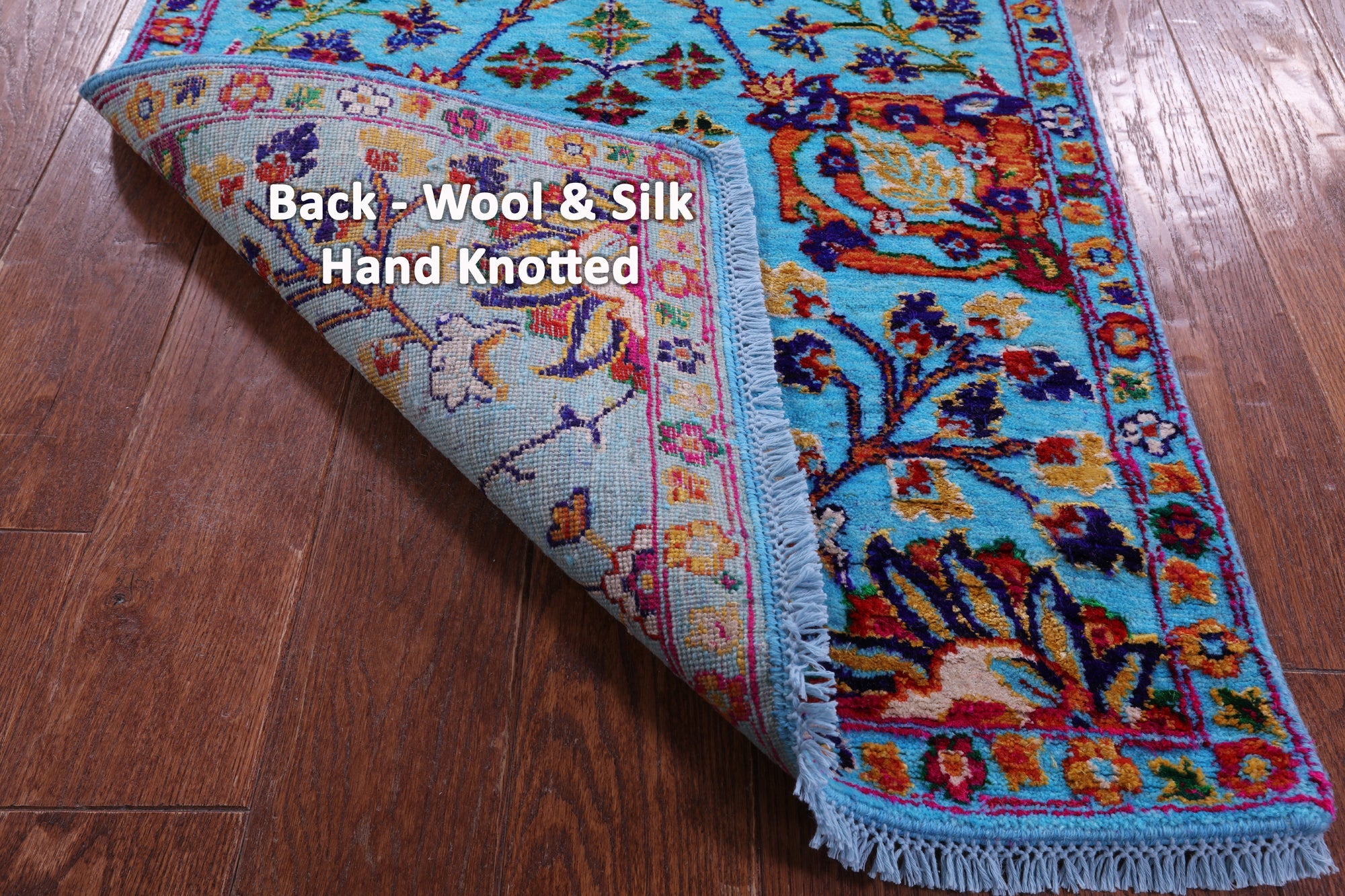 Blue 2' 7" X 15' 0" Persian Tabriz Hand Knotted Wool & Silk Runner Rug - Q23405 is backordered and will ship as soon as it is back in stock.