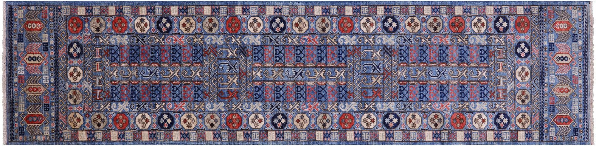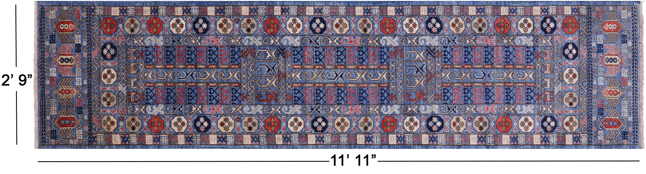 Blue 2' 9" X 11' 11" Runner Hand Knotted Fine Turkmen Ersari Rug - Q22048