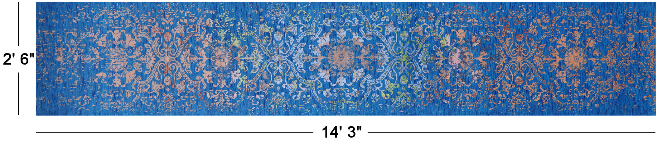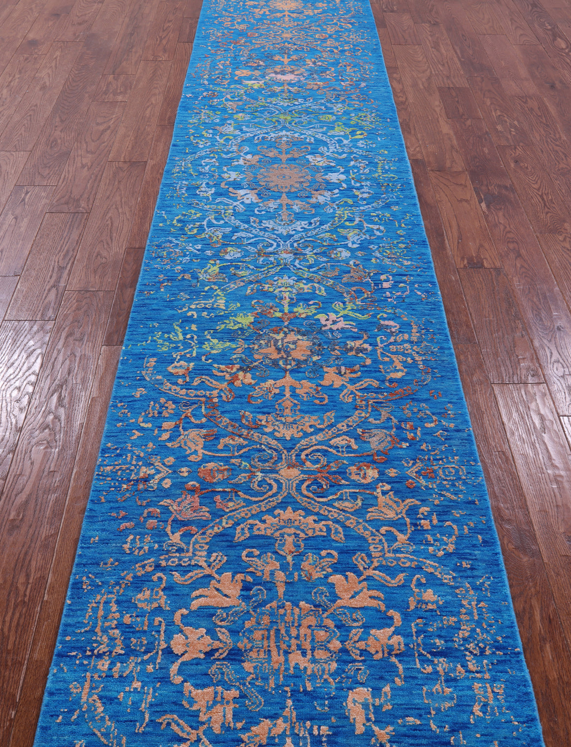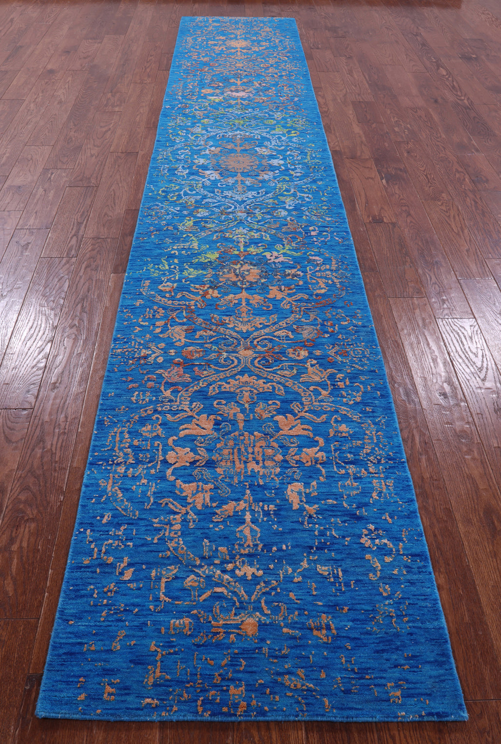 Blue Runner Modern Handmade Wool & Silk Rug 2' 6" X 14' 3" - Q22485 is backordered and will ship as soon as it is back in stock.