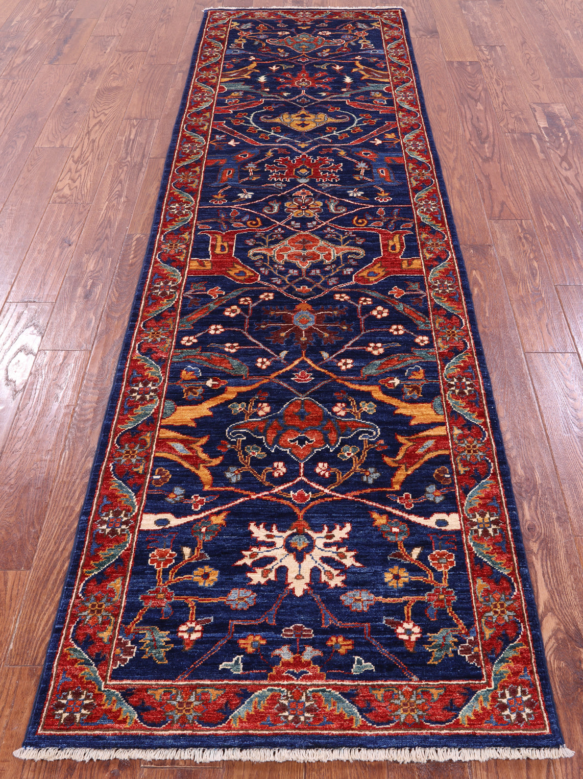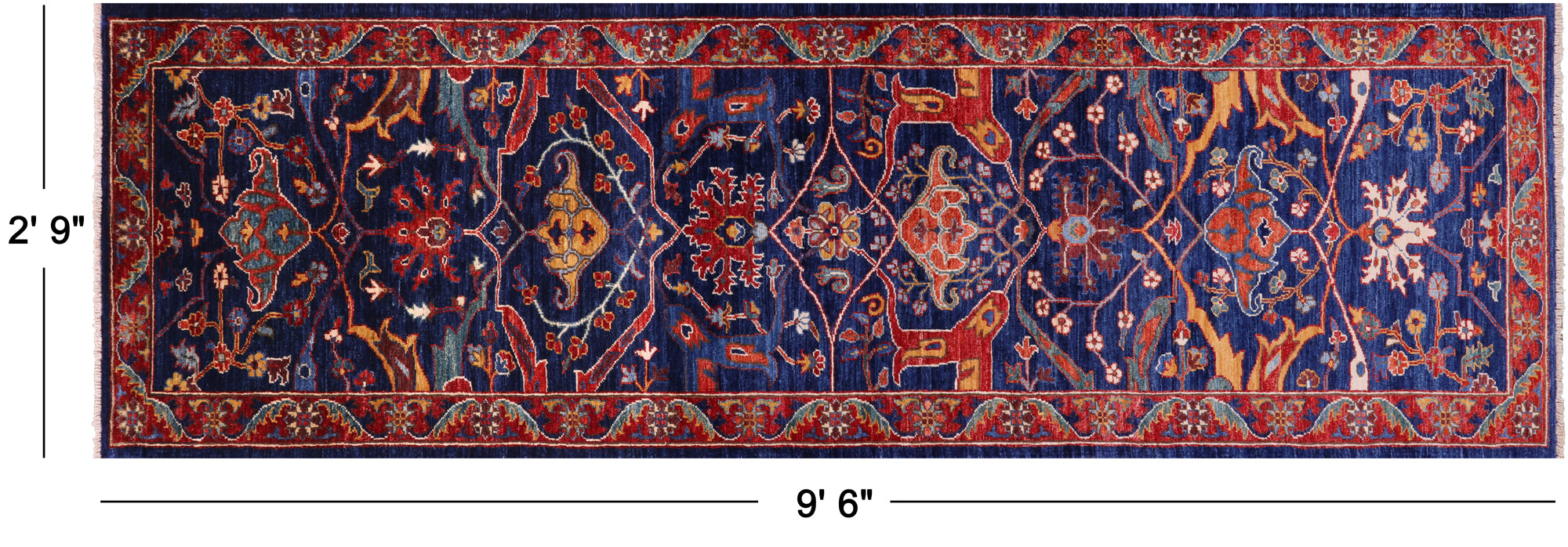 Blue 2' 9" X 9' 6" Runner Persian Heriz Serapi Handmade Rug - Q23179