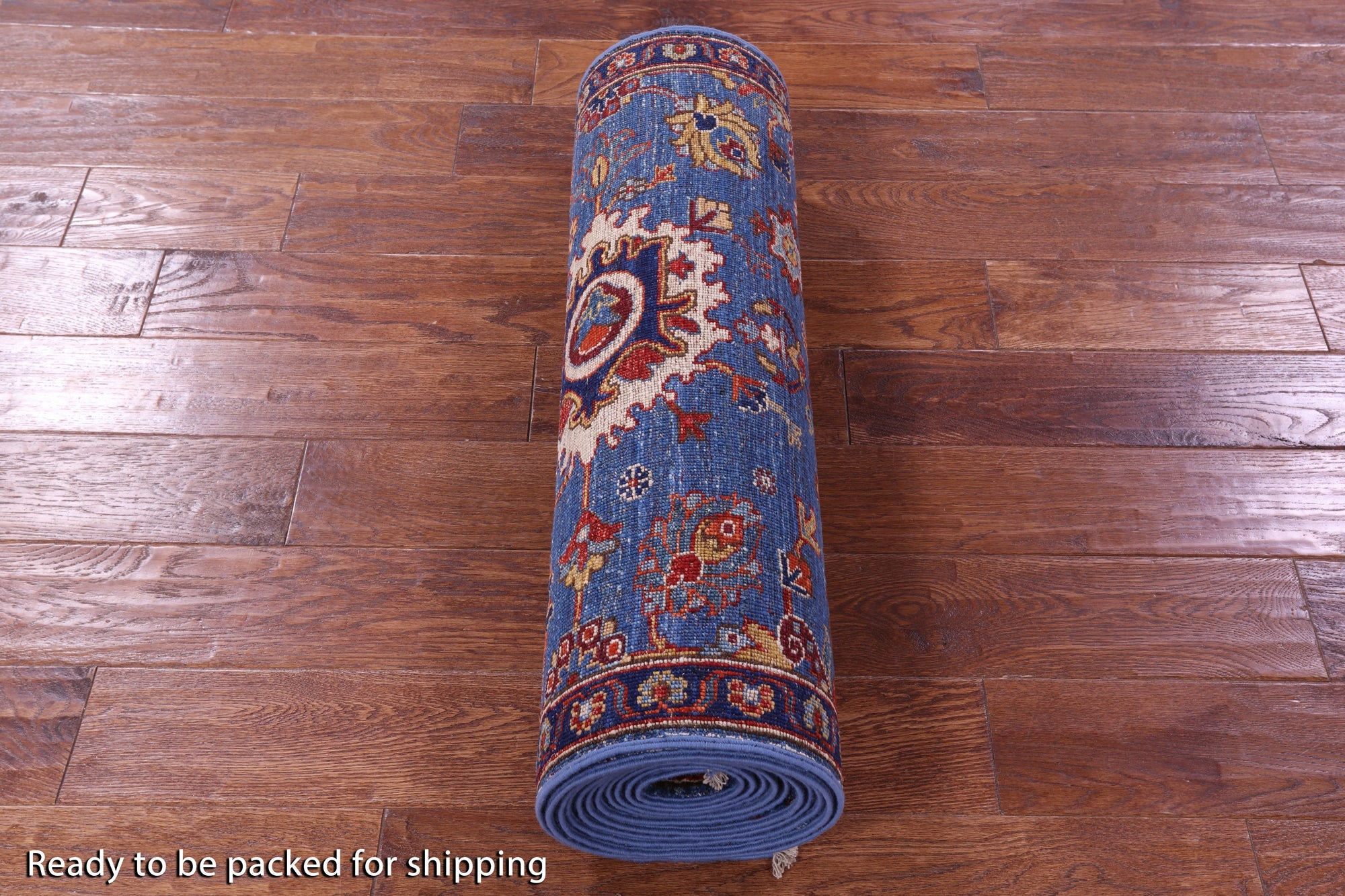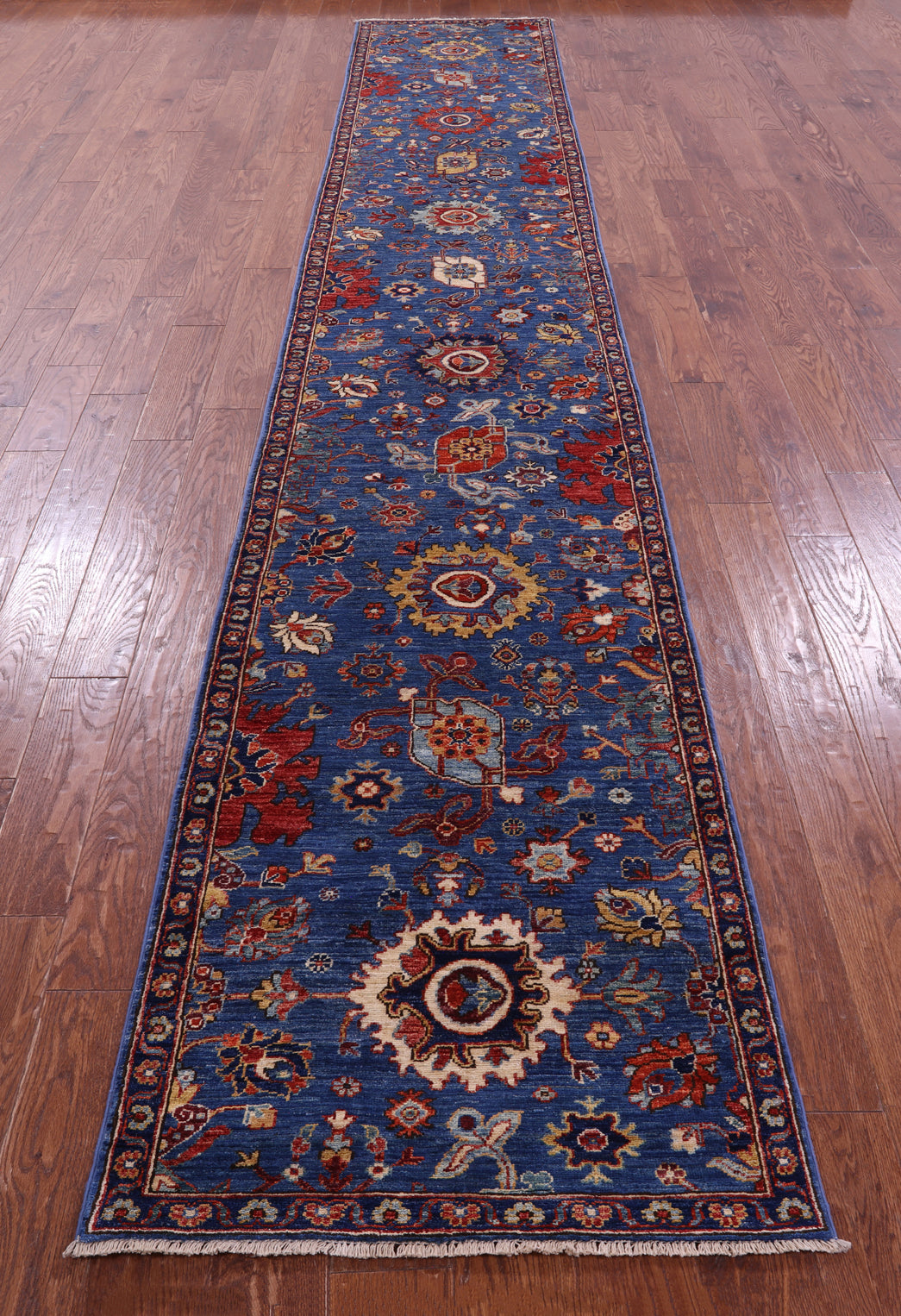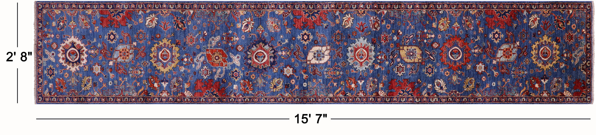 Blue 2' 8" X 15' 7" Runner Persian Heriz Serapi Handmade Wool Rug - Q23128 is backordered and will ship as soon as it is back in stock.